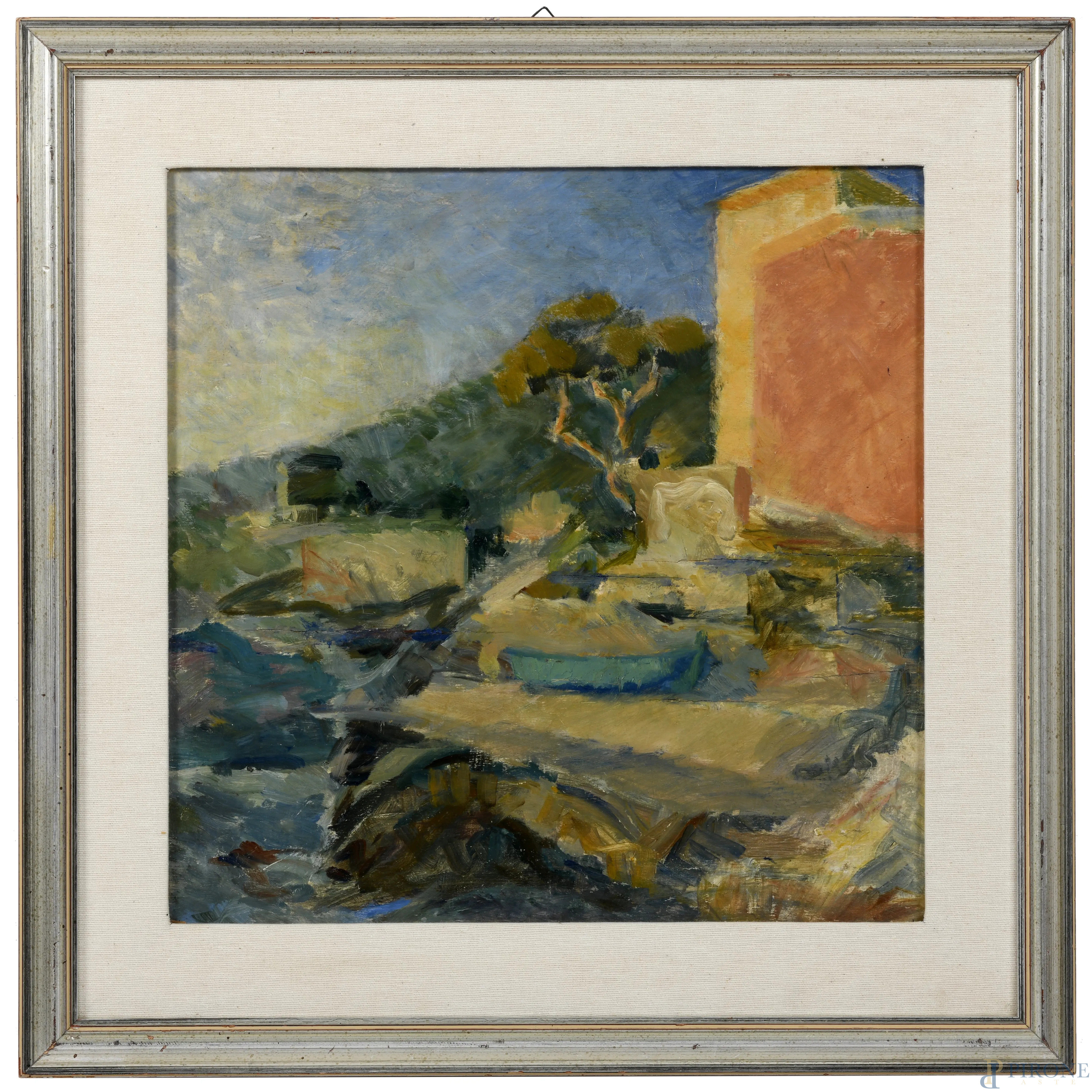 Paesaggio, XX secolo, olio su tavola, cm 44x44, entro cornice