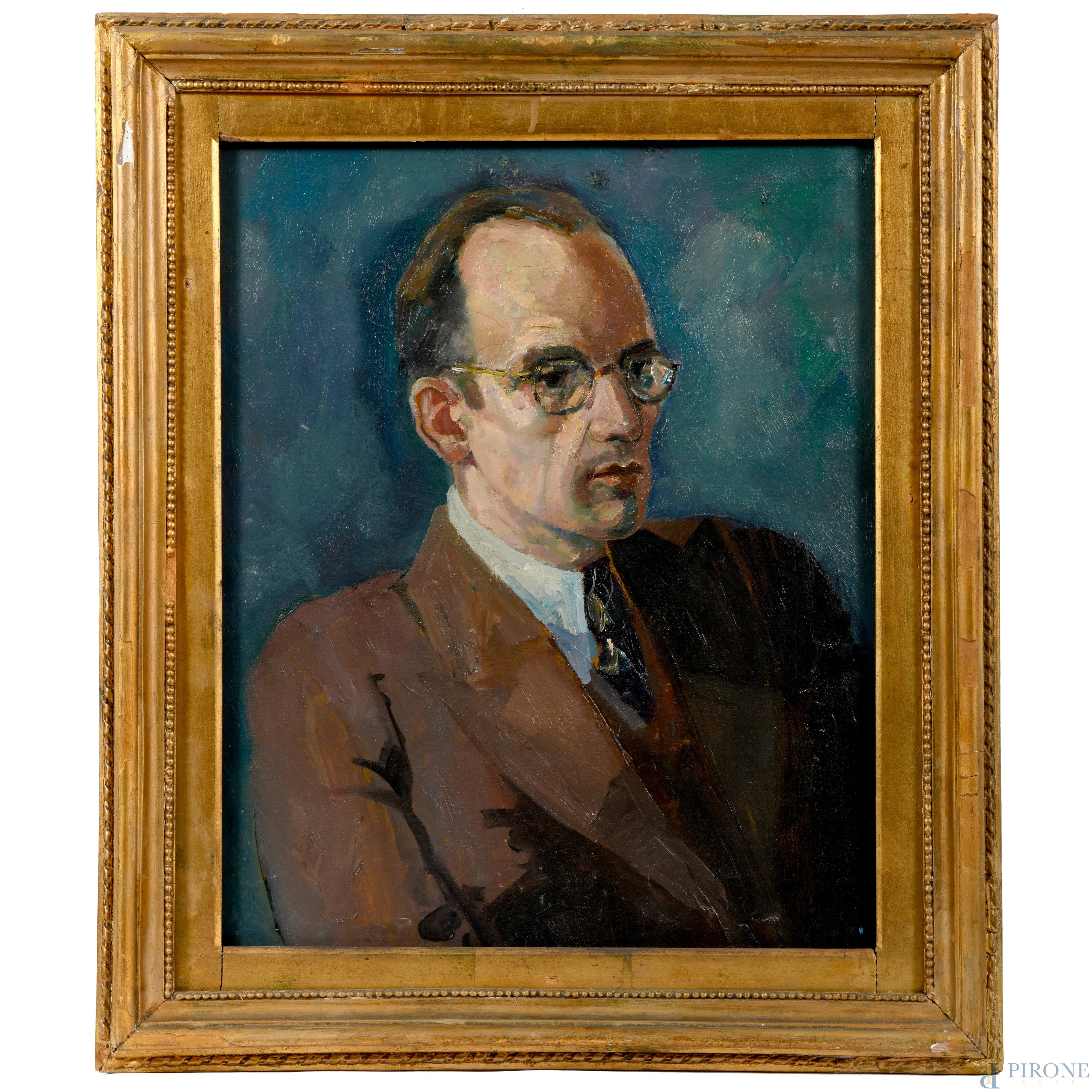 Ritratto virile, XX secolo, olio su tela, cm 60x50, entro cornice, (lievi difetti)