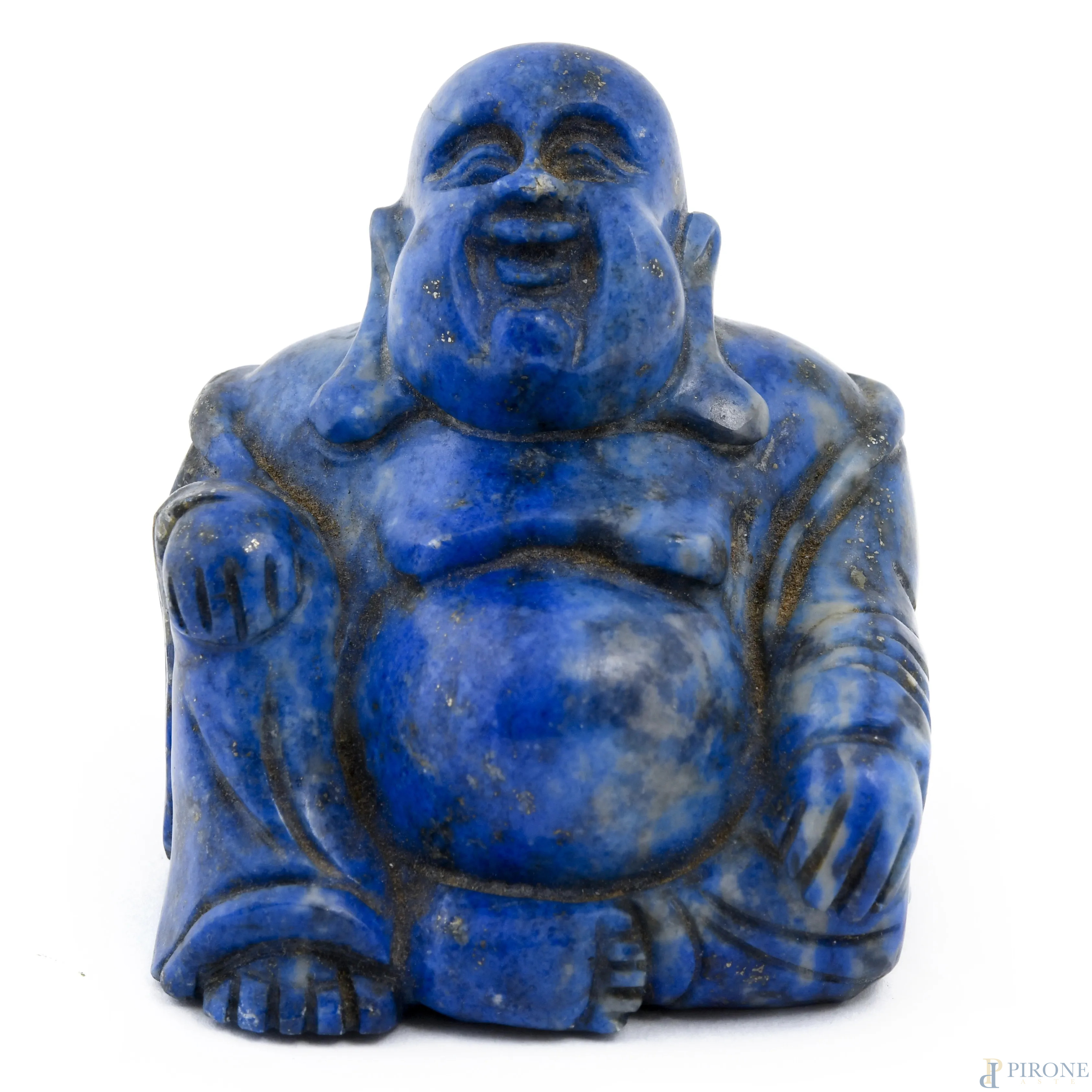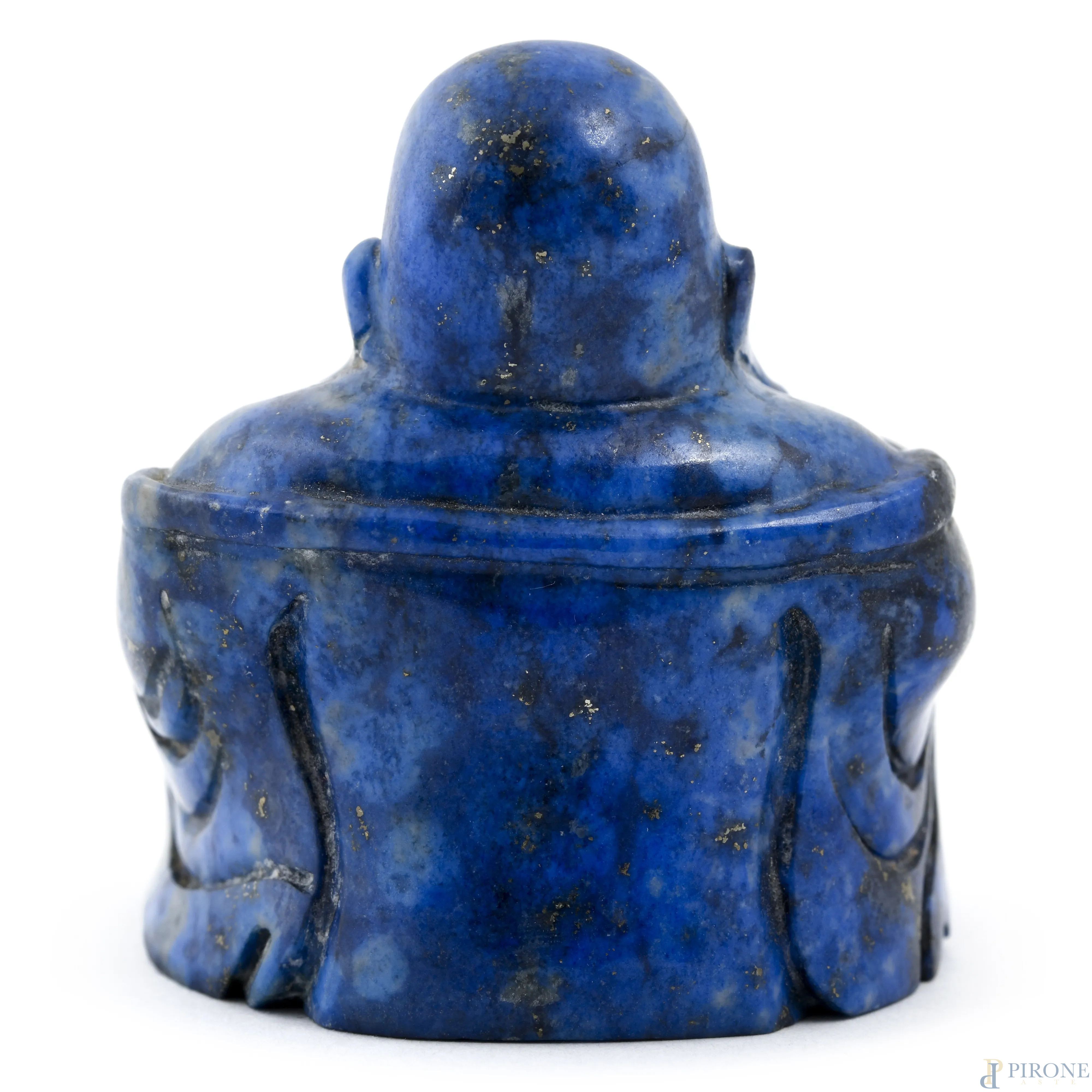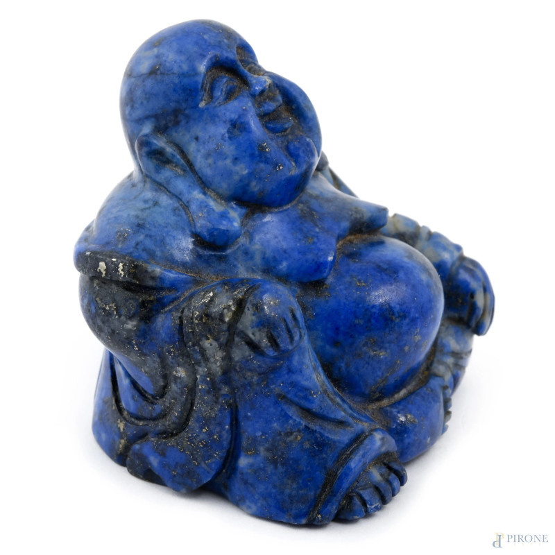 Scultura di Buddha in lapislazzulo, XX secolo, altezza cm 6, (difetti, segni di usura)