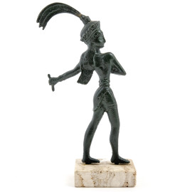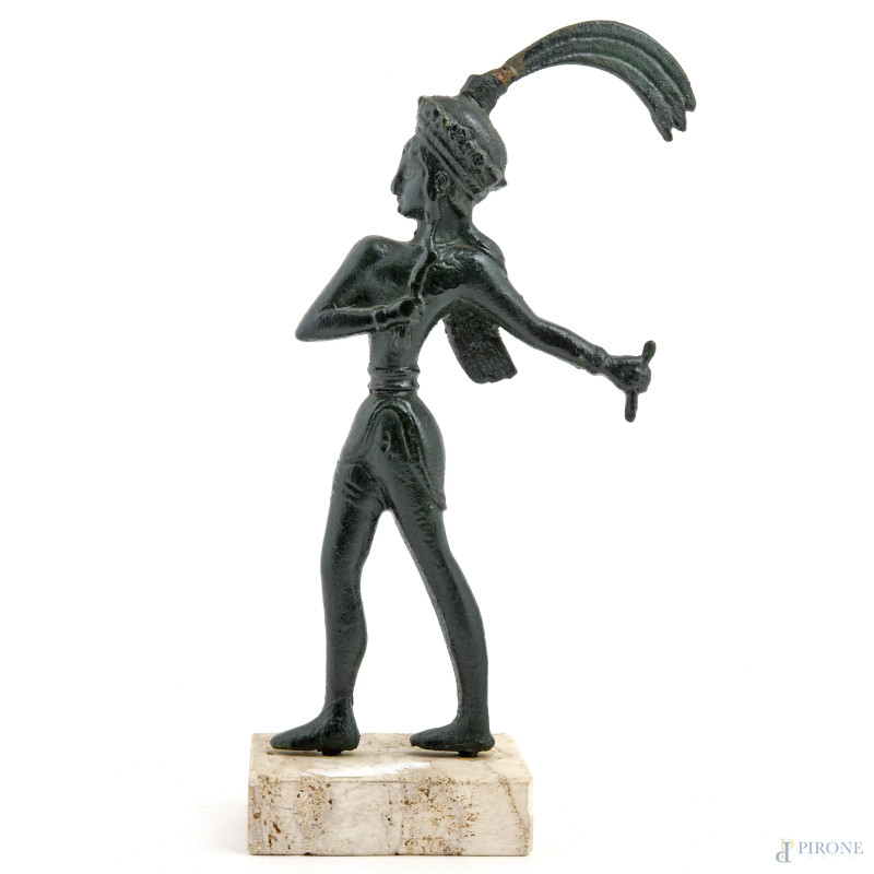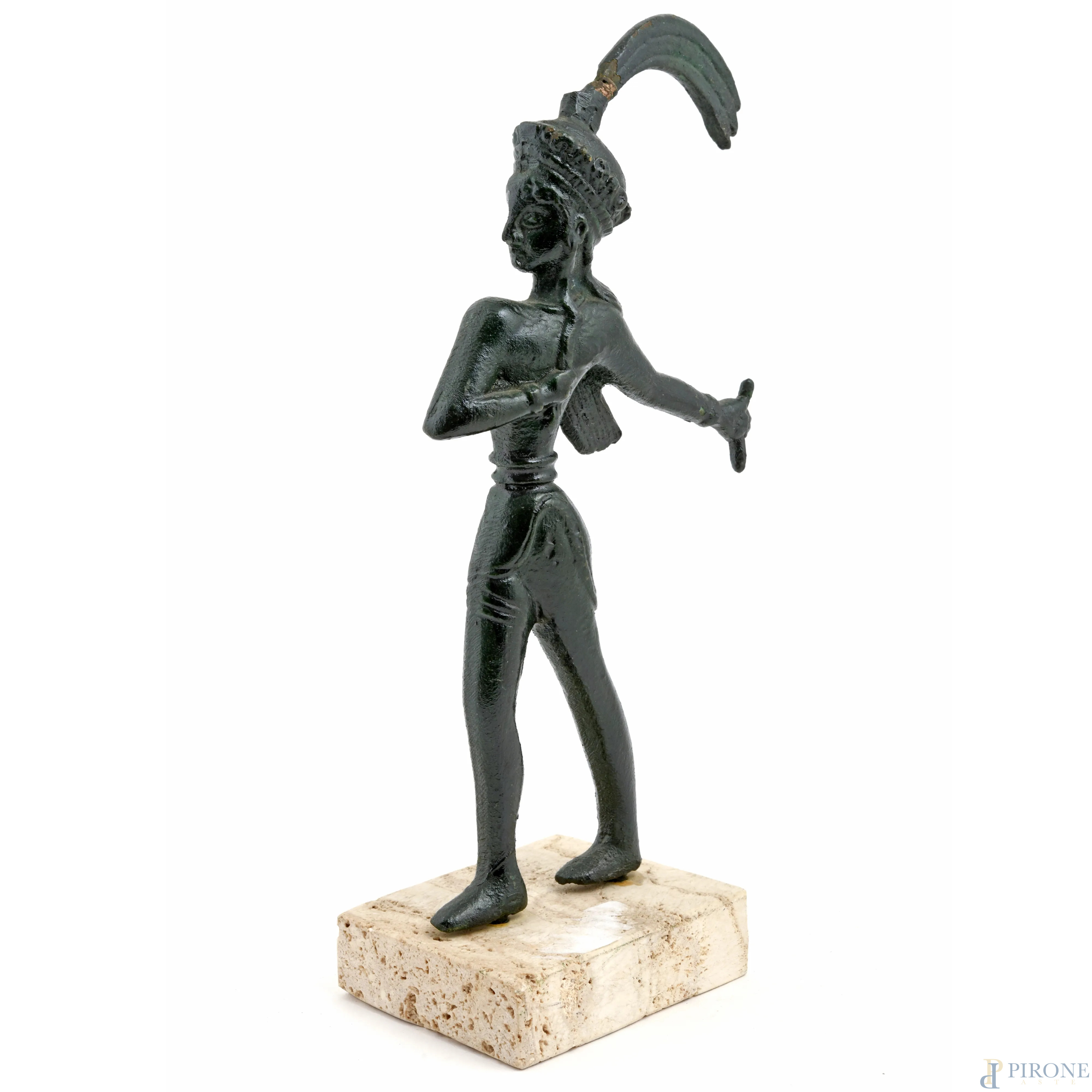 Scultura in bronzo e bronzo dorato raffigurate divinità musicante orientale, XX secolo, altezza cm 17 (segni di usura)