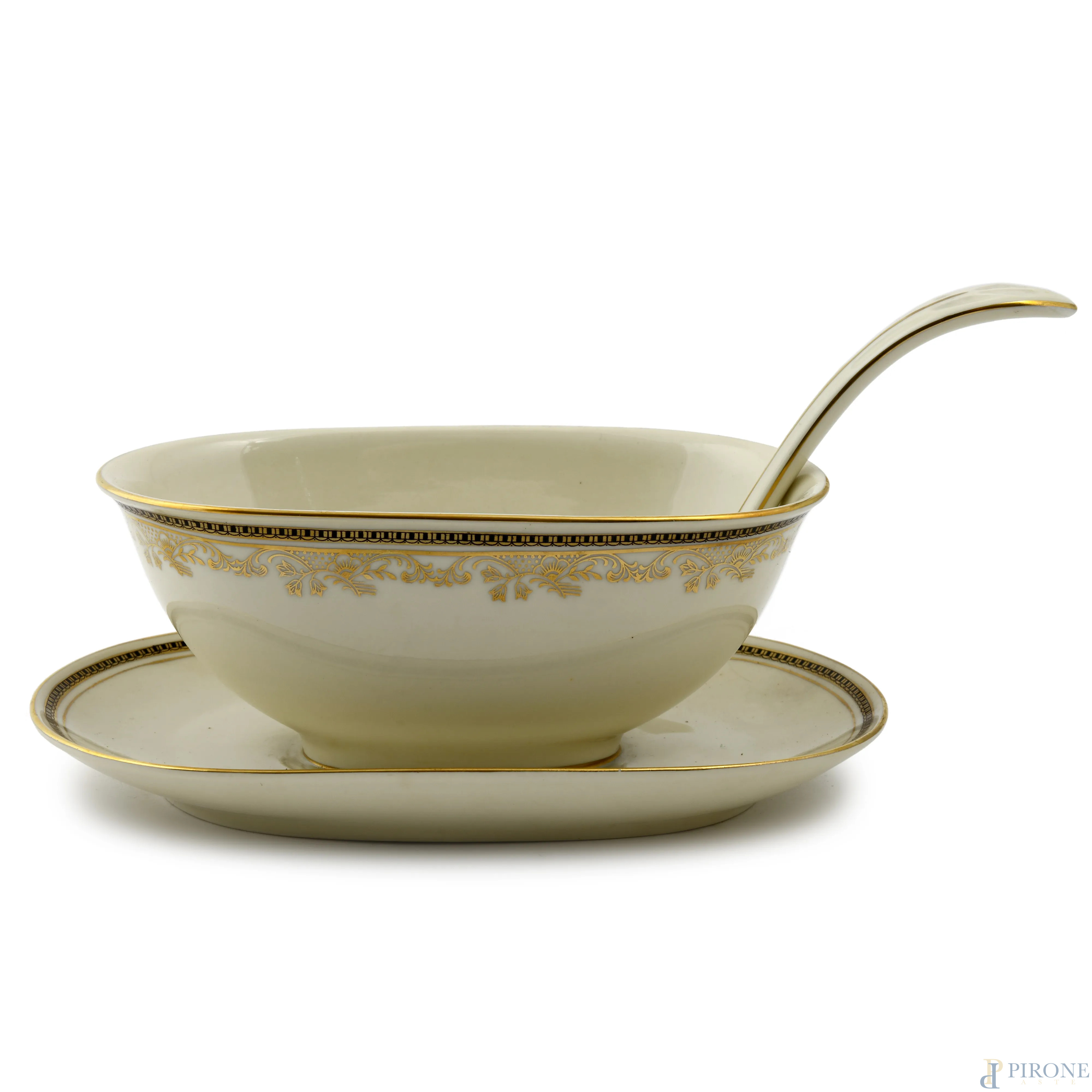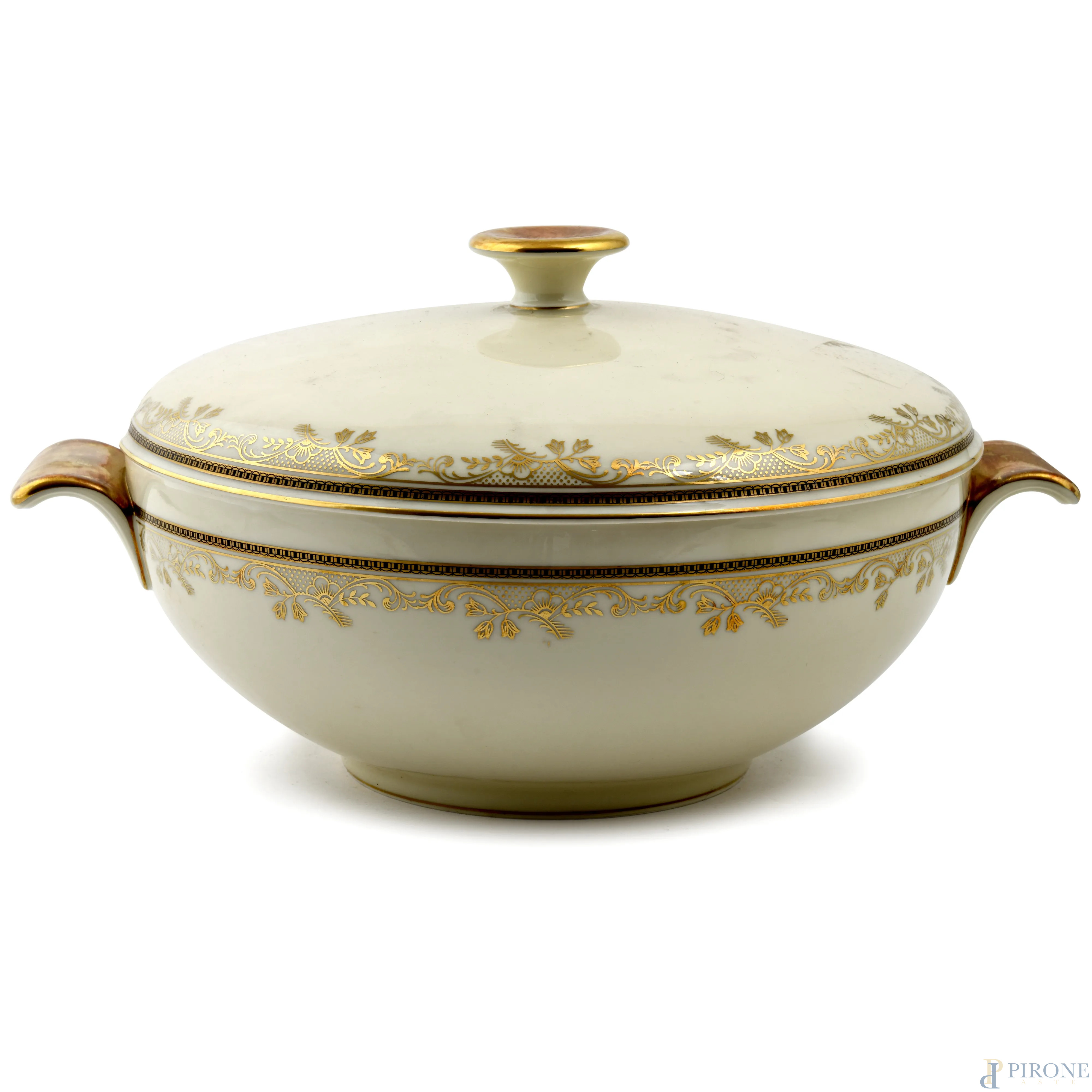 Servizio in porcellana Bavaria Heinrich Avory Body Supreme nei toni dell'avorio e dell'oro (difetti, sbeccature, segni di usura)