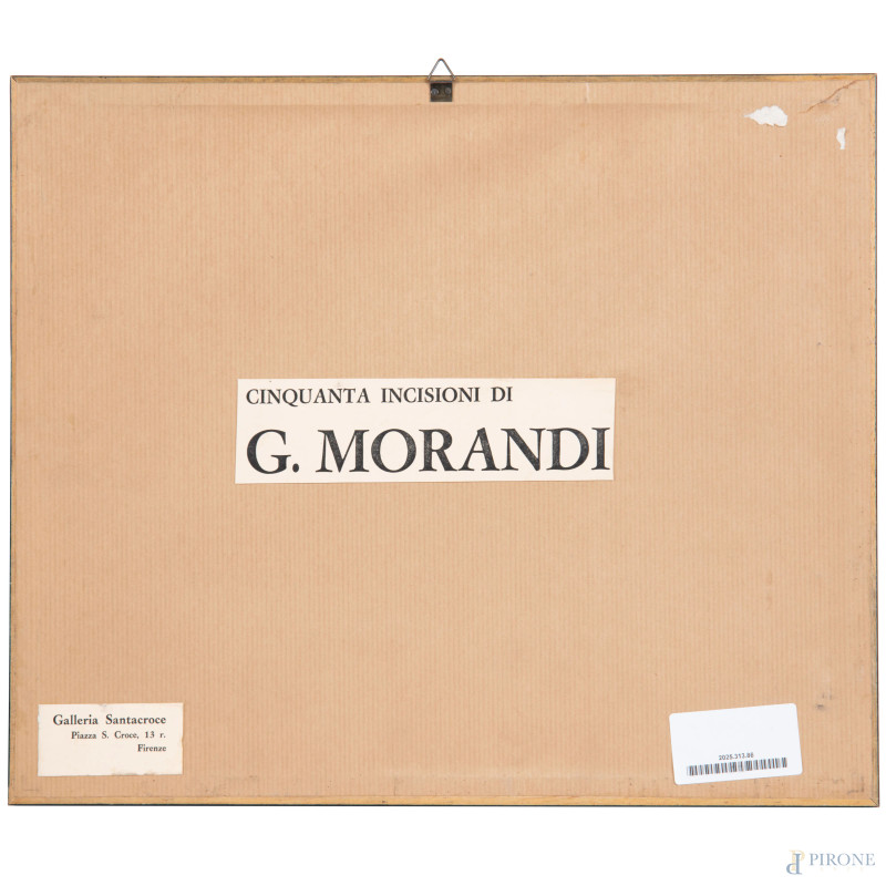 Stampa da incisione di Giorgio Morandi, Natura Morta, cm 22x7,5, entro cornice