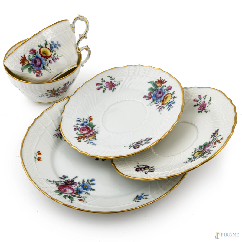 Tête-à-tête Richard Ginori composto da due tazze con piattini e un piatto da dolce