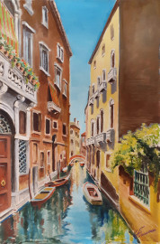 Veduta di canale di Venezia, XX secolo, olio su tela, cm 72x48, firmato in basso a destra