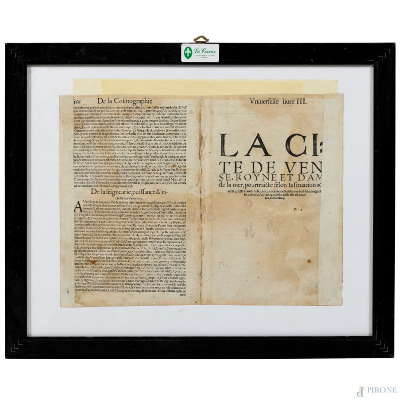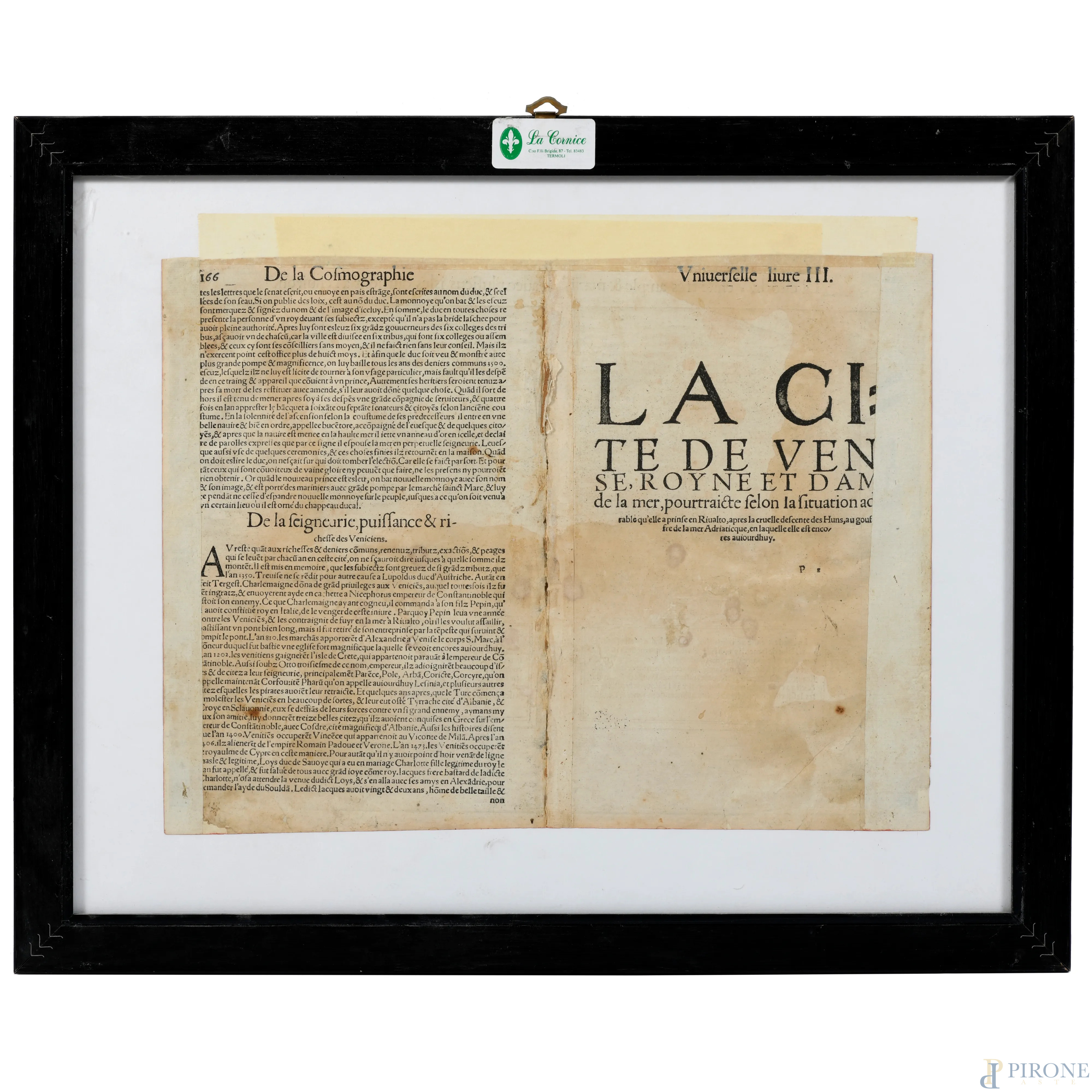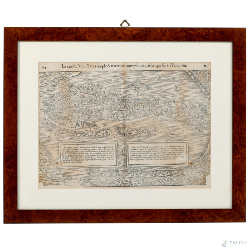 Veduta topografica della città di Venezia, XIX secolo, cm 36x46 compreso passepartout, (segni di umidità, lacerazioni, piegature, difetti)