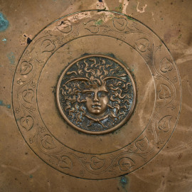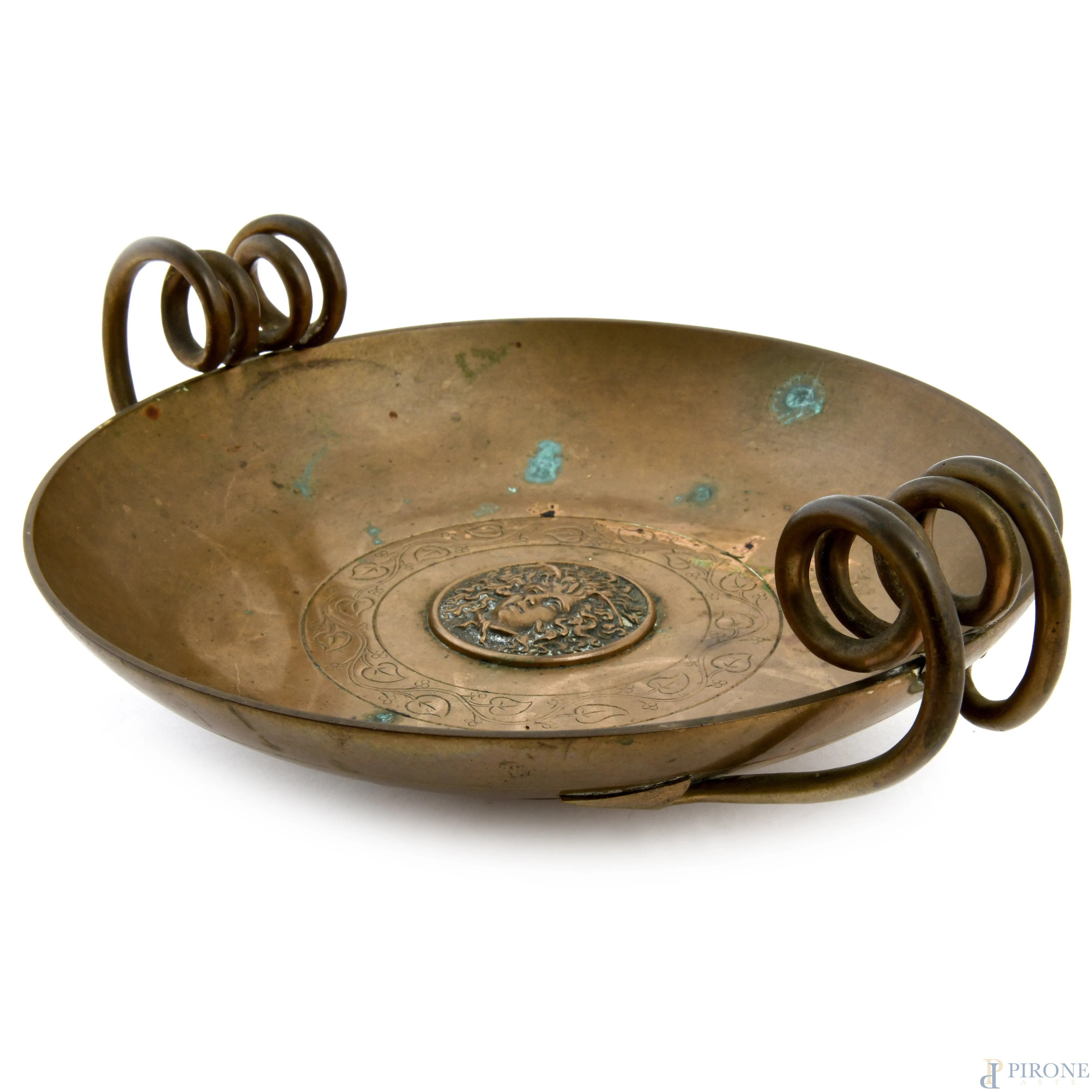 Centrotavola in bronzo con medusa a rilievo al cavetto, XX secolo, cm 8,5x24x20, (segni di usura)