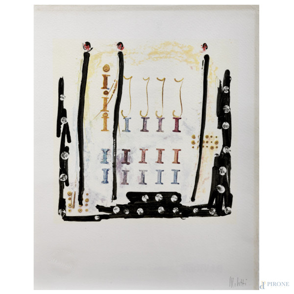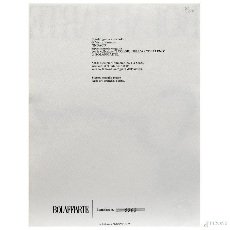 Fotolitografia a sei colori di Victor Asmore, "Indaco", eseguita per la collezione I colori dell'arcobaleno di Bolaffi Arte, cm 27,5x20