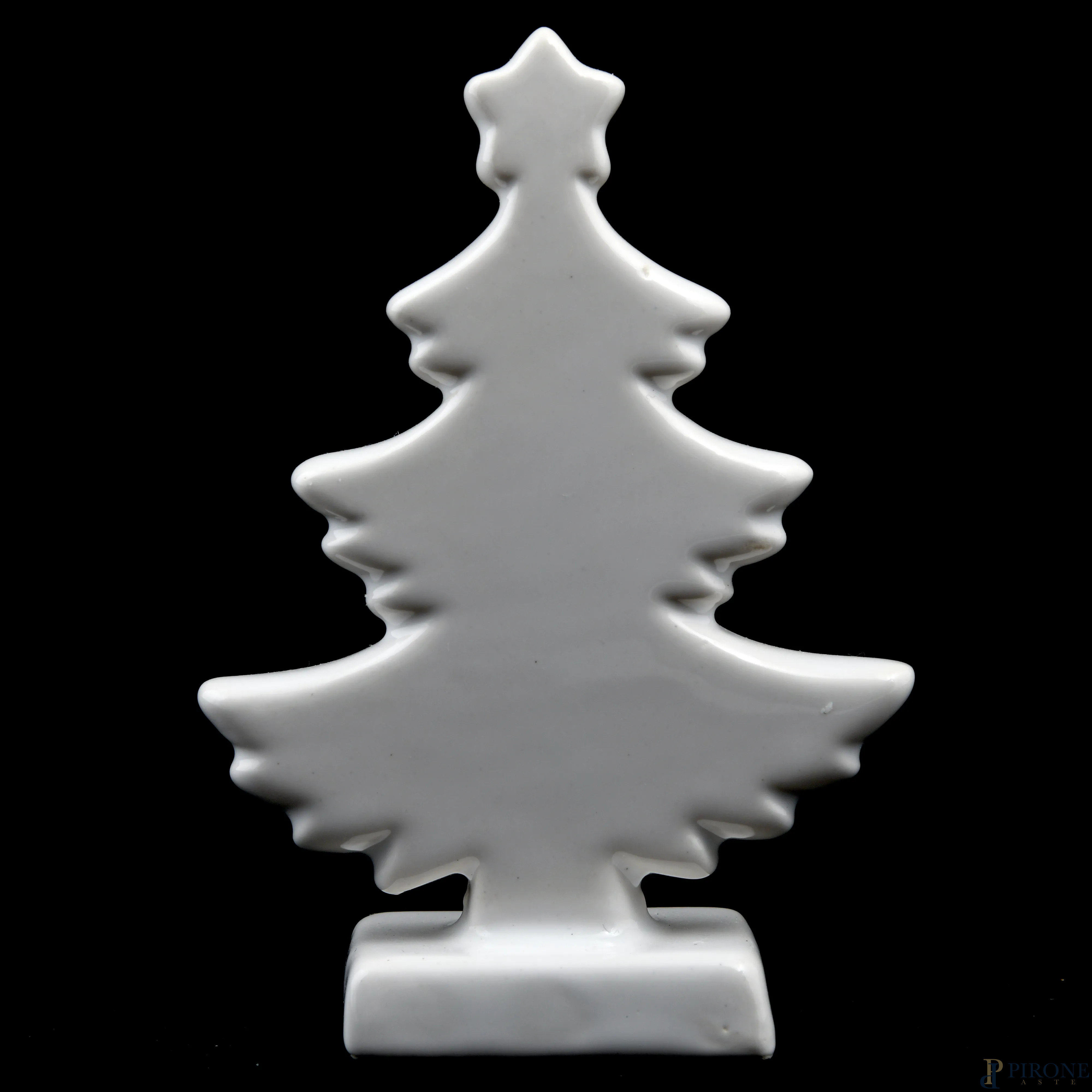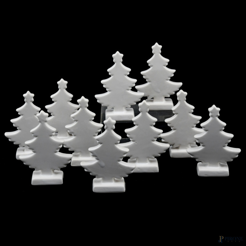 Lotto di 10 segnaposto a guisa di abete di Natale in porcellana bianca, altezza cm 8,5 (segni di usura)