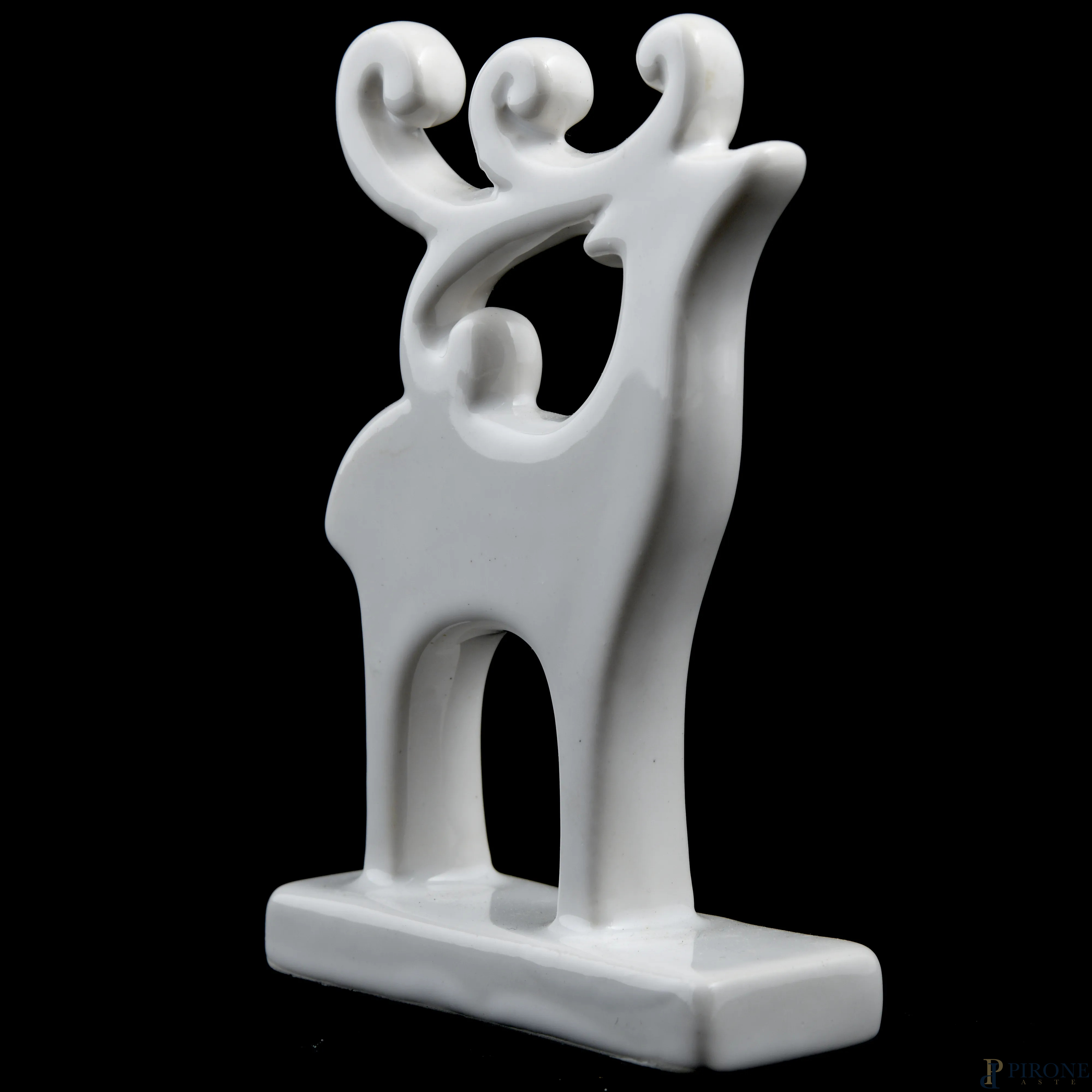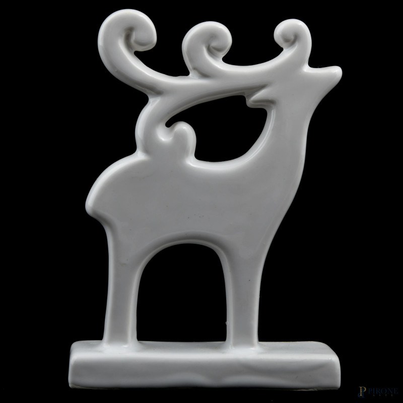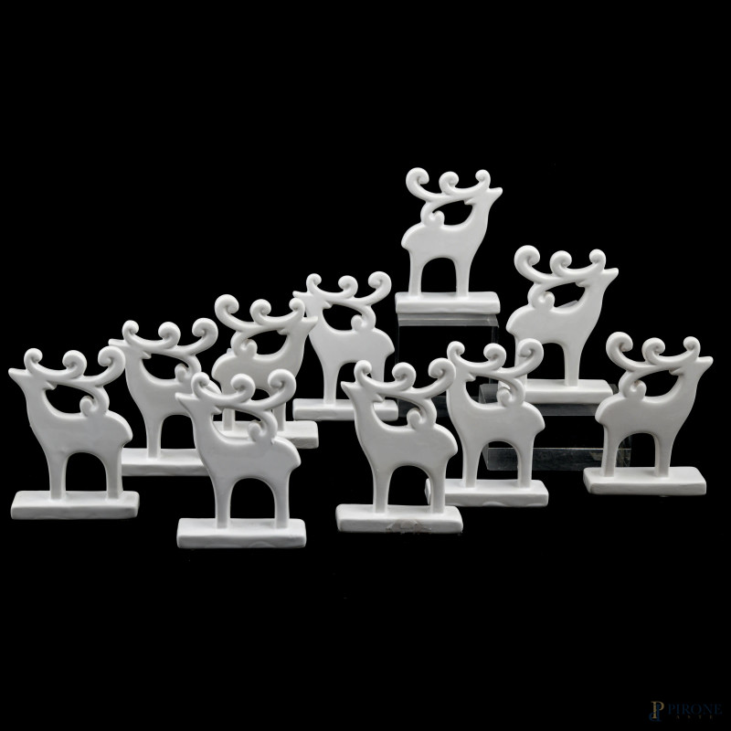 Lotto di 10 segnaposto a guisa di renna di Natale in porcellana bianca, altezza cm 11 (segni di usura)