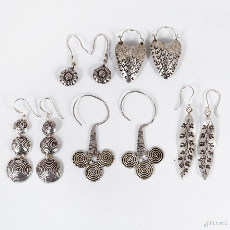 Lotto di orecchini in argento, peso lordo complessivo gr 40