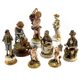 Lotto di statuine in porcellana e biscuit di varia manifattura, XX secolo, altezza masssima cm 23,5 (difetti, scalfiture, cadute di colore, scalfiture)