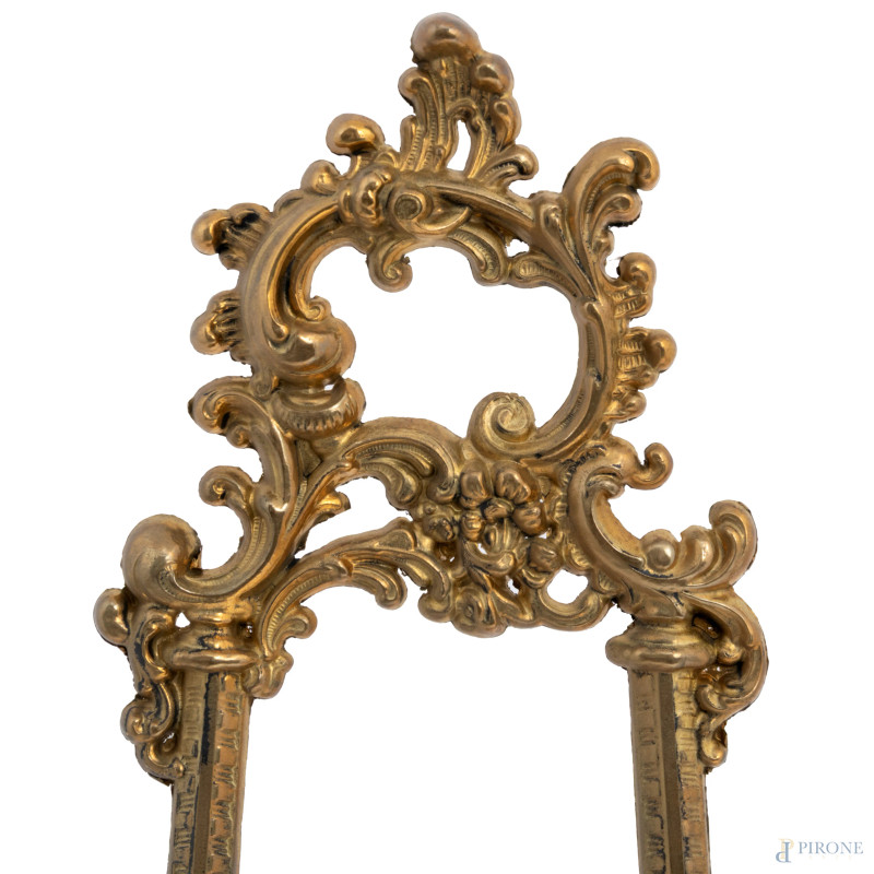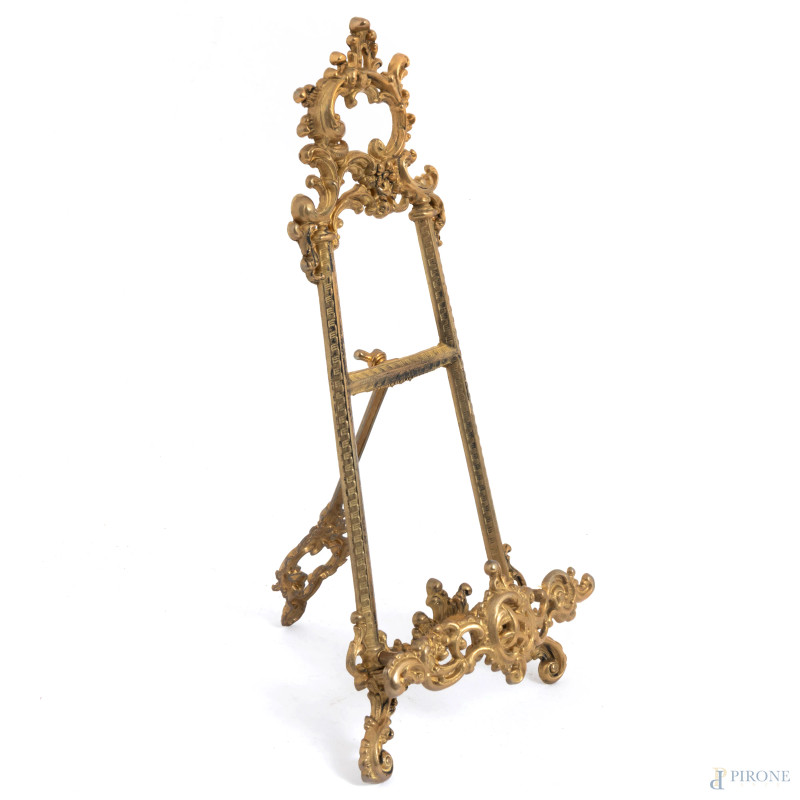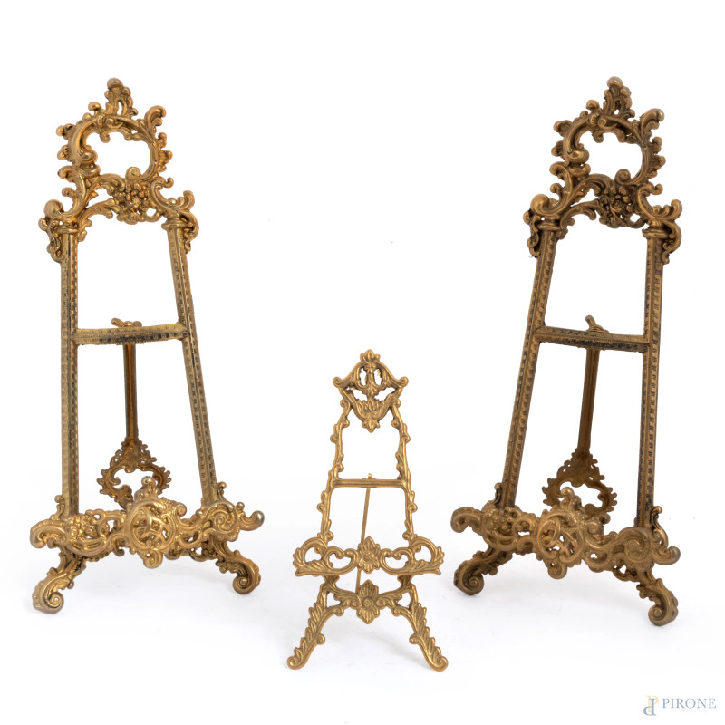 Lotto di tre cavalletti in bronzo dorato finemente cesellato, XX secolo, altezza massima cm 39,5