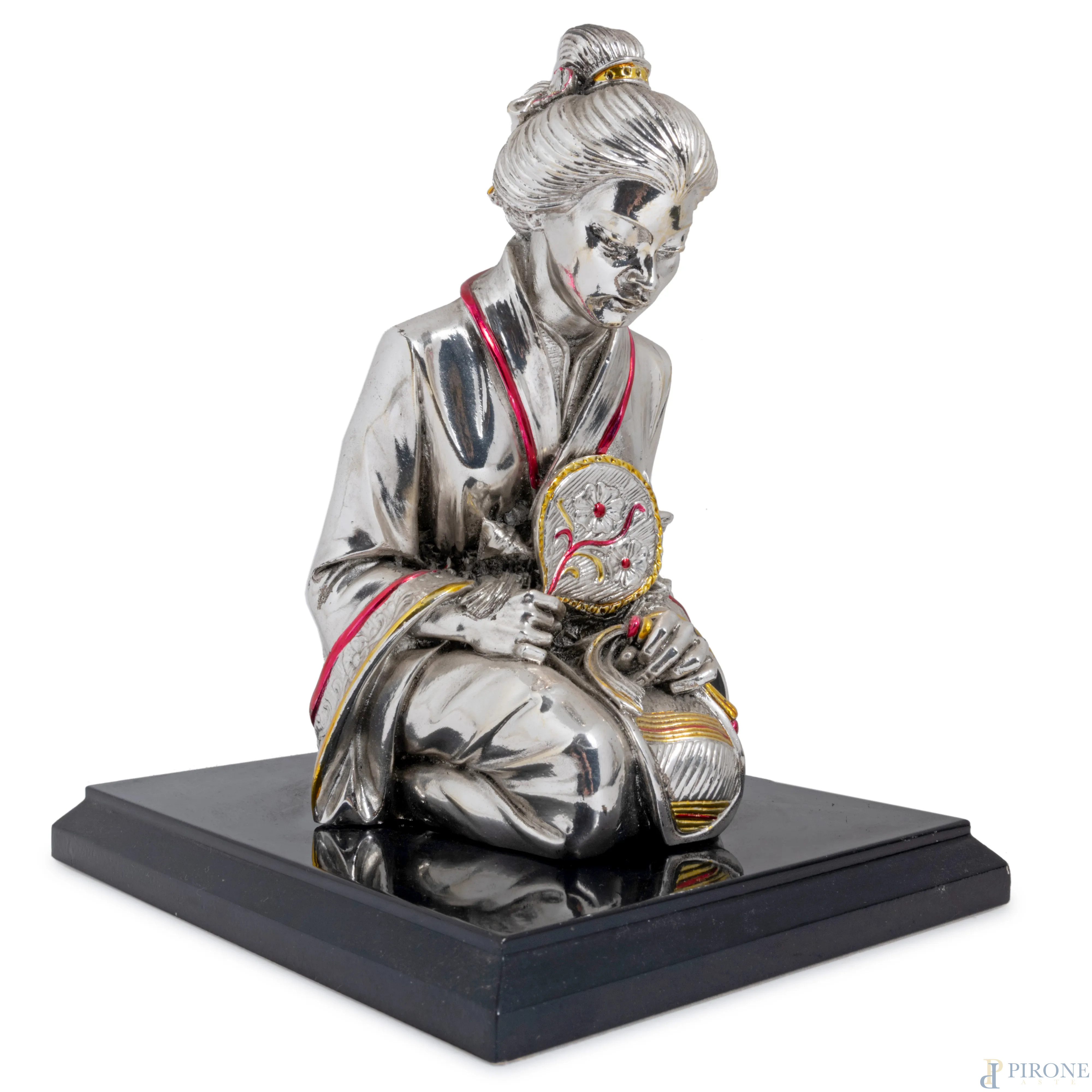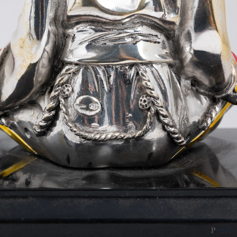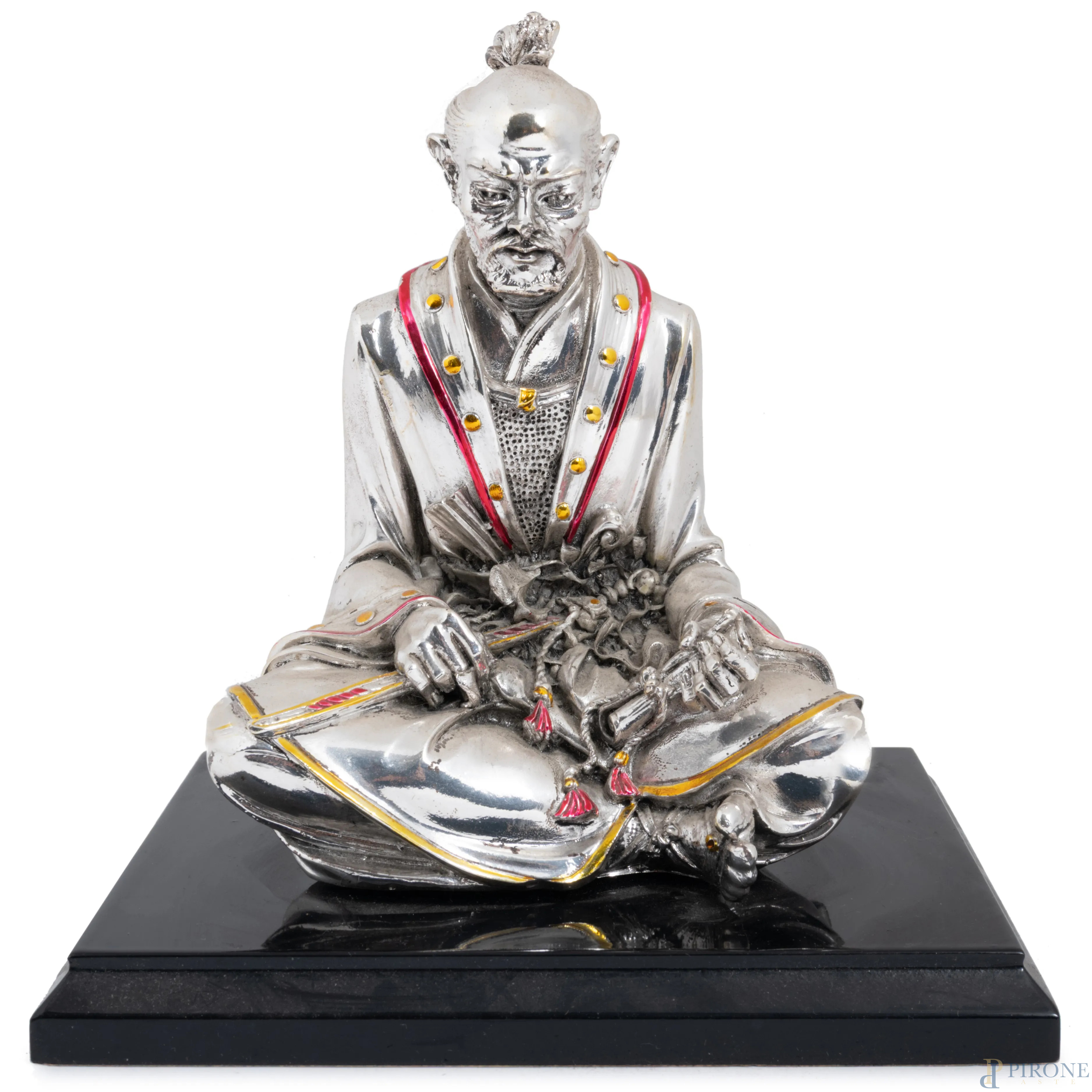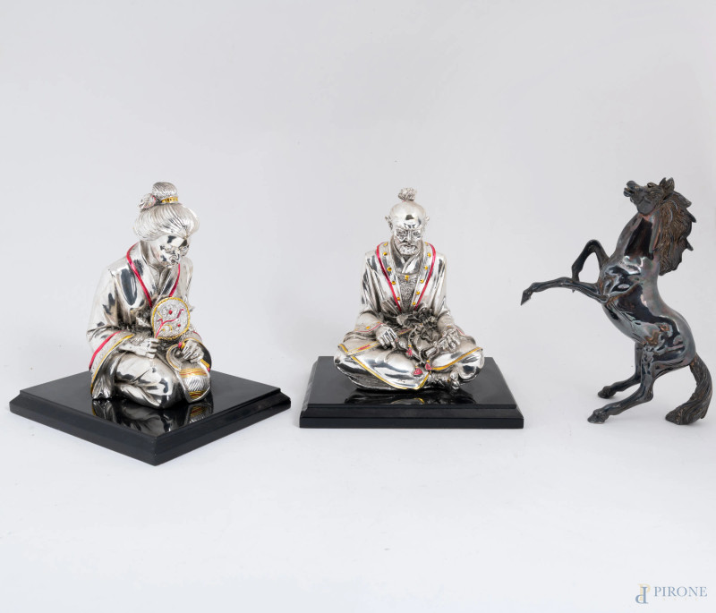 Lotto di tre sculture in metallo galvanizzato, XX secolo, misure massime cm 22x19x17, (segni di usura, difetti)