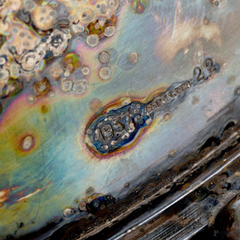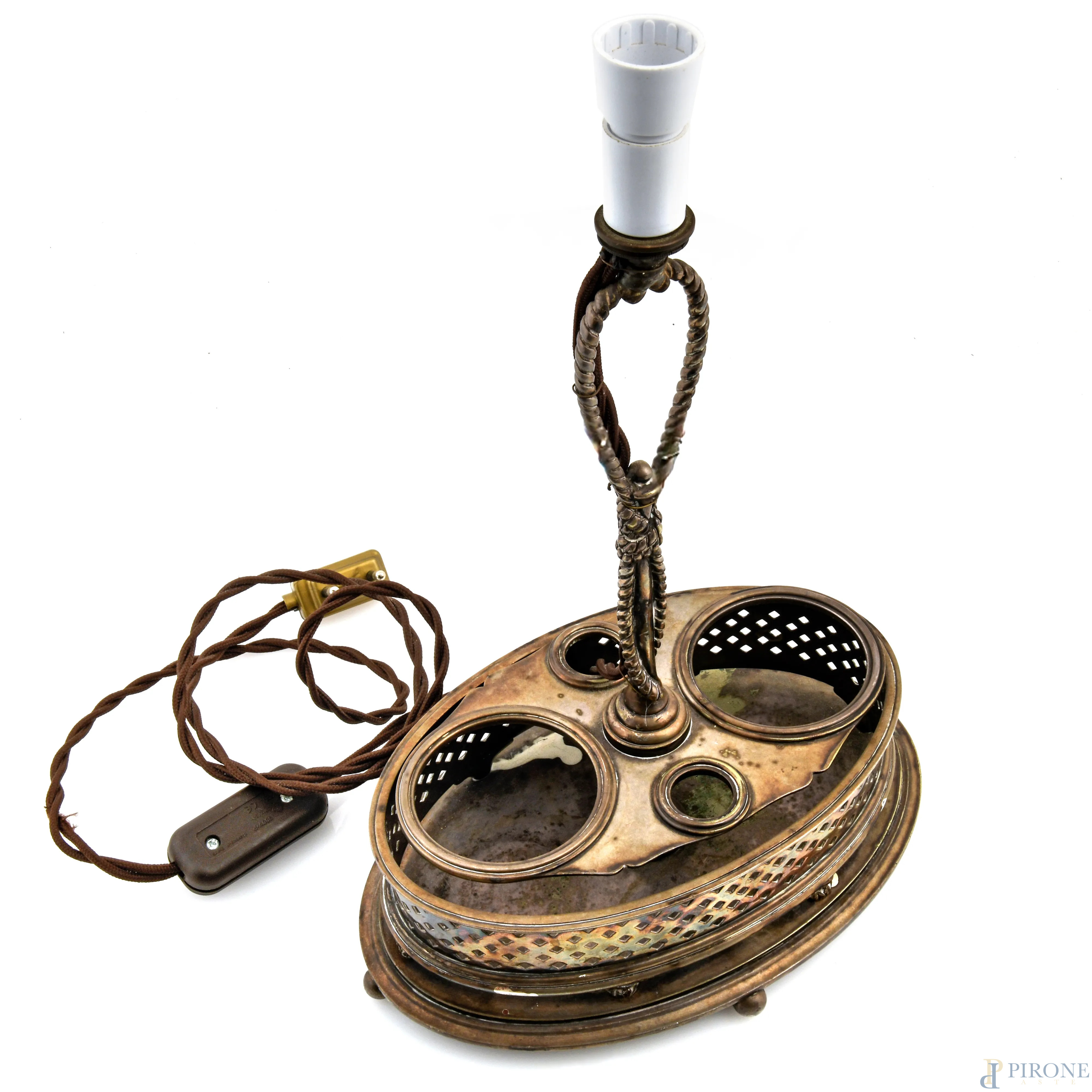 Oliera montata a lampada da tavolo in argento. Argentiere Calderoni, 1937, altezza cm 33, peso complessivo lordo gr 1330 (da revisionare, segni di usura)
