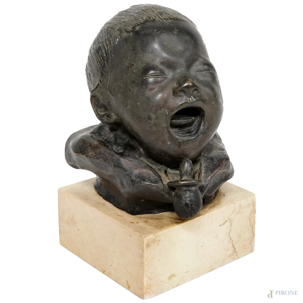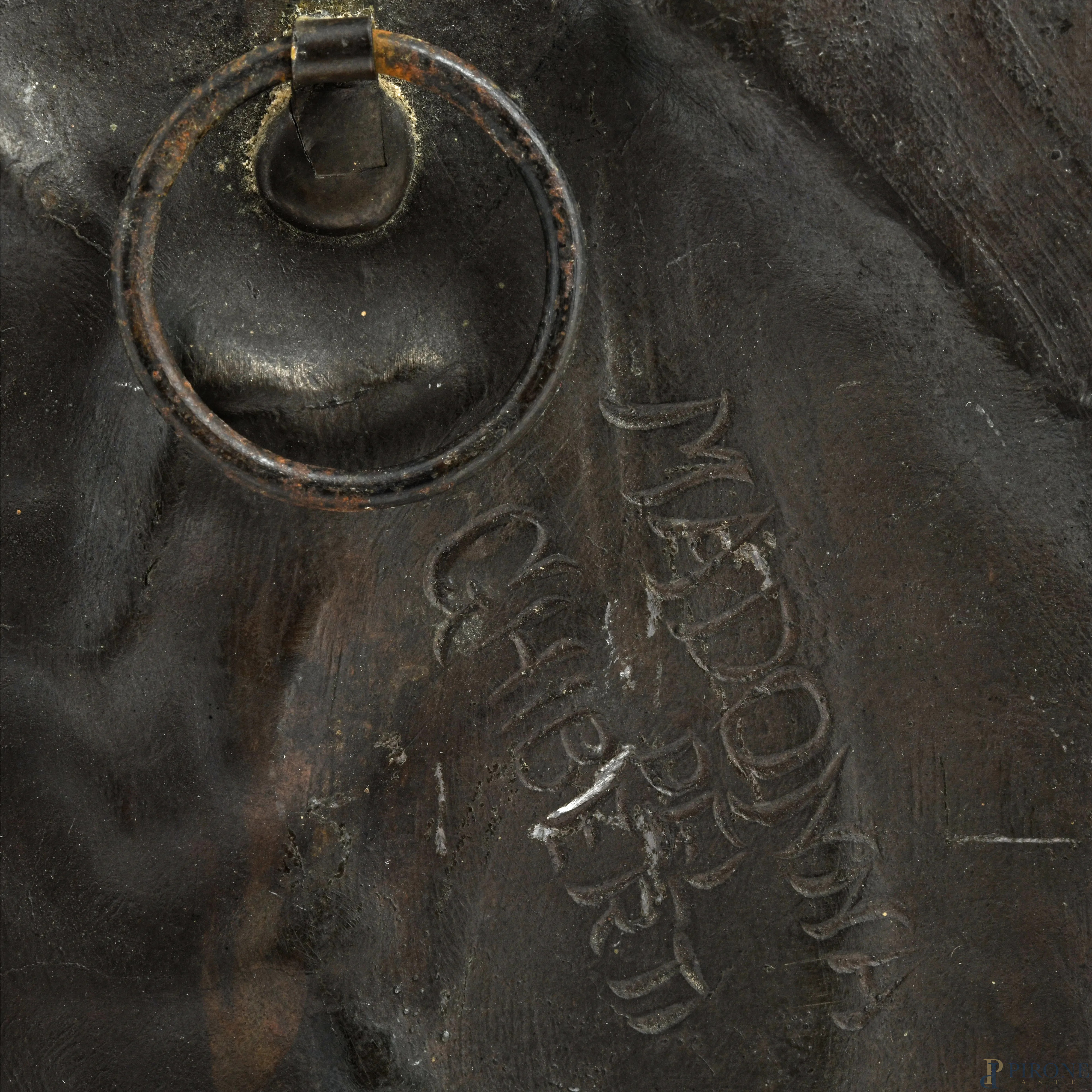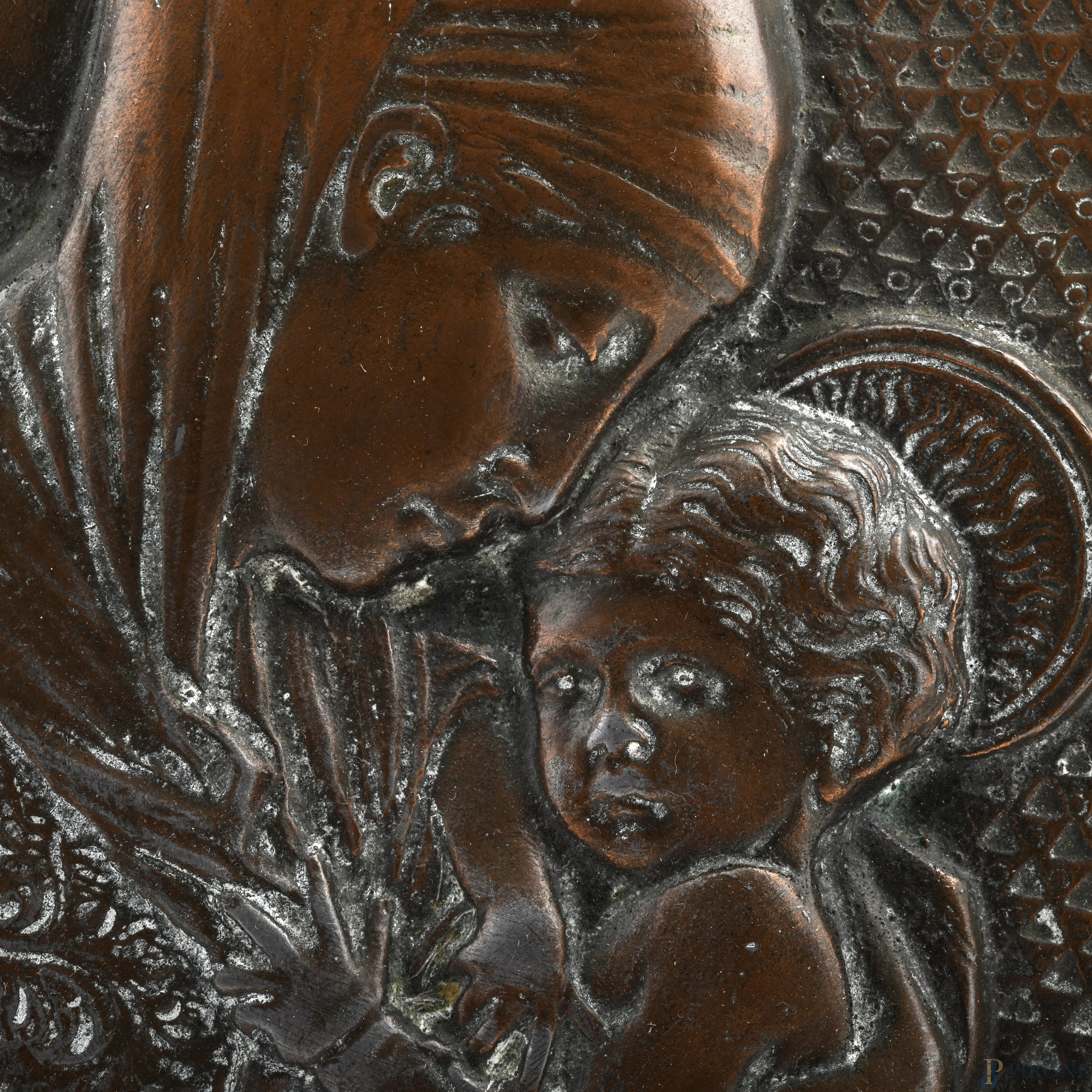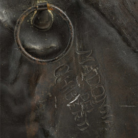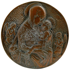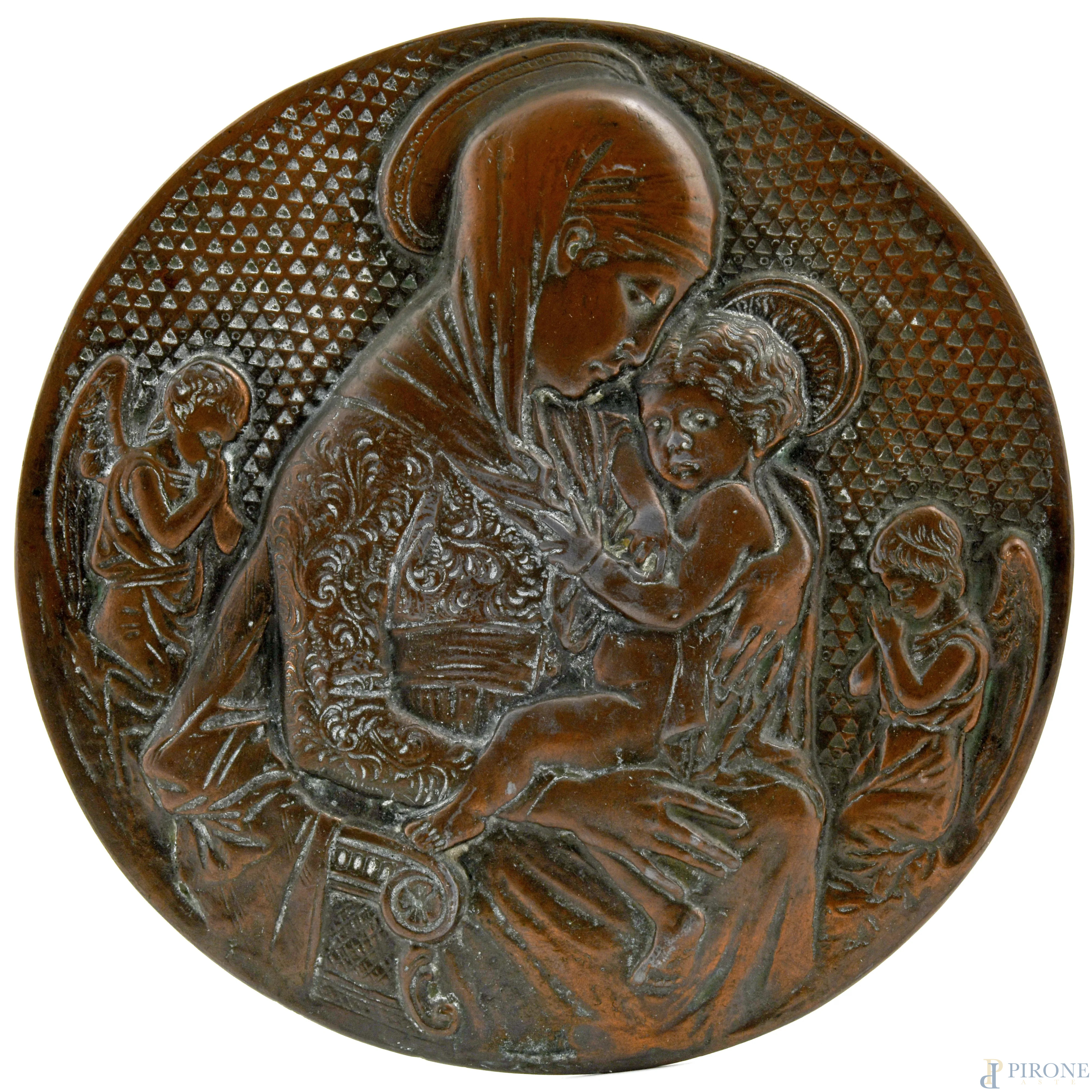 Placca circolare in bronzo raffigurante Madonna con Bambino, XX secolo, diametro cm 21