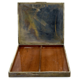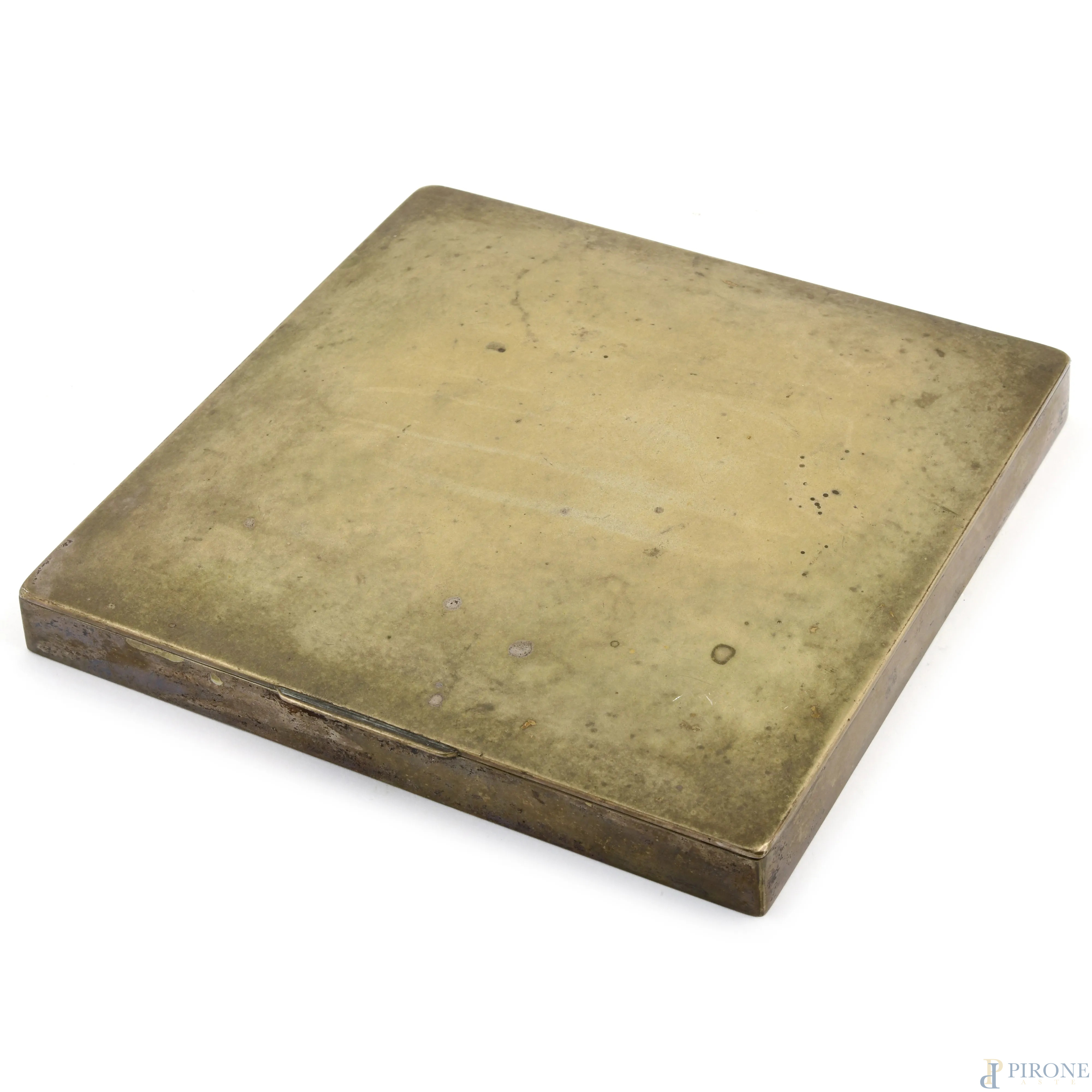 Portasigari in legno rivestito in argento, XX secolo, cm 2x18,5x18,5