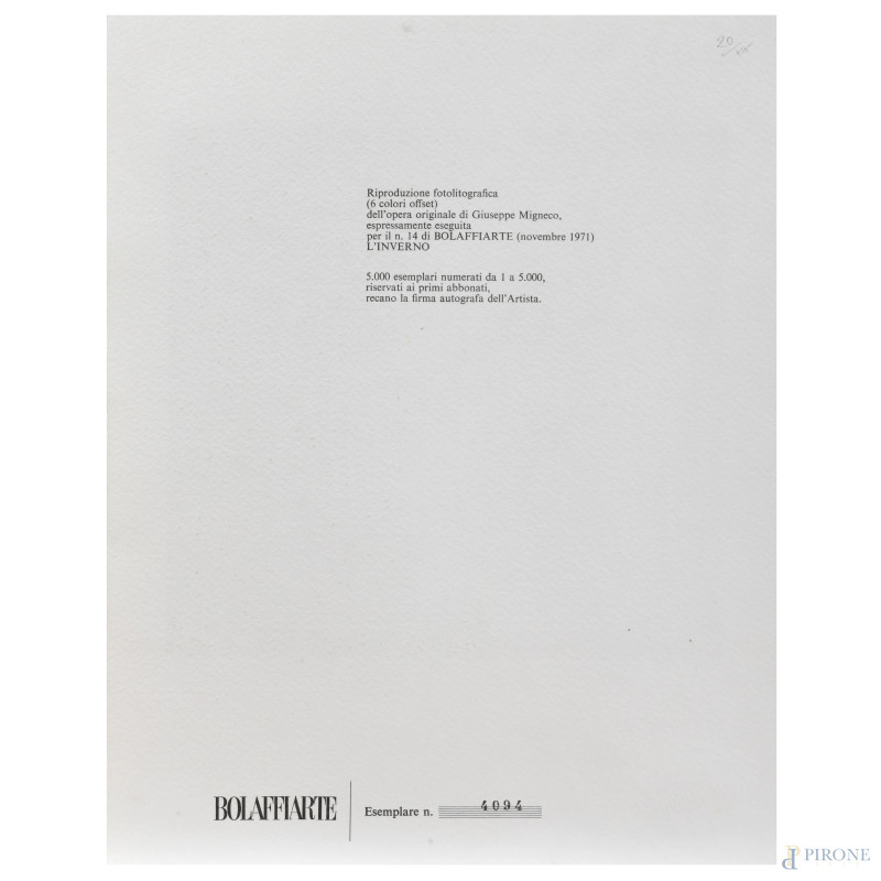 Riproduzione fotolitografica dell'opera di Giuseppe Migneco "L'inverno", eseguita per la serie Alfabeto di Bolaffi Arte, cm 30x23,5