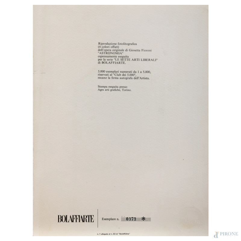 Riproduzione fotolitografica dell'opera diGiosetta Fioroni "Astronomia", eseguita per la serie Le sette Arti Liberali di Bolaffi Arte, cm 28x20