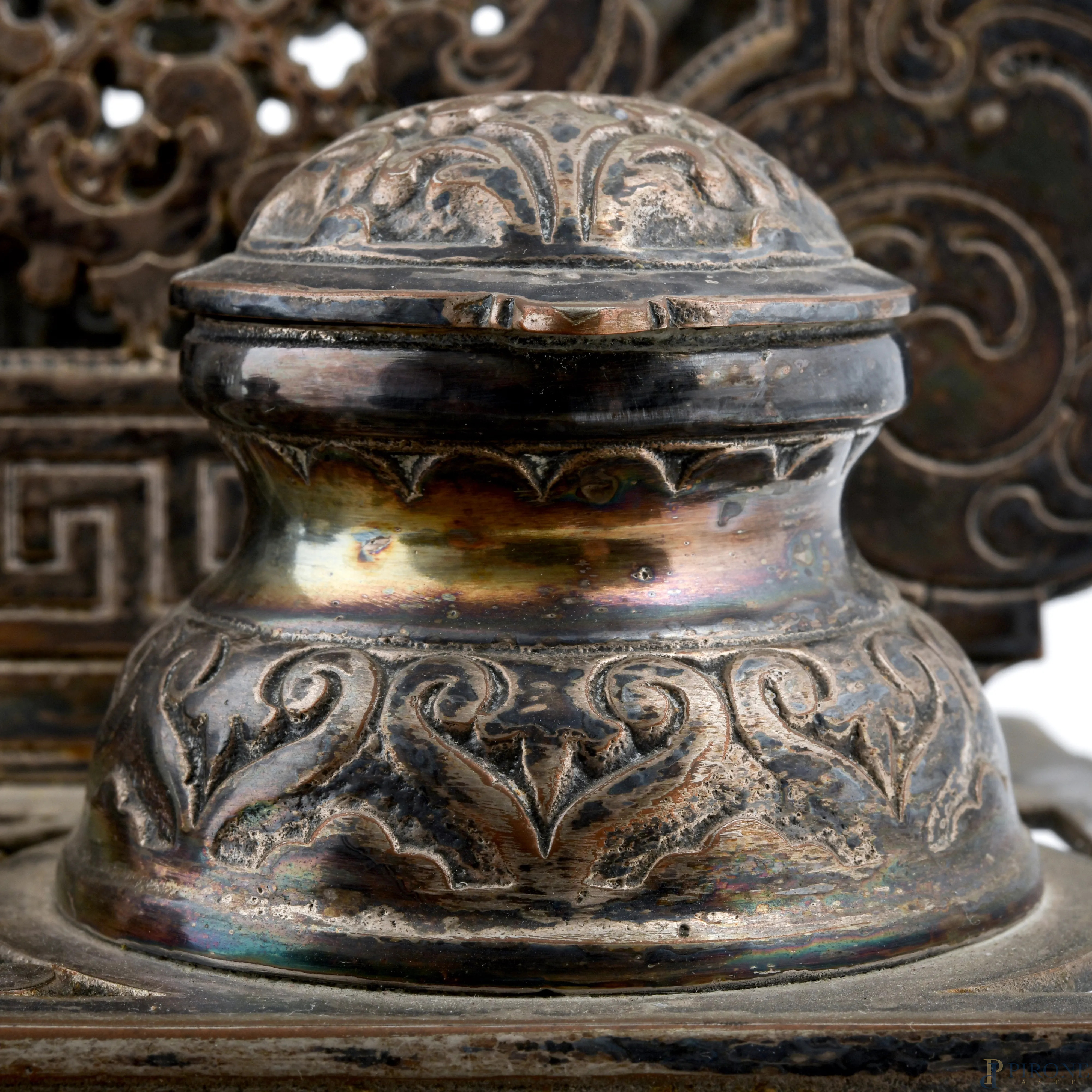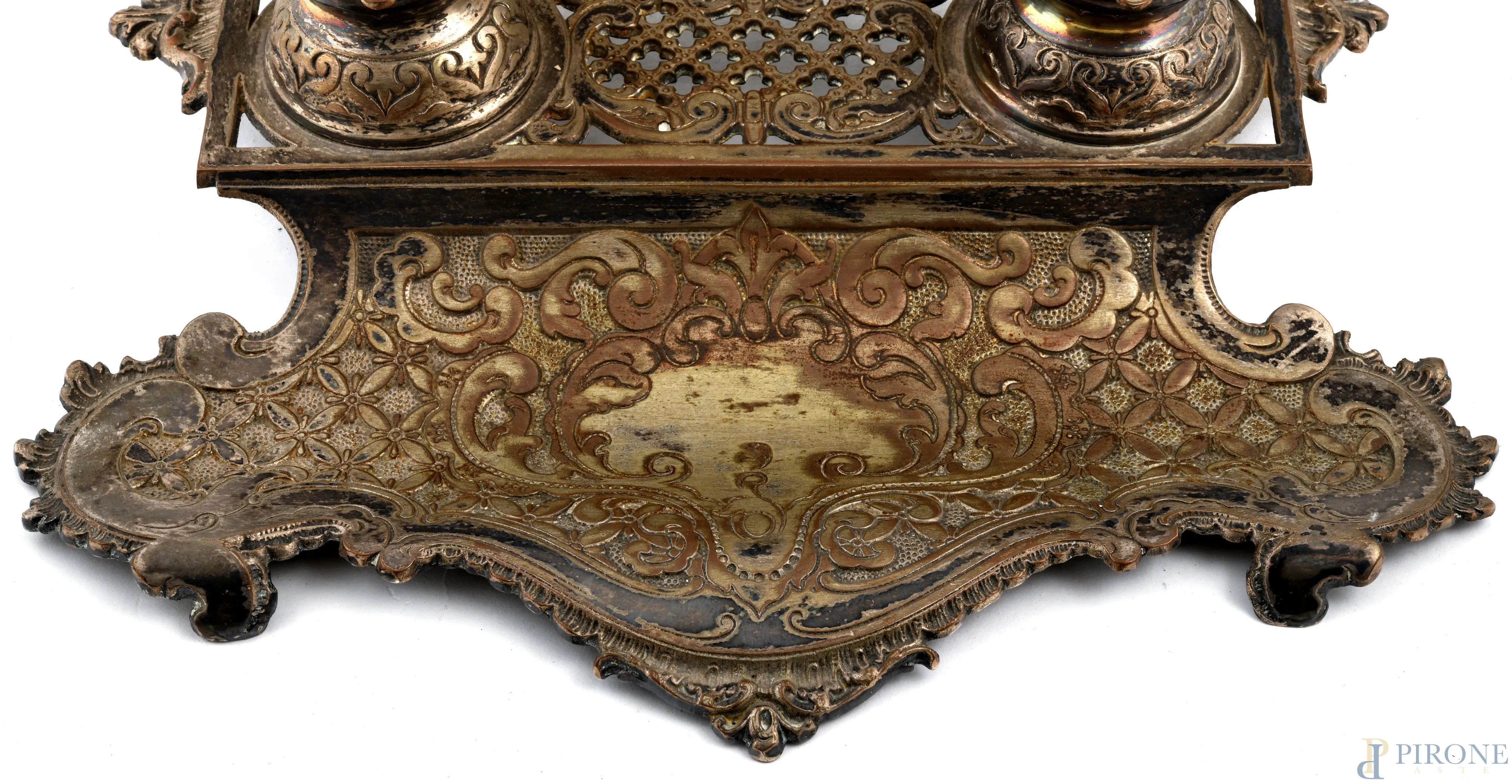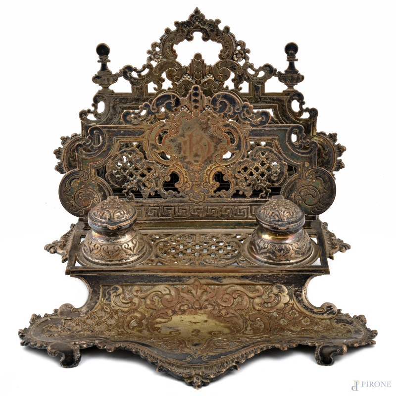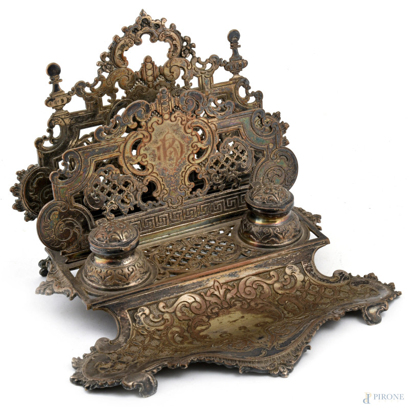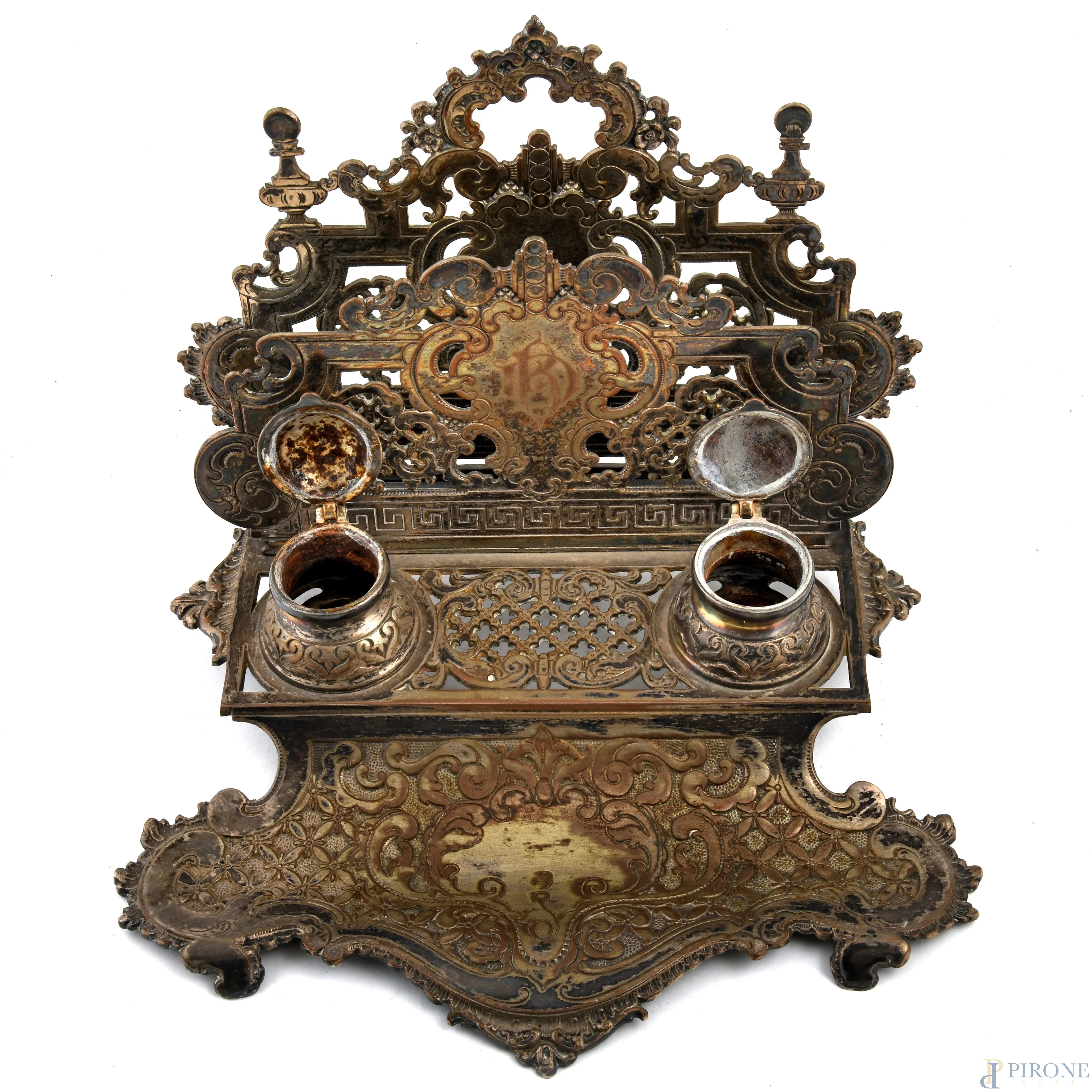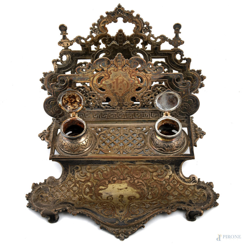 Servito da scrittoio in bronzo argentato, XX secolo, cm 26x34x26, (segni di usura)
