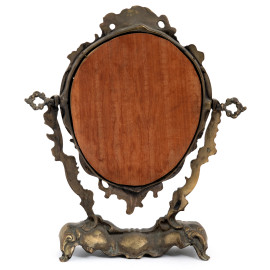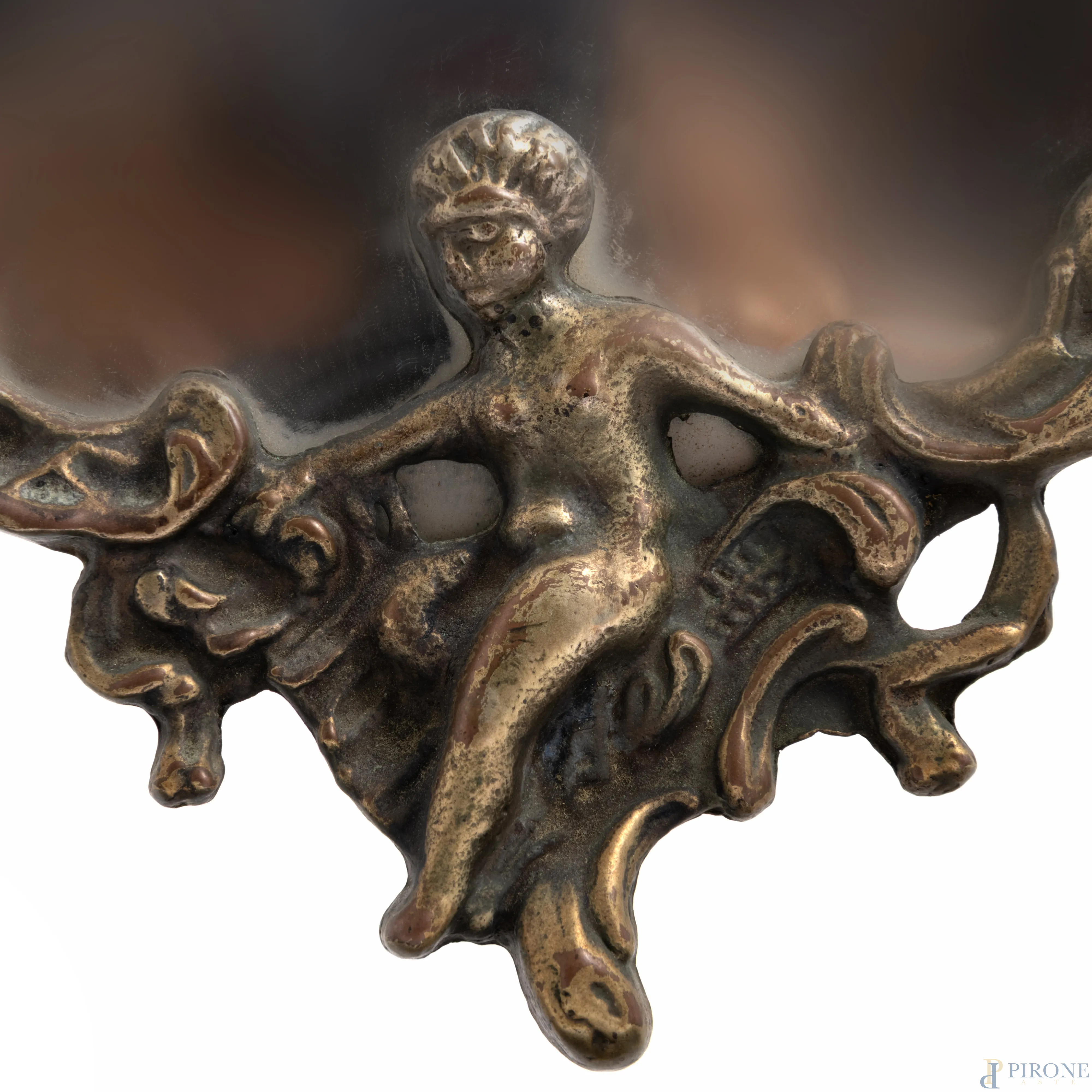 Specchio da toletta in bronzo dorato finemente cesellato, XX secolo, cm 33x28, (segni di usura)