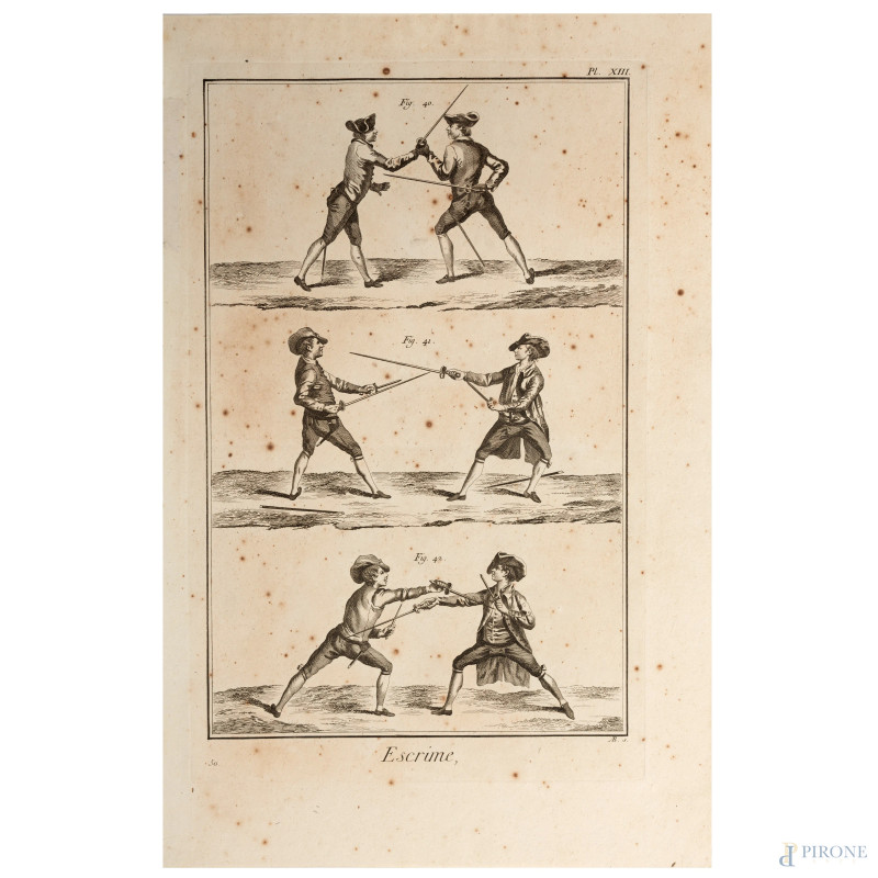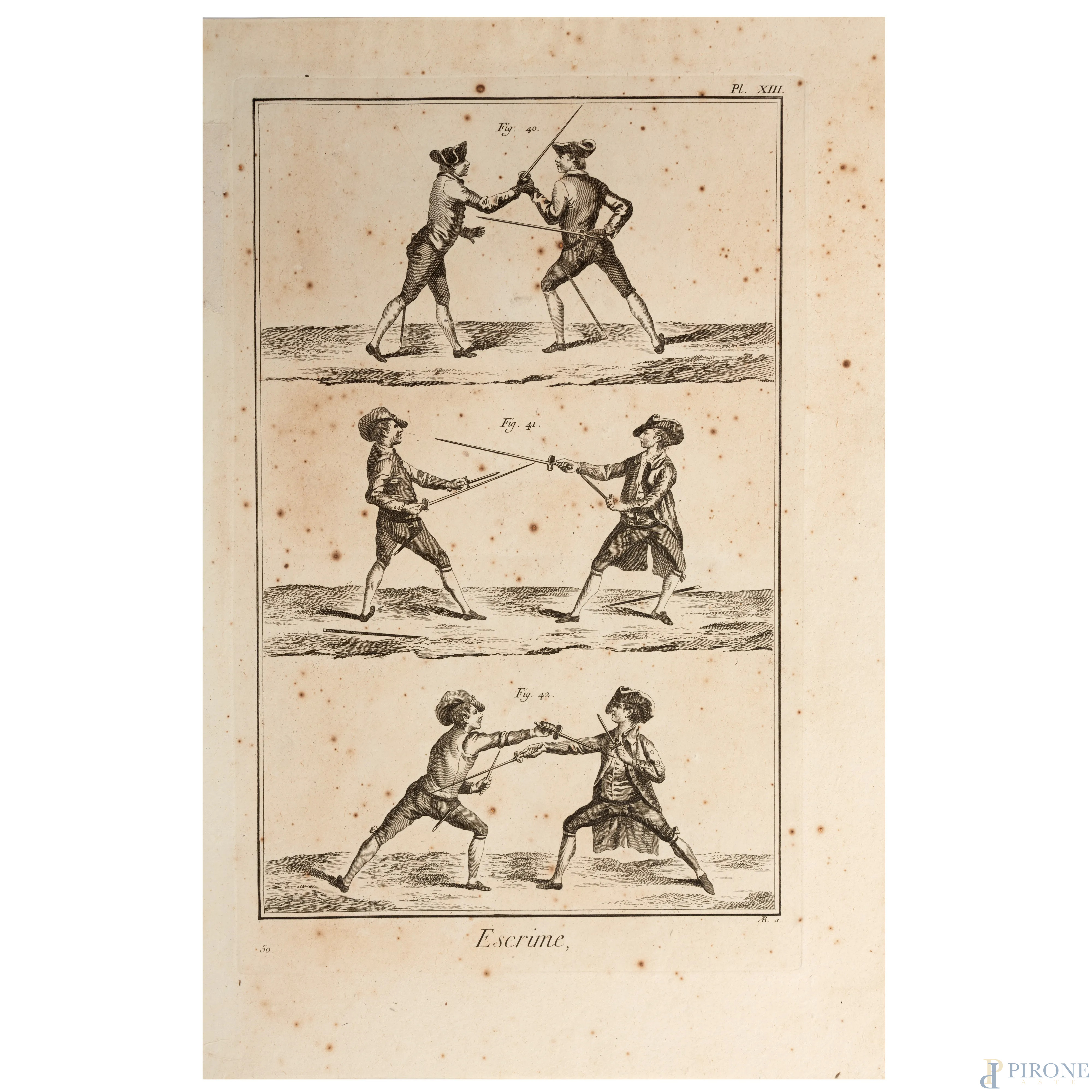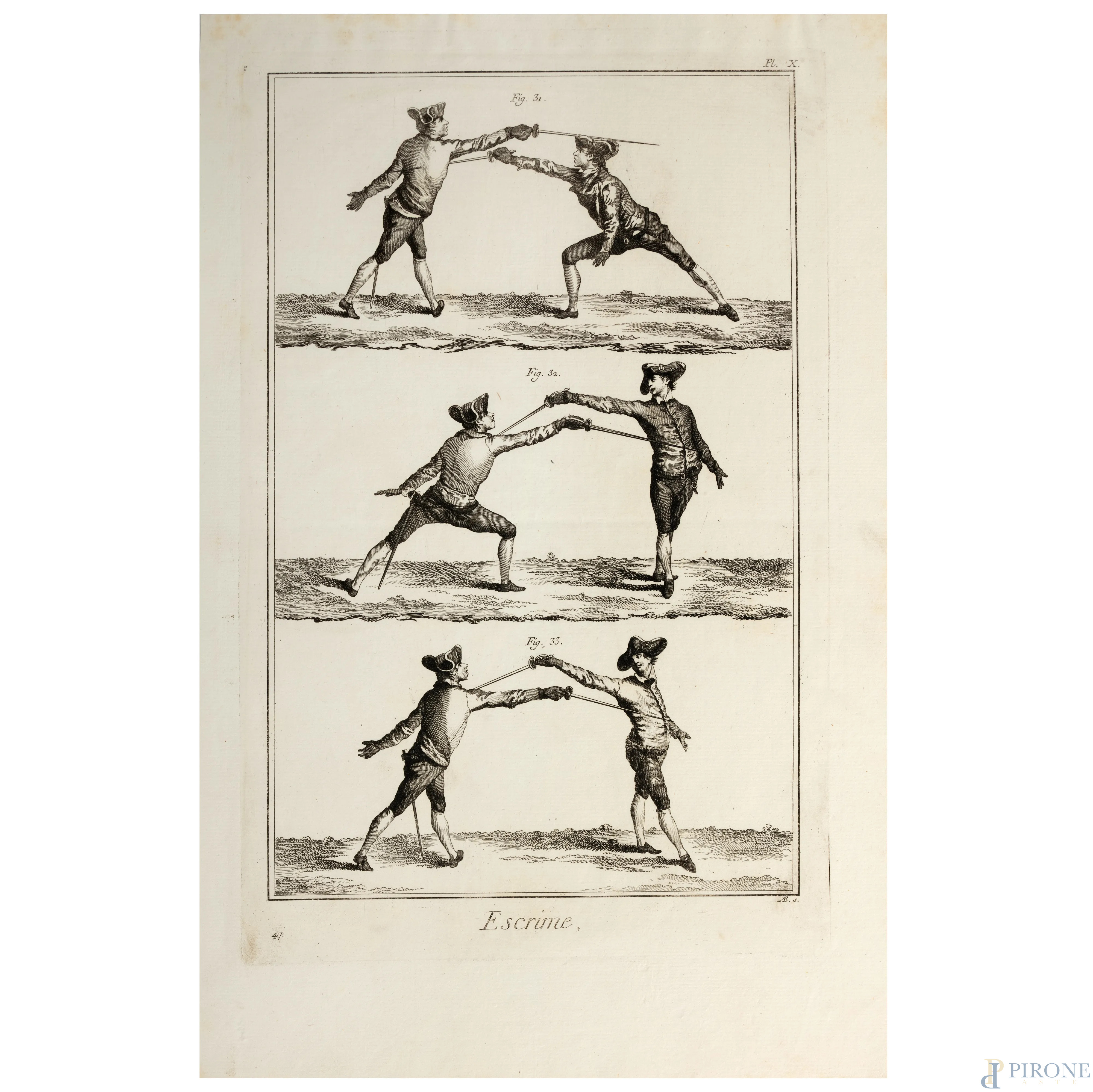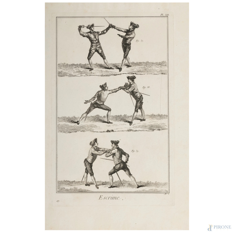 A J De Fehrt (1723 ca.-1774) e Benoit-Louis Prevost (c.1735-1804) Lotto di tre incisioni ad acquaforte e bulino tratte da "Recueil de Planches, sur les Sciences, les Arts Liberaux, et les Arts Mechaniques avec leur Explication", foglio cm 42 x 27, (segi d