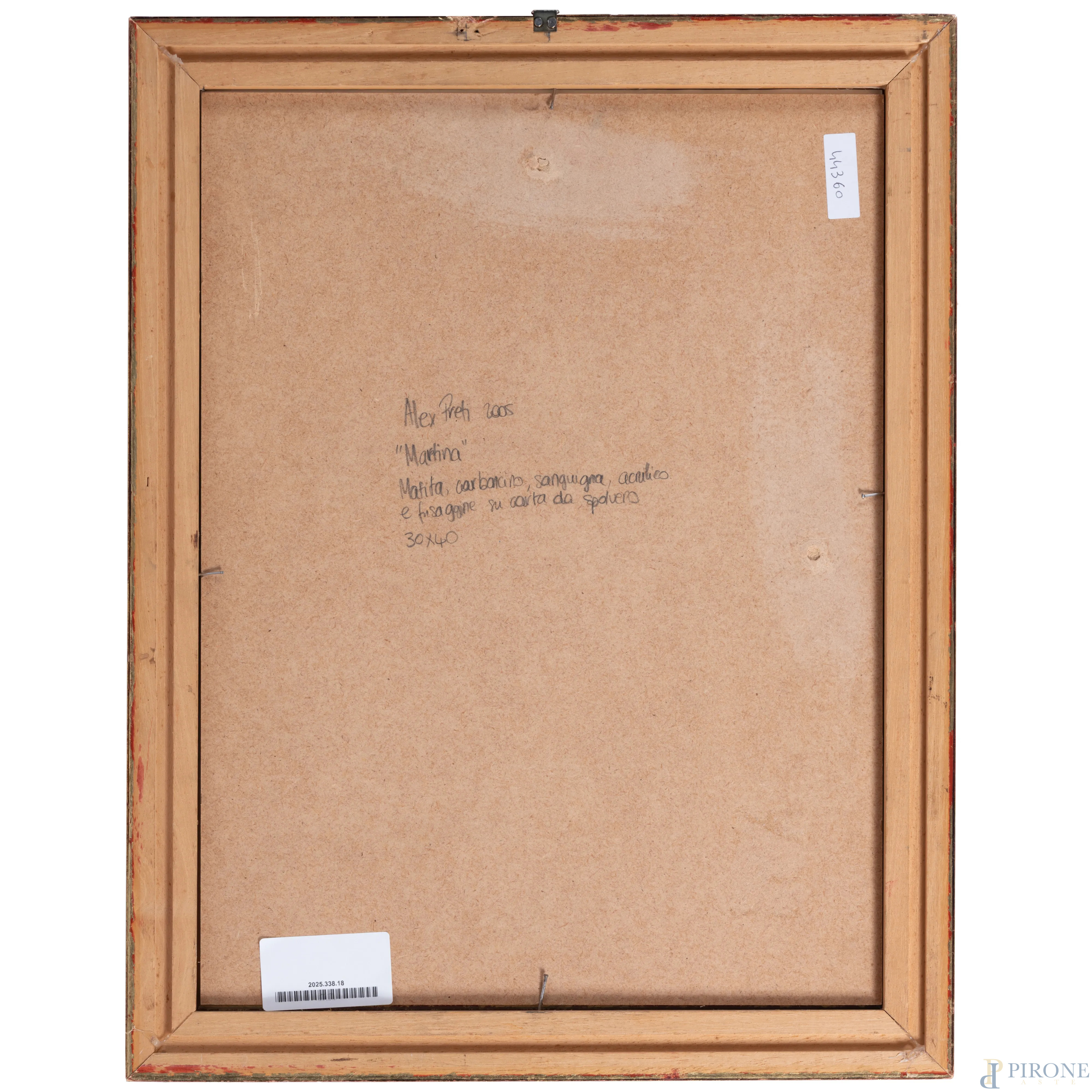 Alex Presti, Martina, tecnica mista su carta, cm 40x30, firmato e datato "05" in basso a destra; firmato, titolato e datato al retro, entro cornice