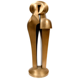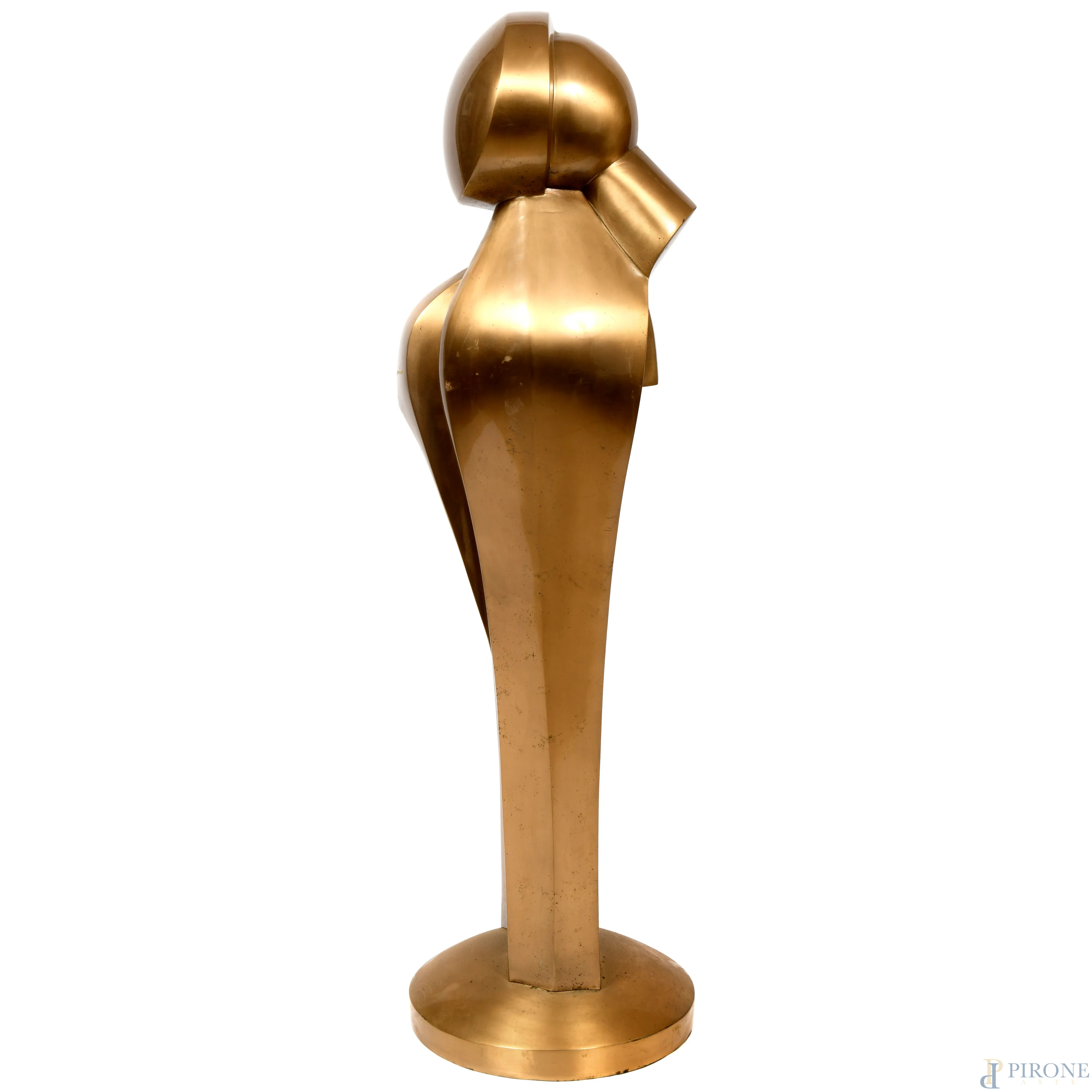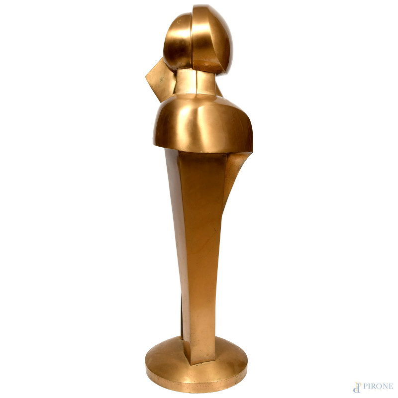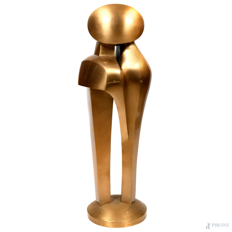 Amelio Roccamonte (1927-1980), Senza Titolo, scultura in bronzo dipinto su base circolare in marmo , firmato alla base "Roccamonte 67", XX secolo, altezza cm 120 circa, (segni di usura, graffi)