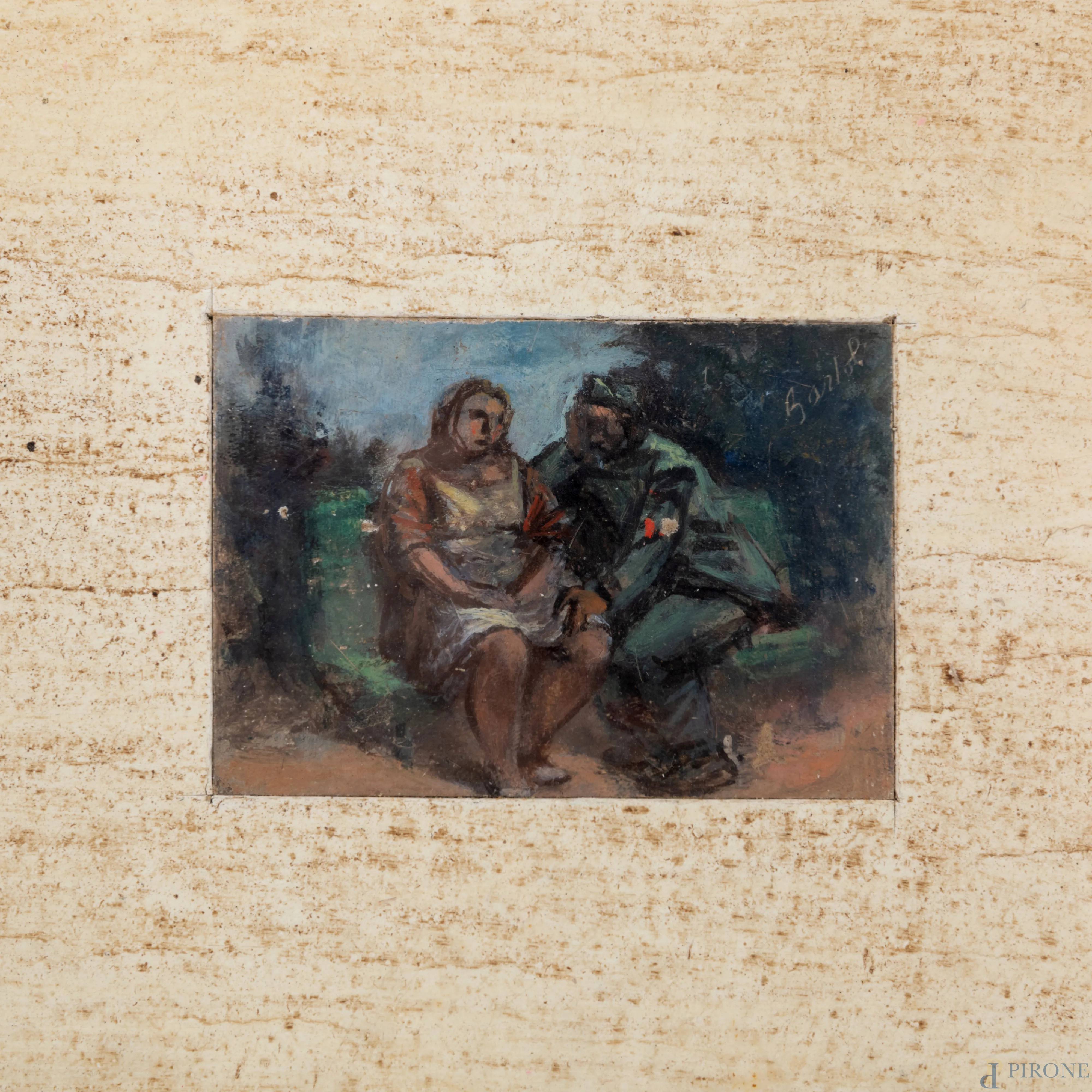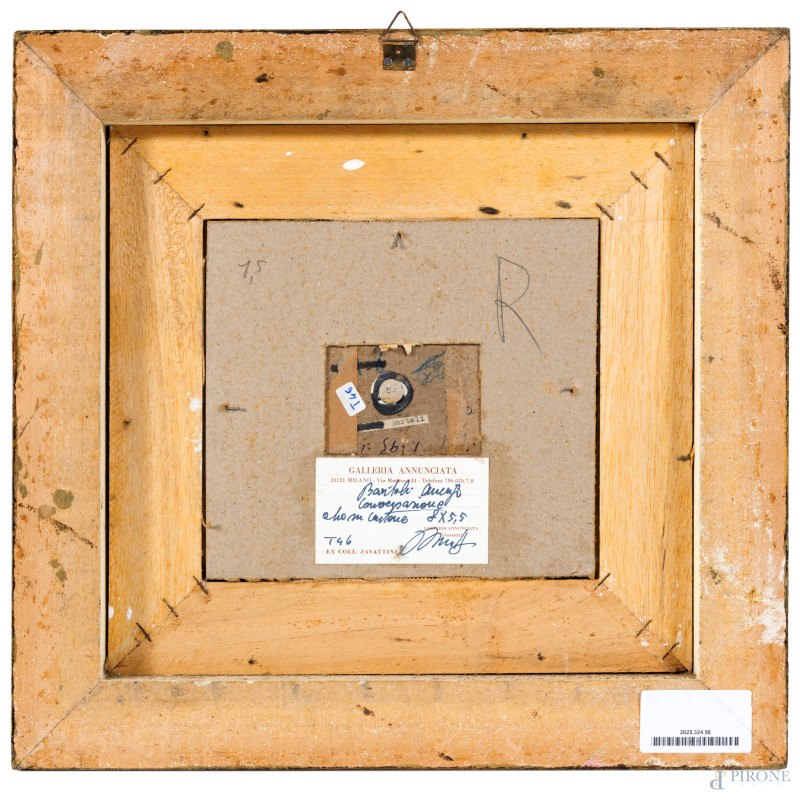 Amerigo Bartoli (1890-1971), Conversazione, olio su cartone, cm 5,5x8, firmato in alto a destra, entro cornice