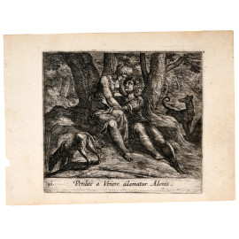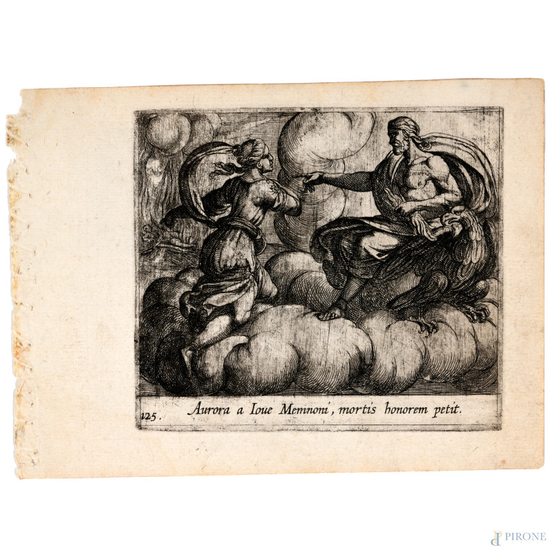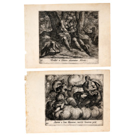 Antonio Tempesta, (1555 – 1630) Lotto di due acqueforti dalla serie "Le Metamorfosi" di Ovidio, foglio cm 13x17, (segni di usura ai margini)