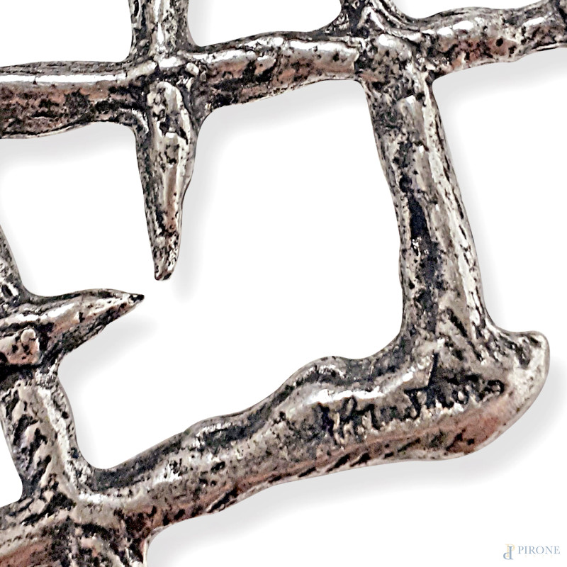 Arnaldo Pomodoro (1926-2025), Rilievo astratto, “pendant” in metallo argentato, cm 6,5x5, firmato