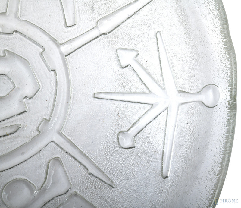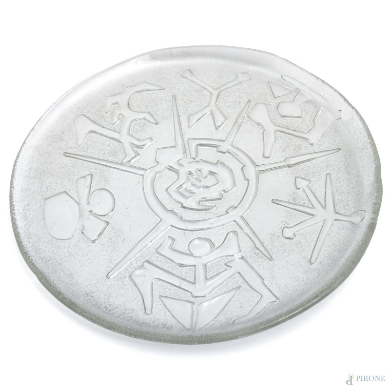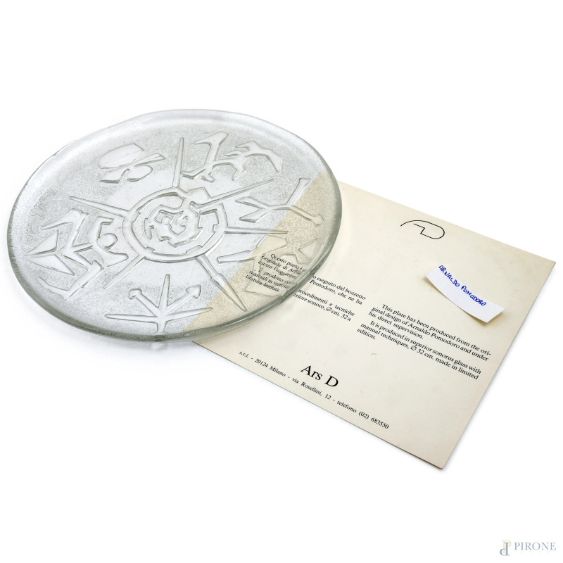 Arnaldo Pomodoro, Piatto in vetro "Sonoro", diametro cm 32, entro scatola originale