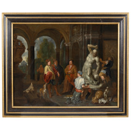 Attribuito a Balthasaar van den Bossche (1681-1715), Interno dell'atelier dello scultore Gabriel Grupello, olio su tela, cm 67x85, entro cornice