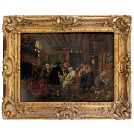 Attribuito a Jan Josef Horemans il Vecchio (1682-1759), Scena di interno, olio su tela, cm 62x82,5, entro cornice