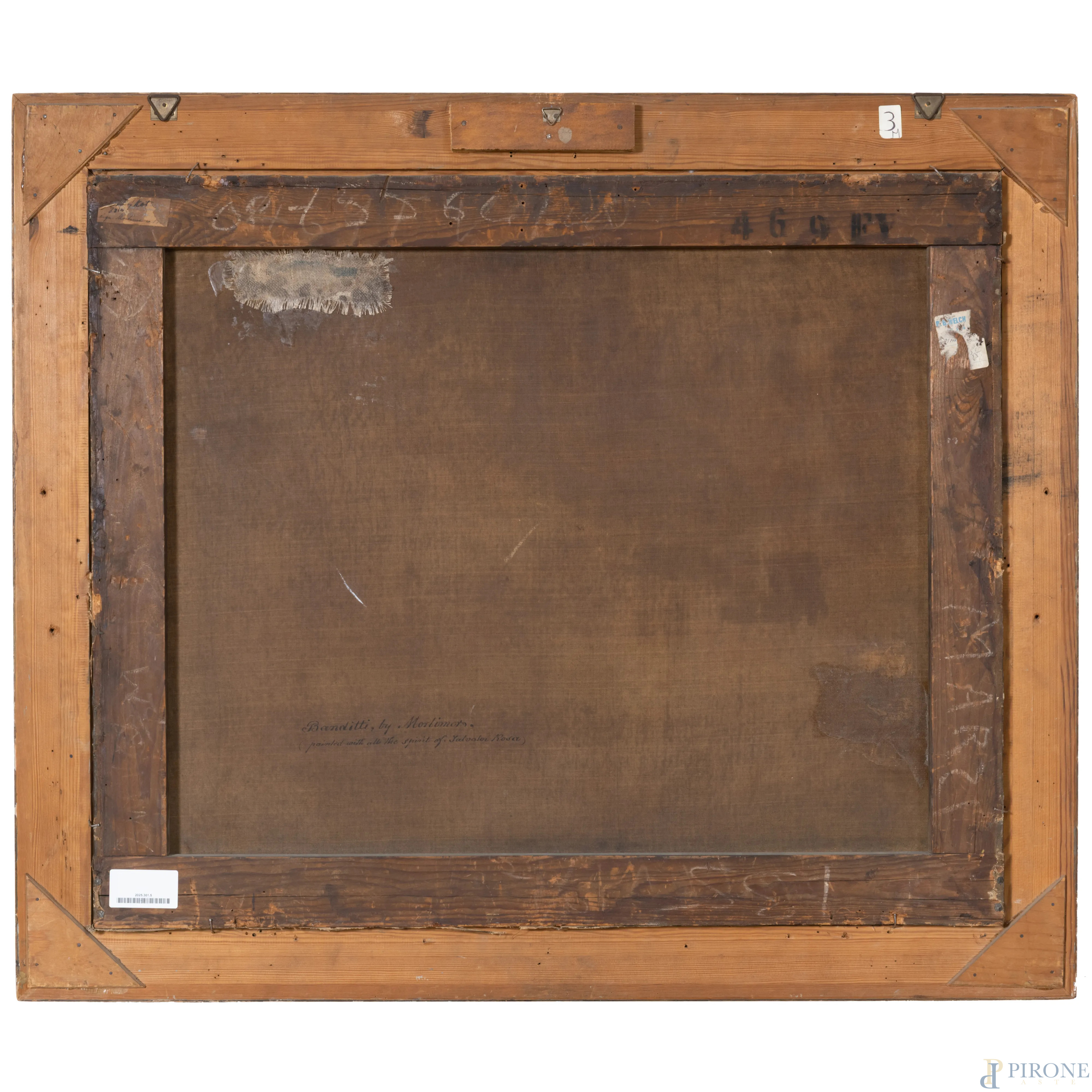 Attribuito a John H. Mortimer (1740-1779), Banditi, olio su tela, cm 53x76,5, entro cornice, (lieve craquelure e piccolo sollevamento di colore nell'area superiore destra della composizione)