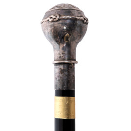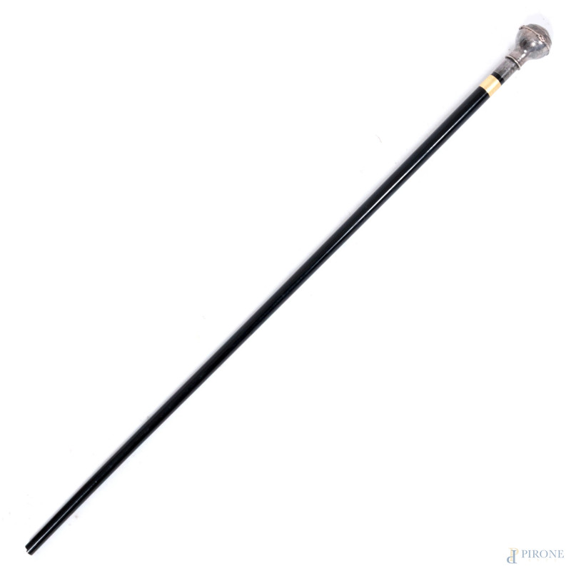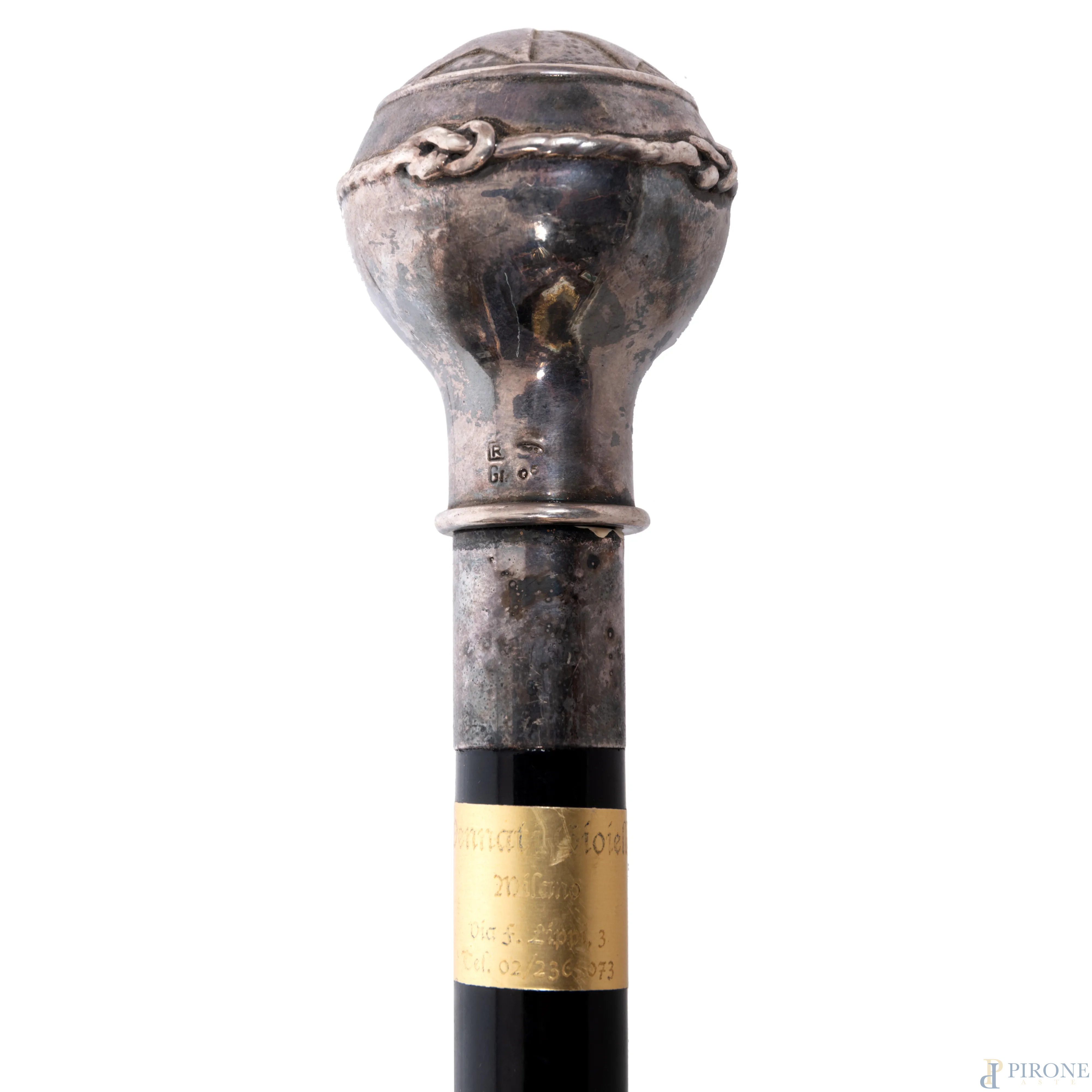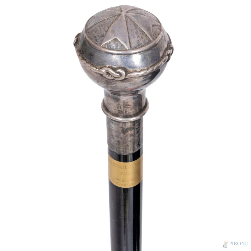 Bastone da passeggio con presa a foggia di croce di malta a rilievo in argento 925/000, cm 90, (segni di usura)