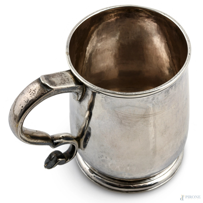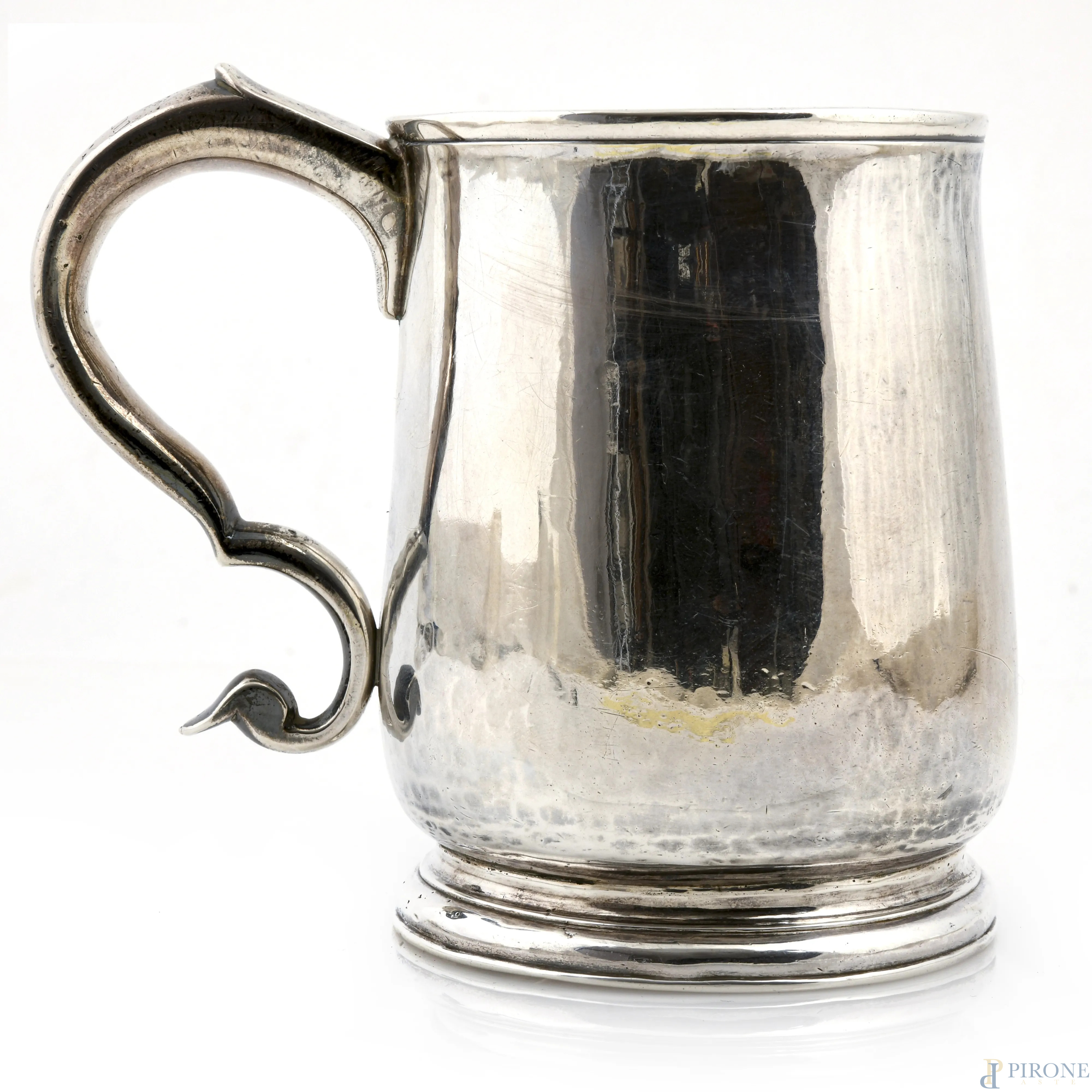 Boccale in argento inglese, altezza cm 11, peso gr 250
