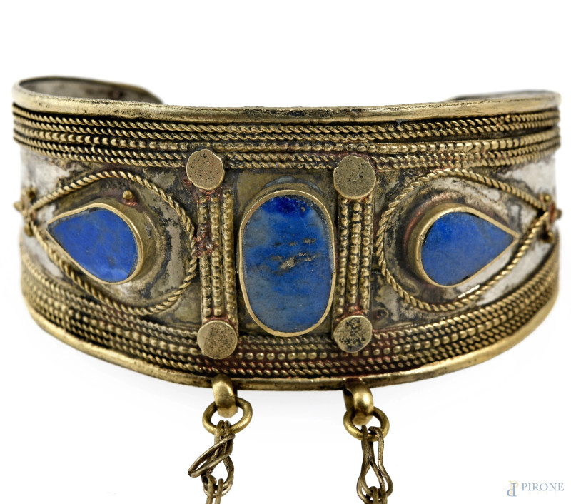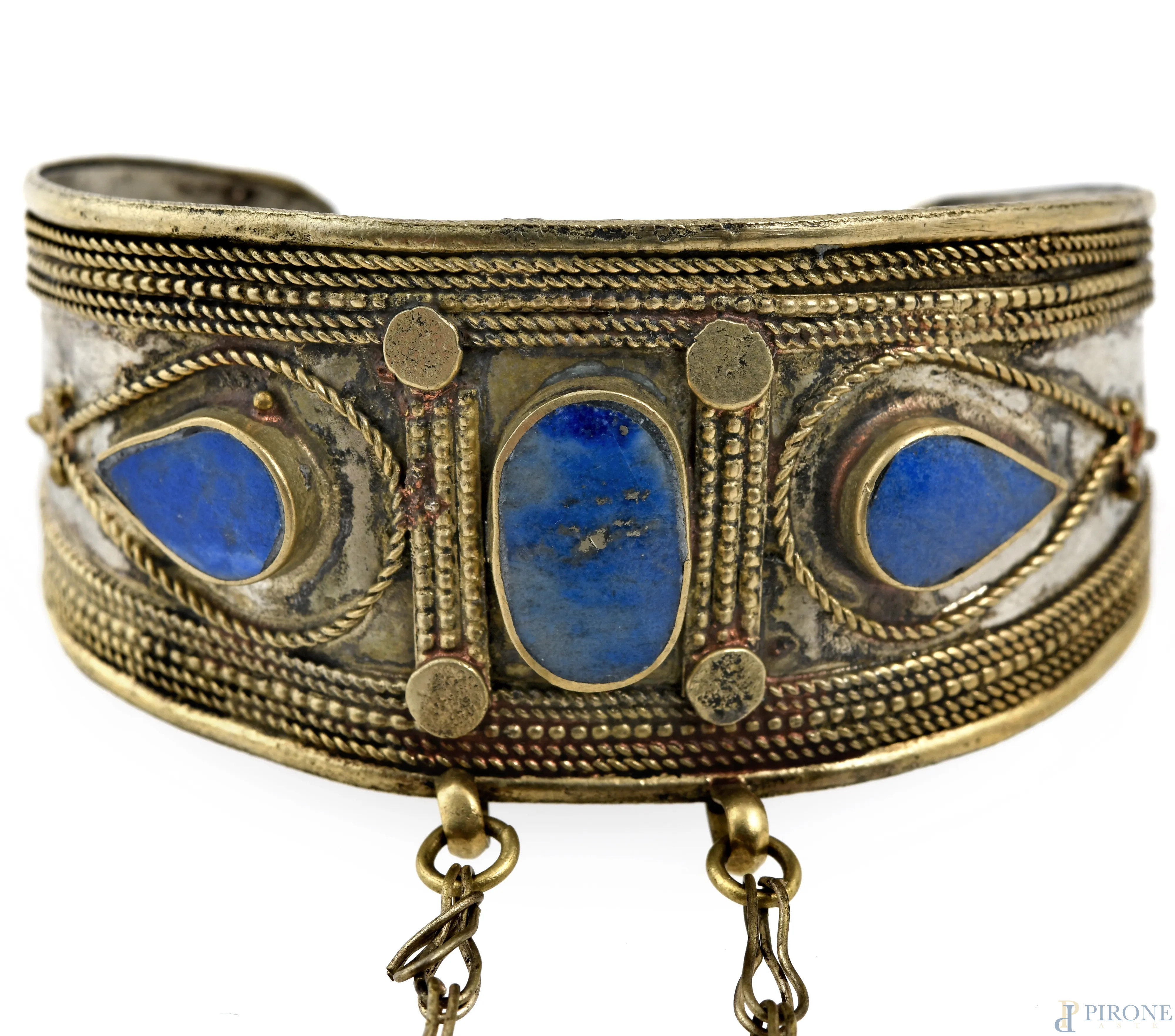Bracciale mediorientale in metallo e pietre dure, XX secolo, diametro cm 6,5, (difetti)