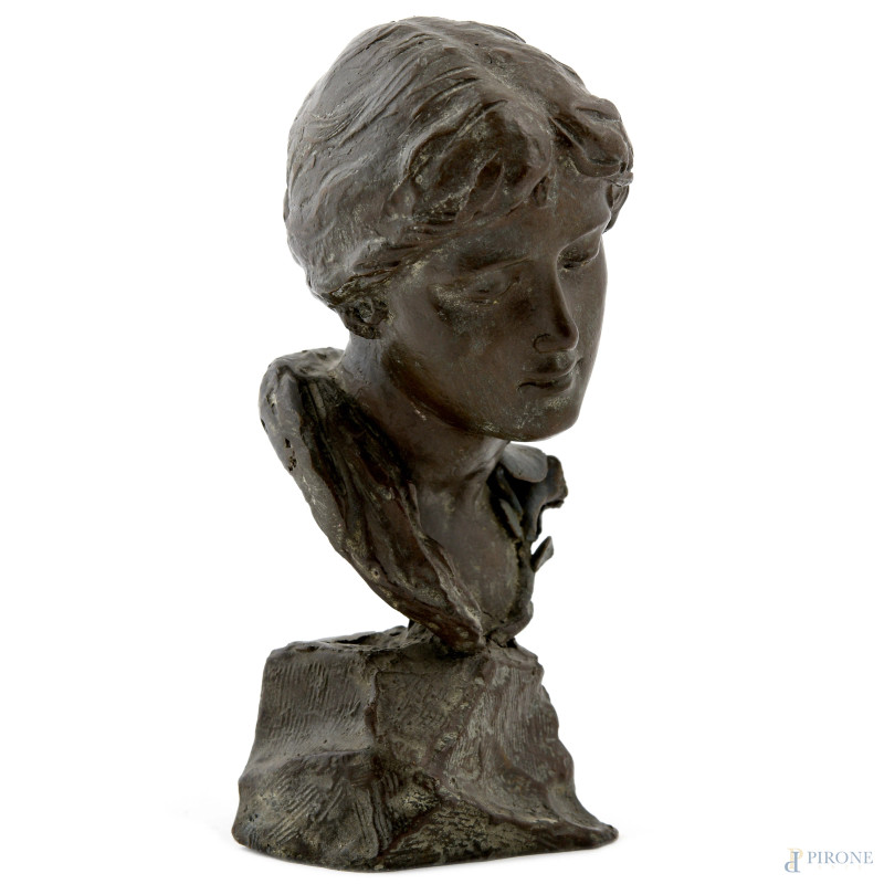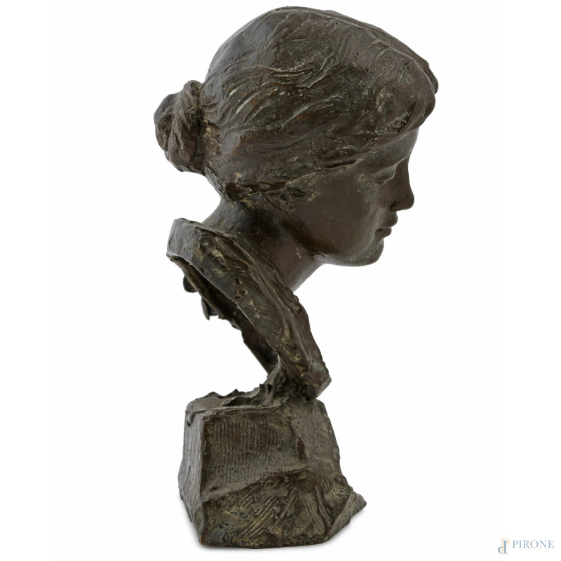 Busto di donna, XX secolo, scultura in bronzo, altezza cm 15