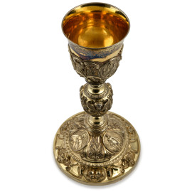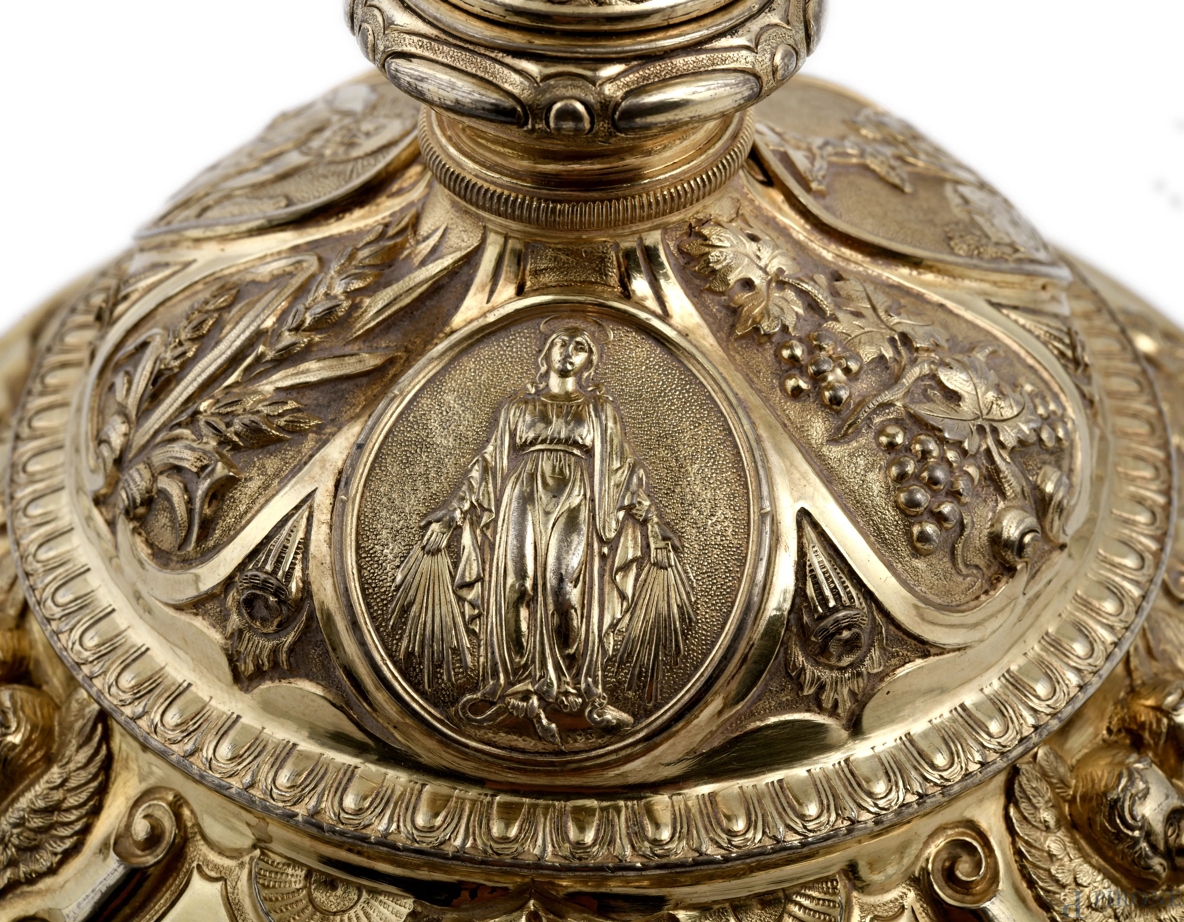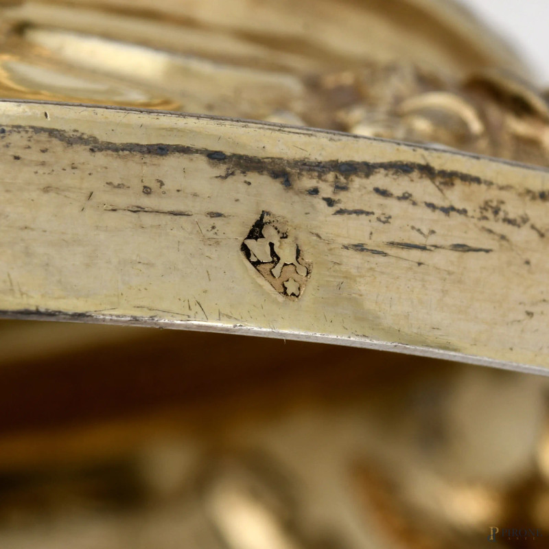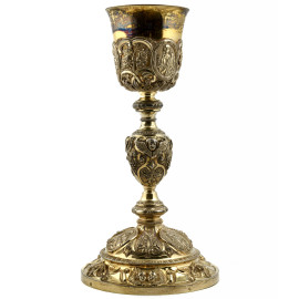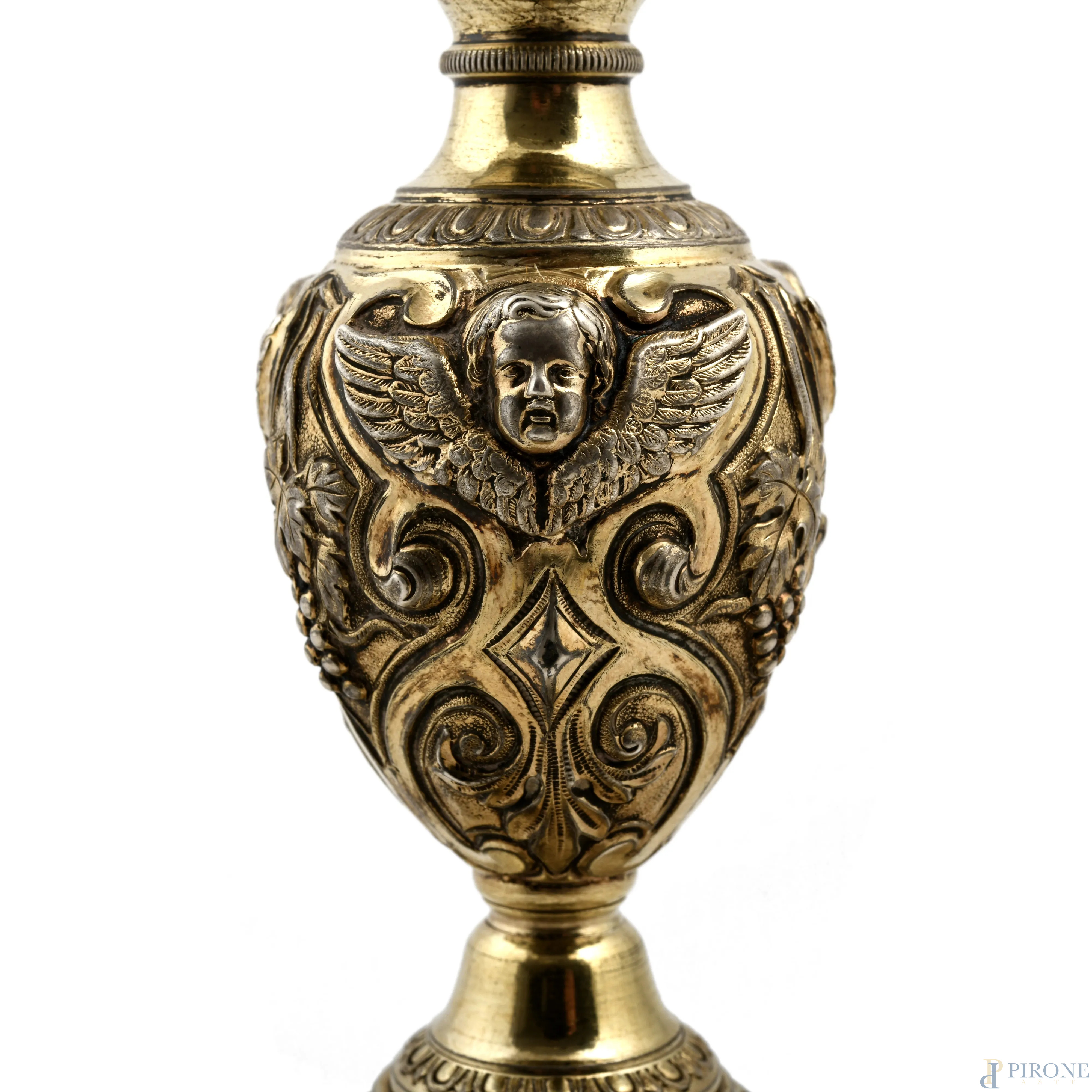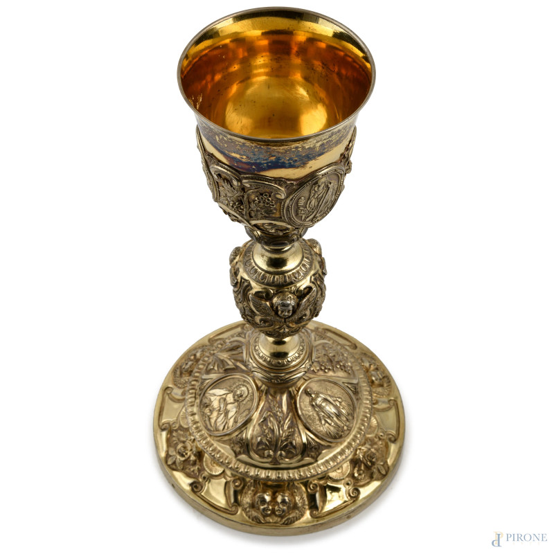 Calice in argento e argento vermeil finemente cesellato, XX secolo, altezza cm 27, peso lordo gr 430, (segni di usura)