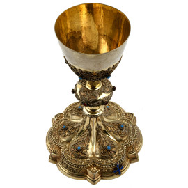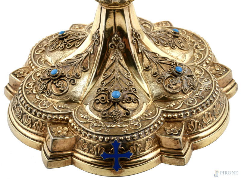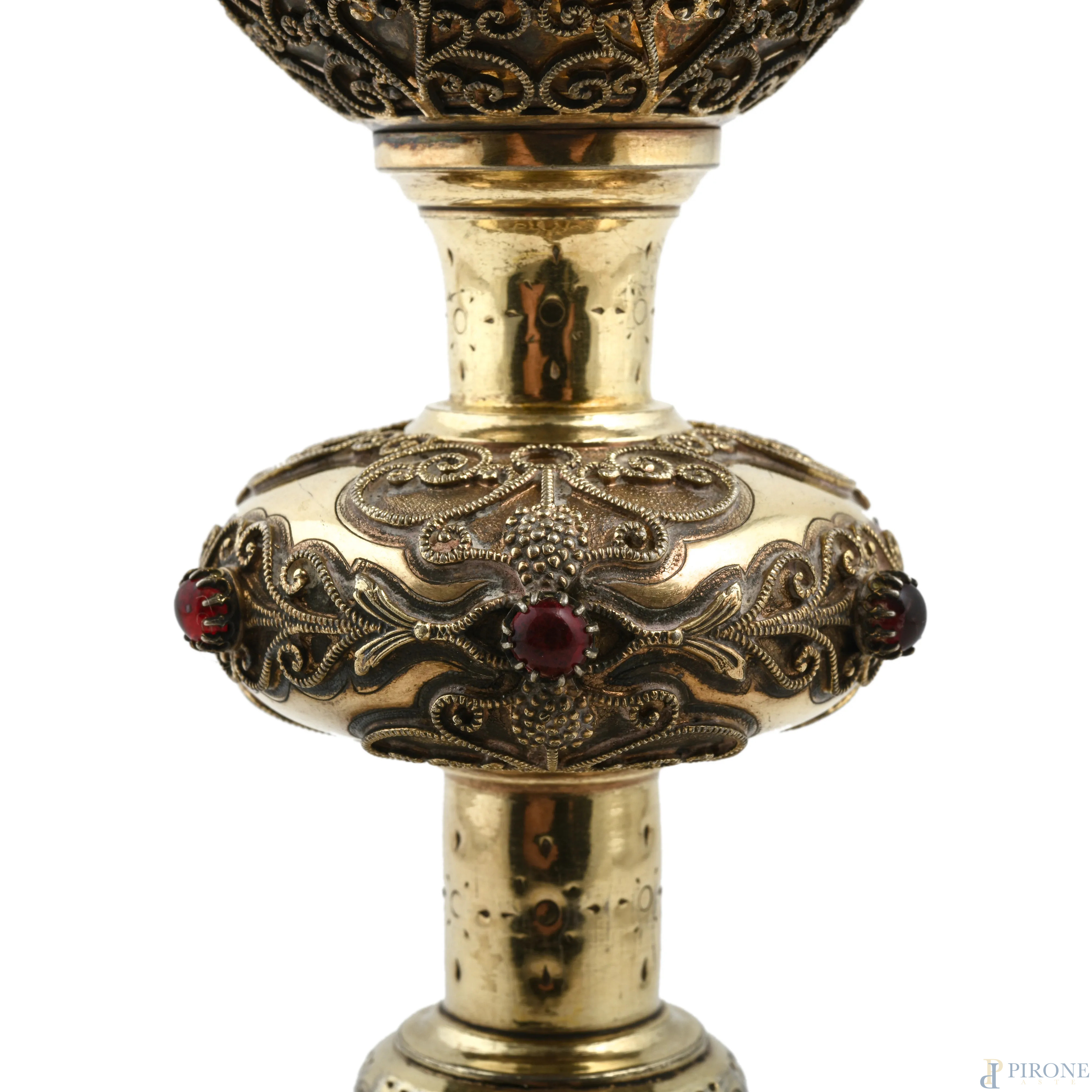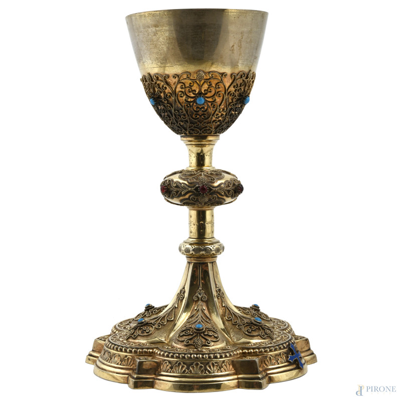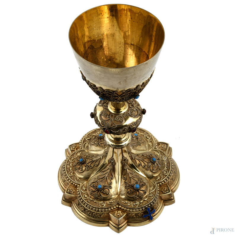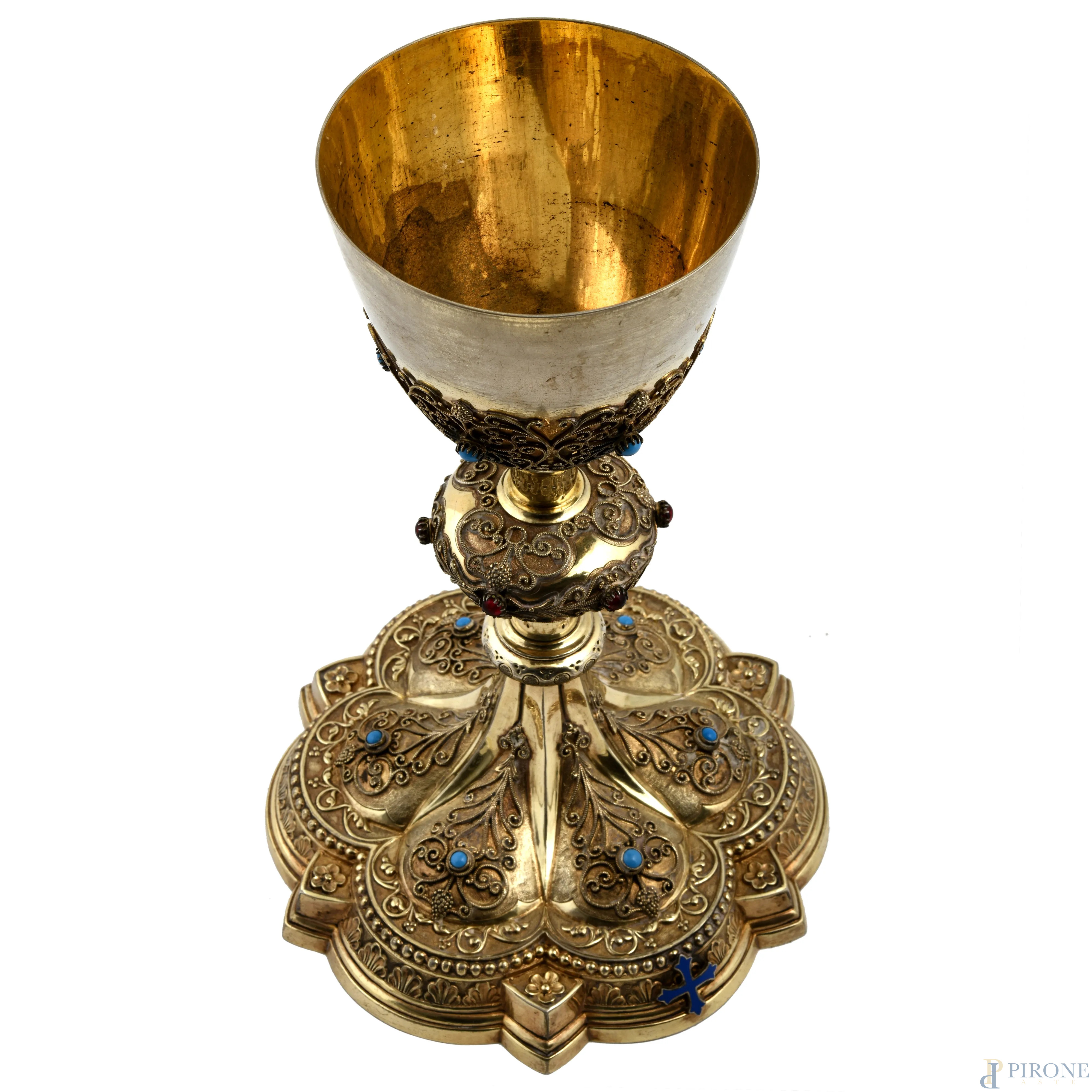 Calice in argento e pietre dure,altezza cm 24, peso lordo gr 430, (segni di usura)