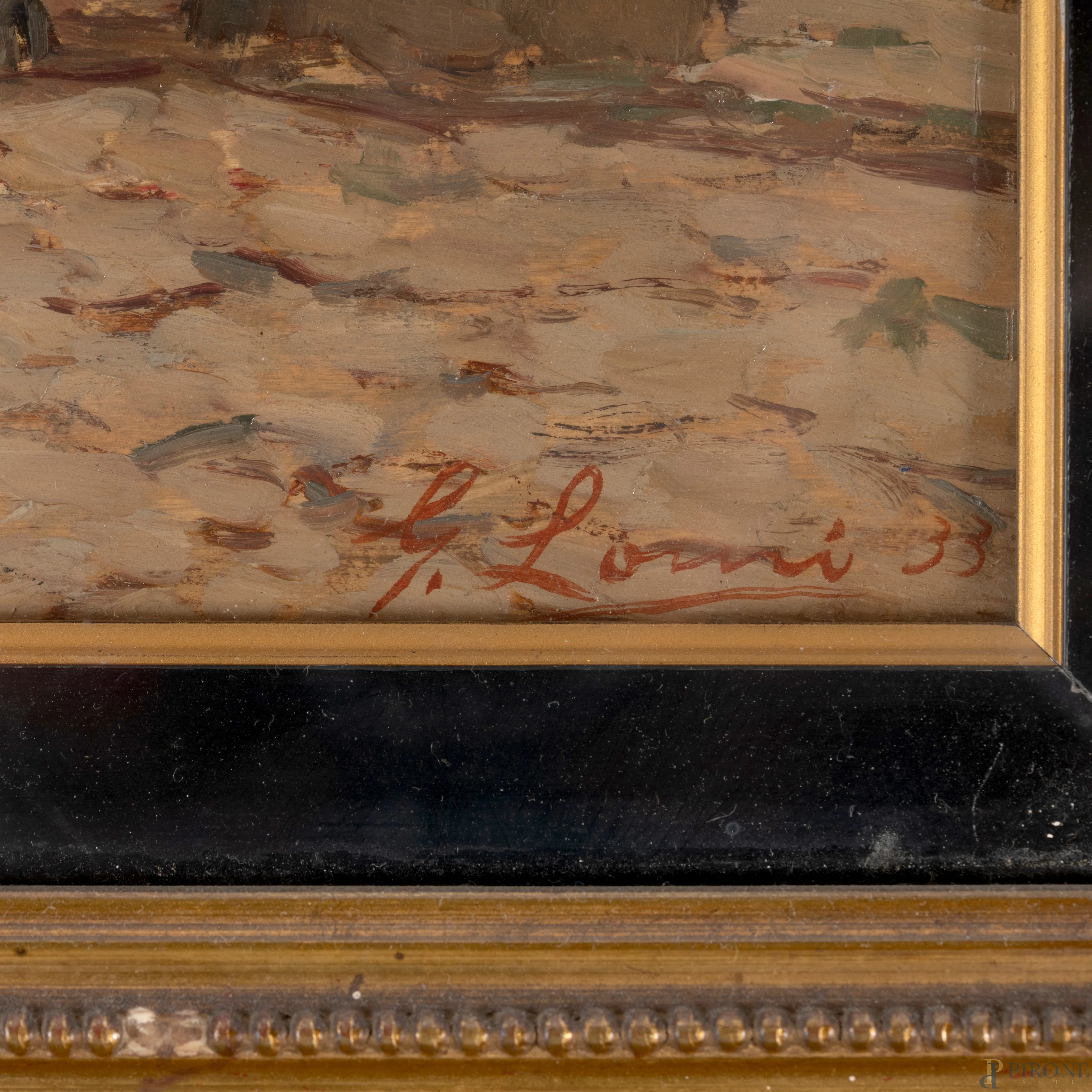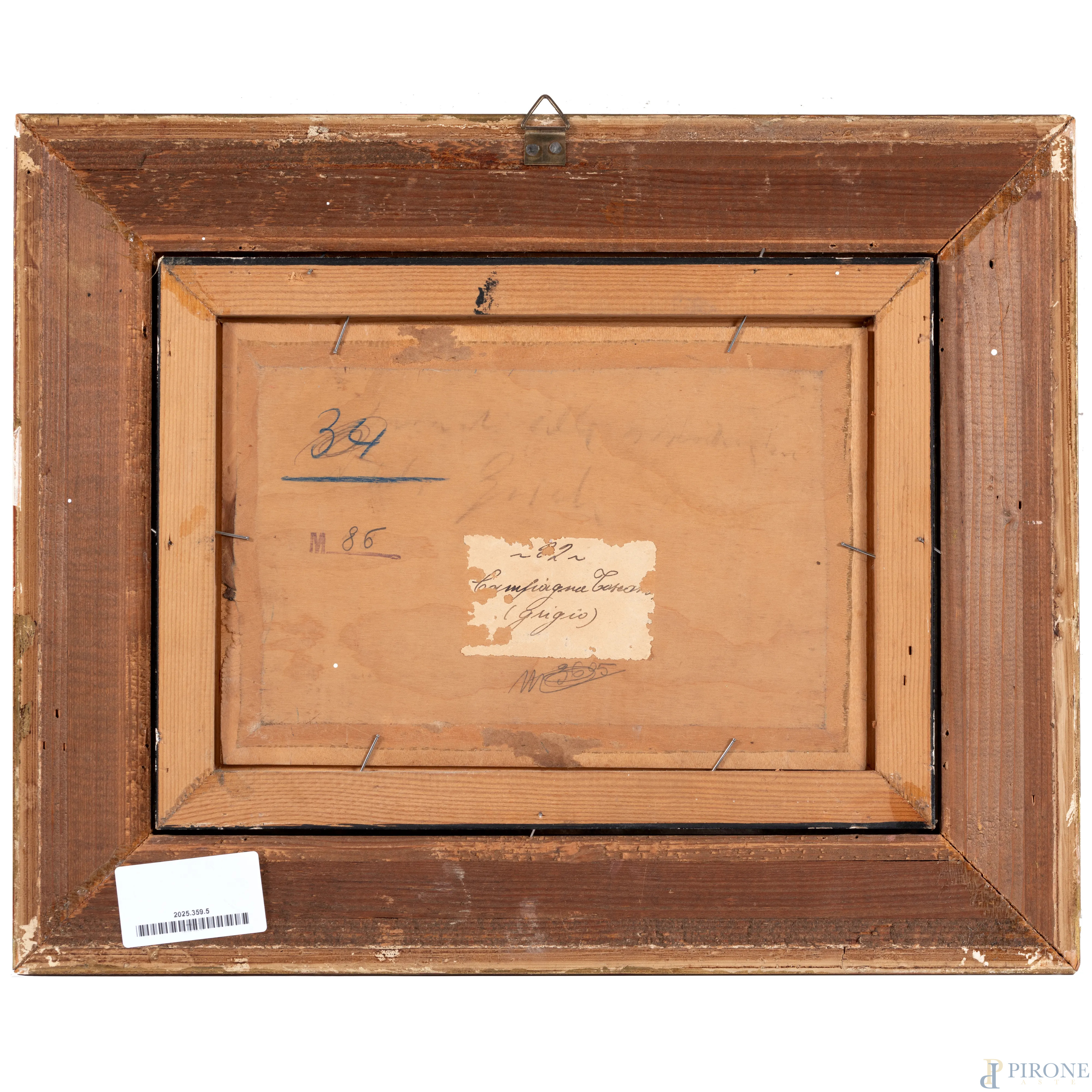 Campagna toscana, olio su compensato, cm 18x26, firmato e datato "33" in basso a destra, entro cornice