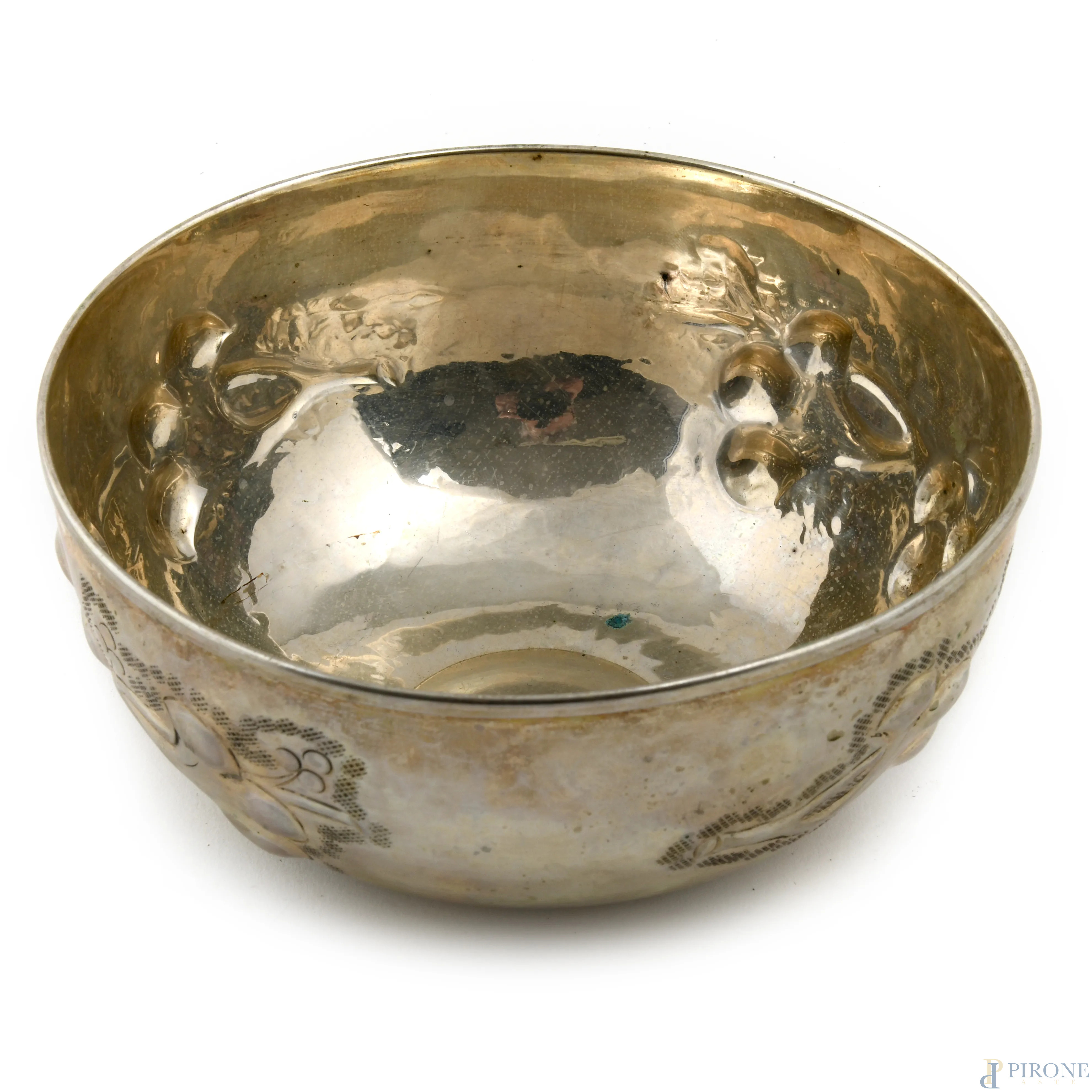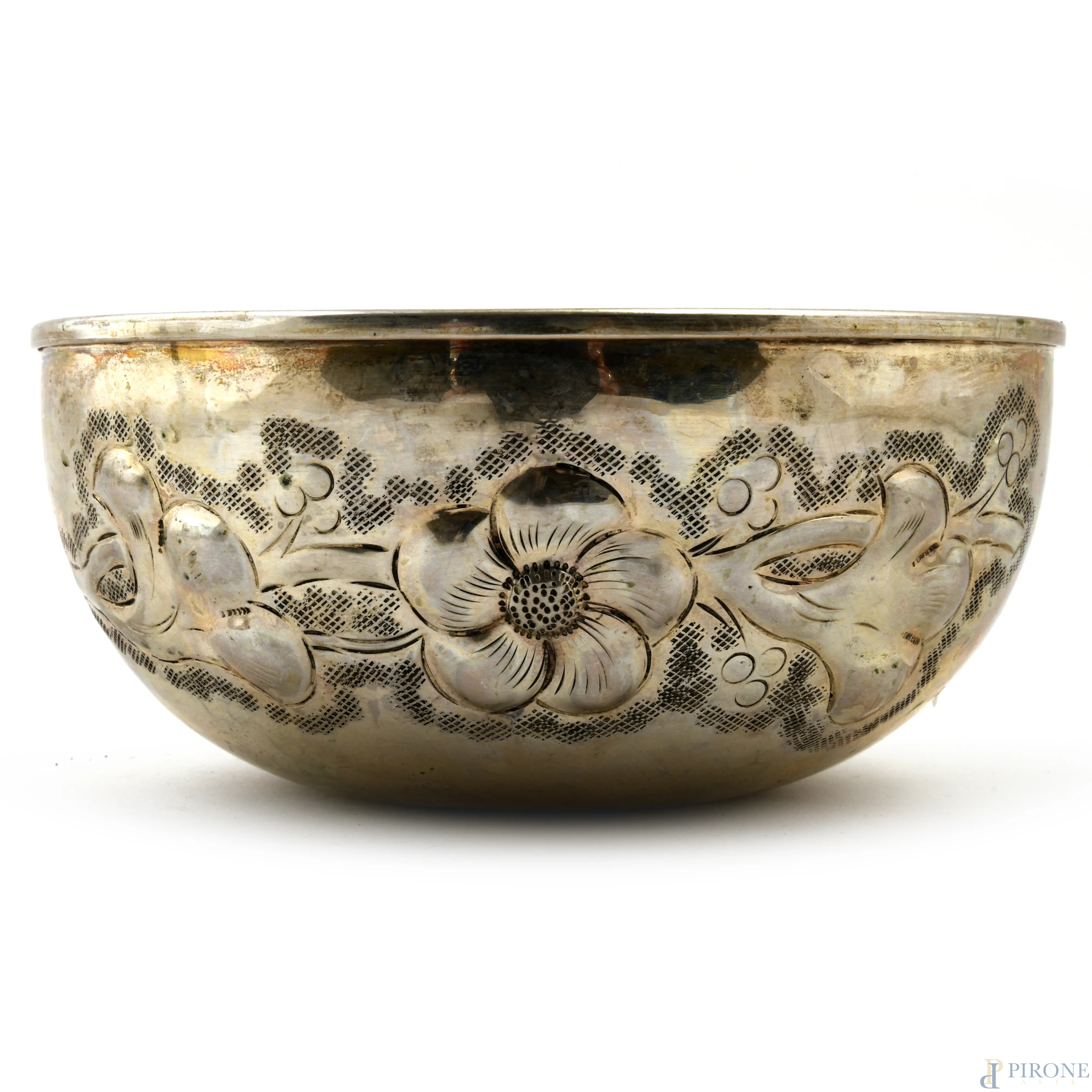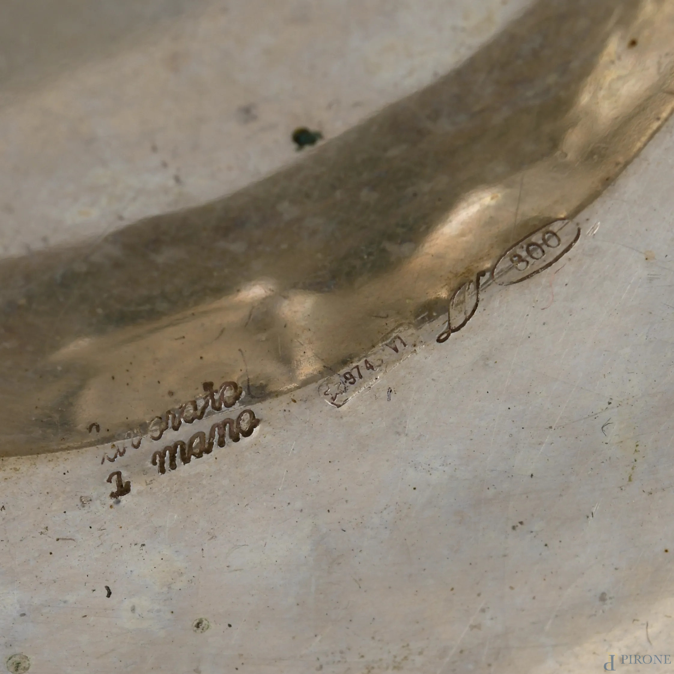 Centrino in argento 800/000 con decori a sbalzo a motivi floreali, cm 7x15, peso gr 180