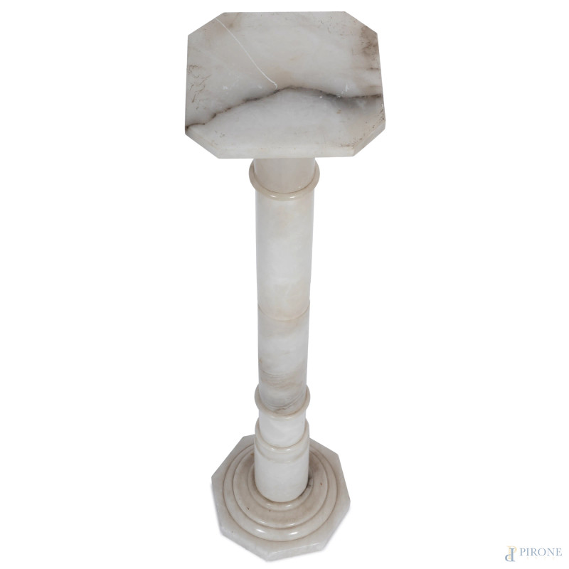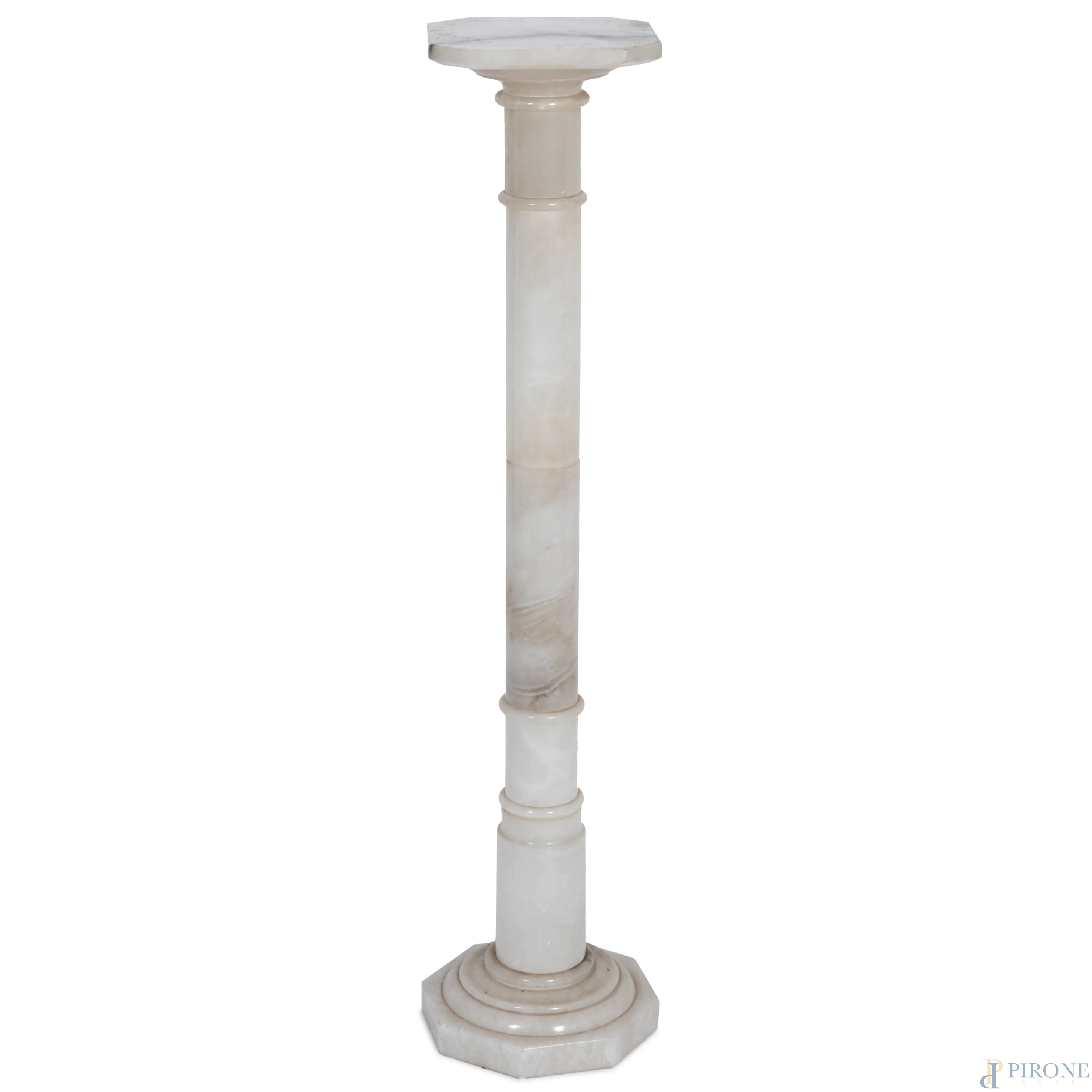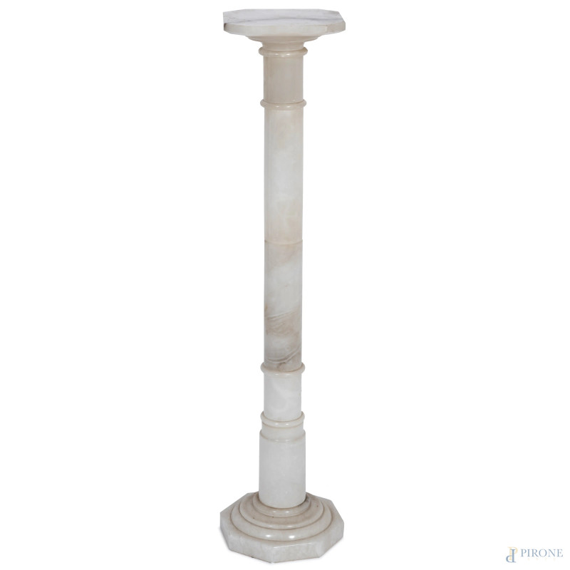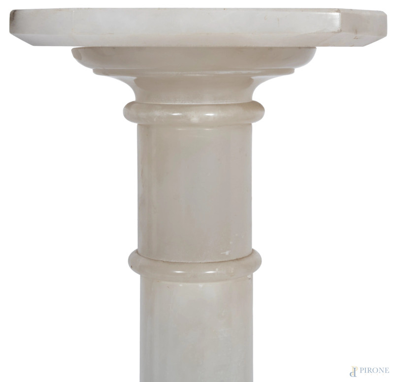 Colonnina in alabastro a fusto liscio, XX secolo, altezza cm 98,5, (segni di usura, graffi e lievi scalfiture)
