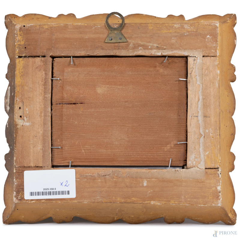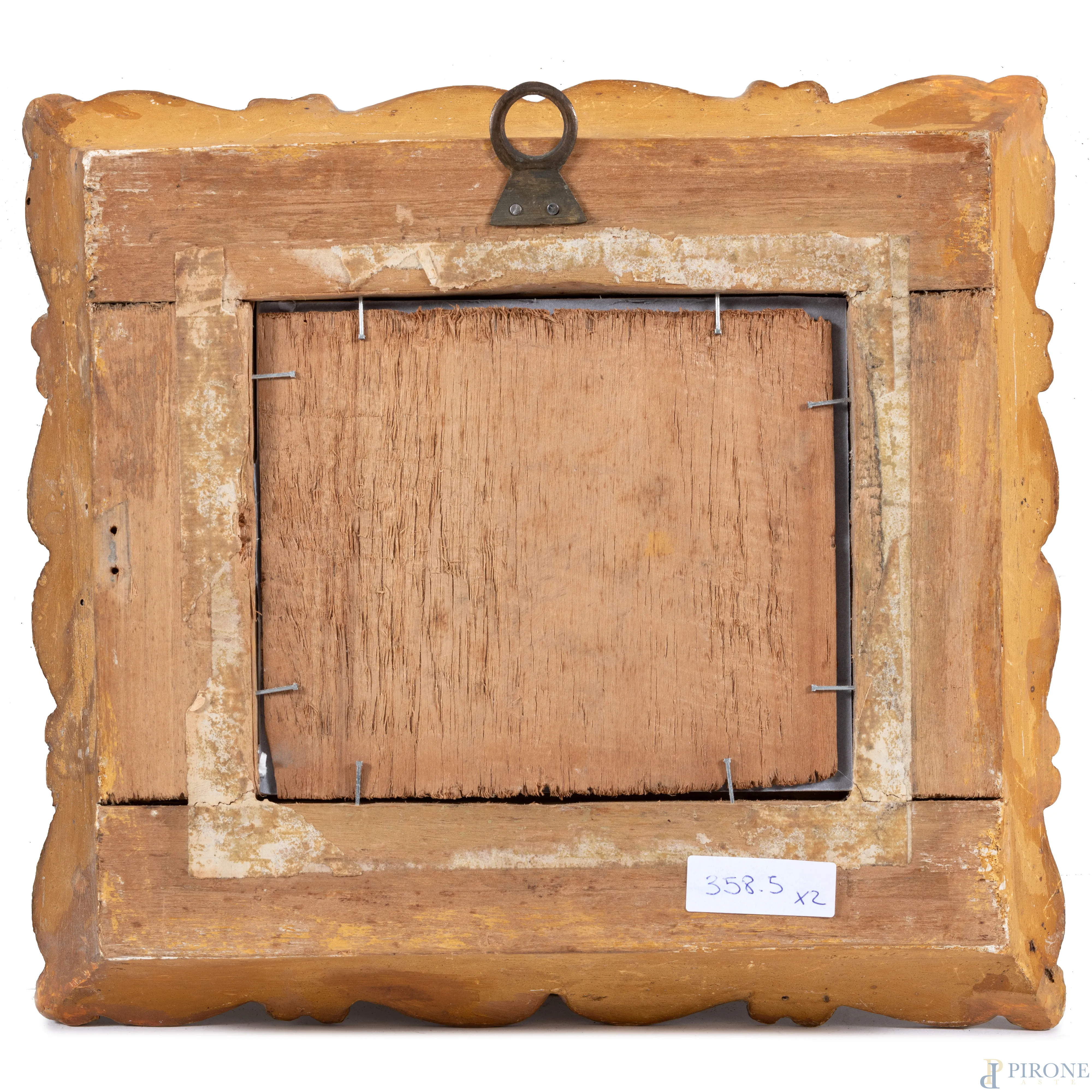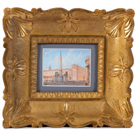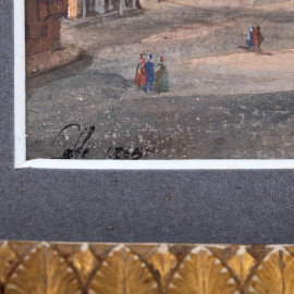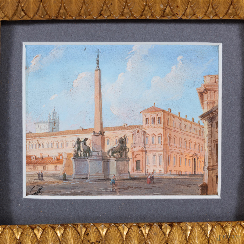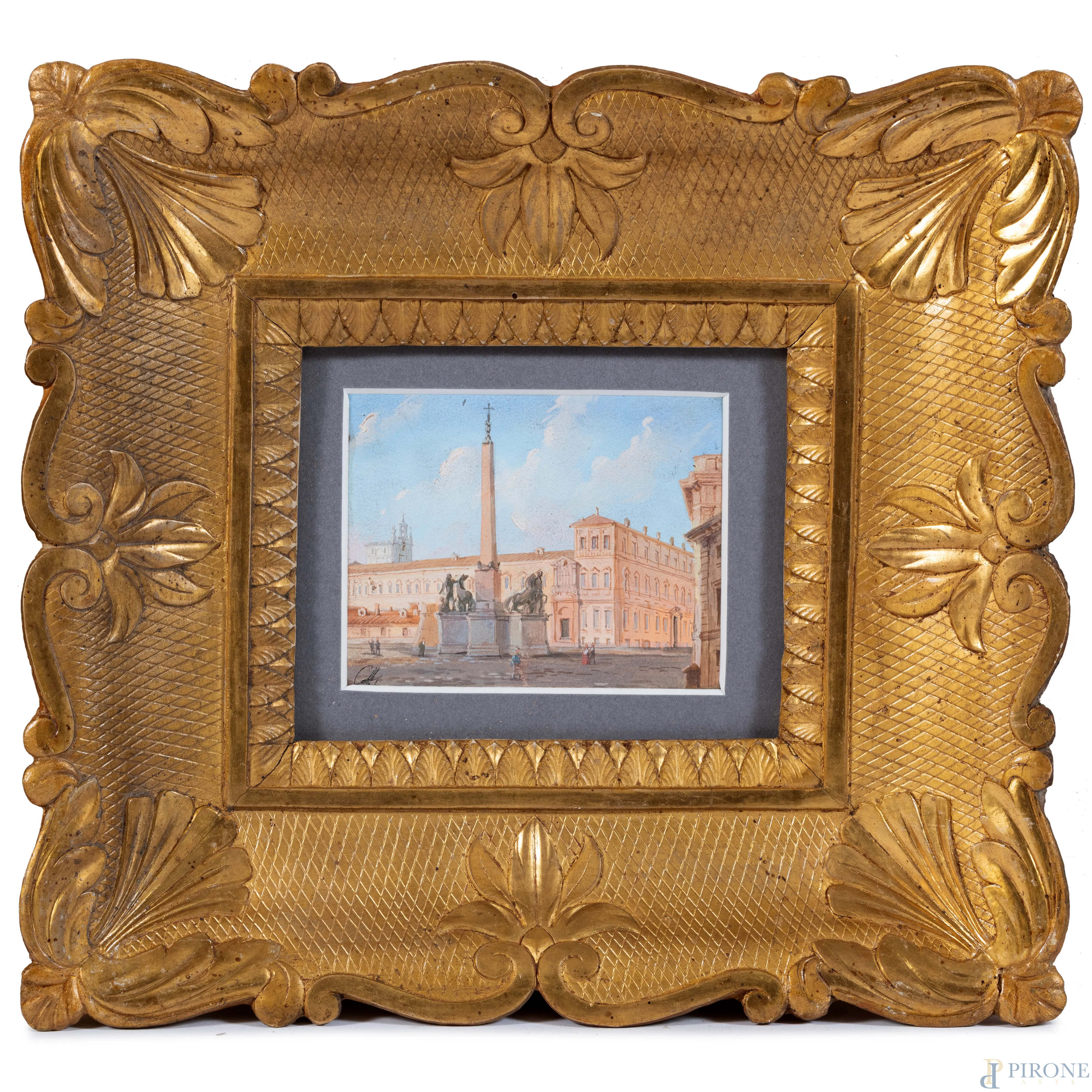 Coppia di vedute di Roma, tecnica mista su carta, cm 8x10, firmati in basso, entro cornice, (cadute di colore, tracce di umidità, segni di usura)