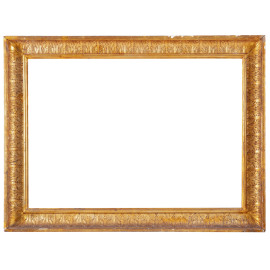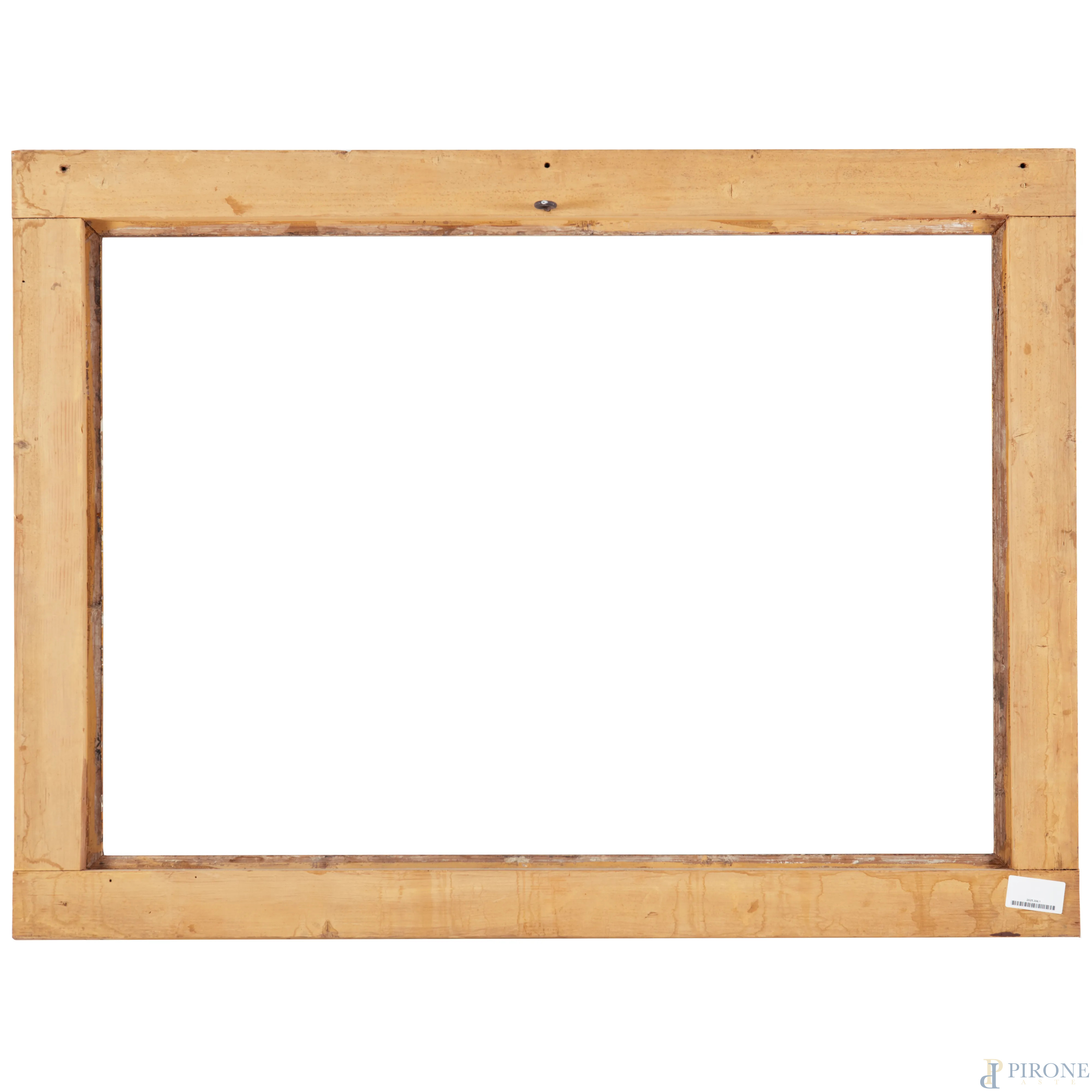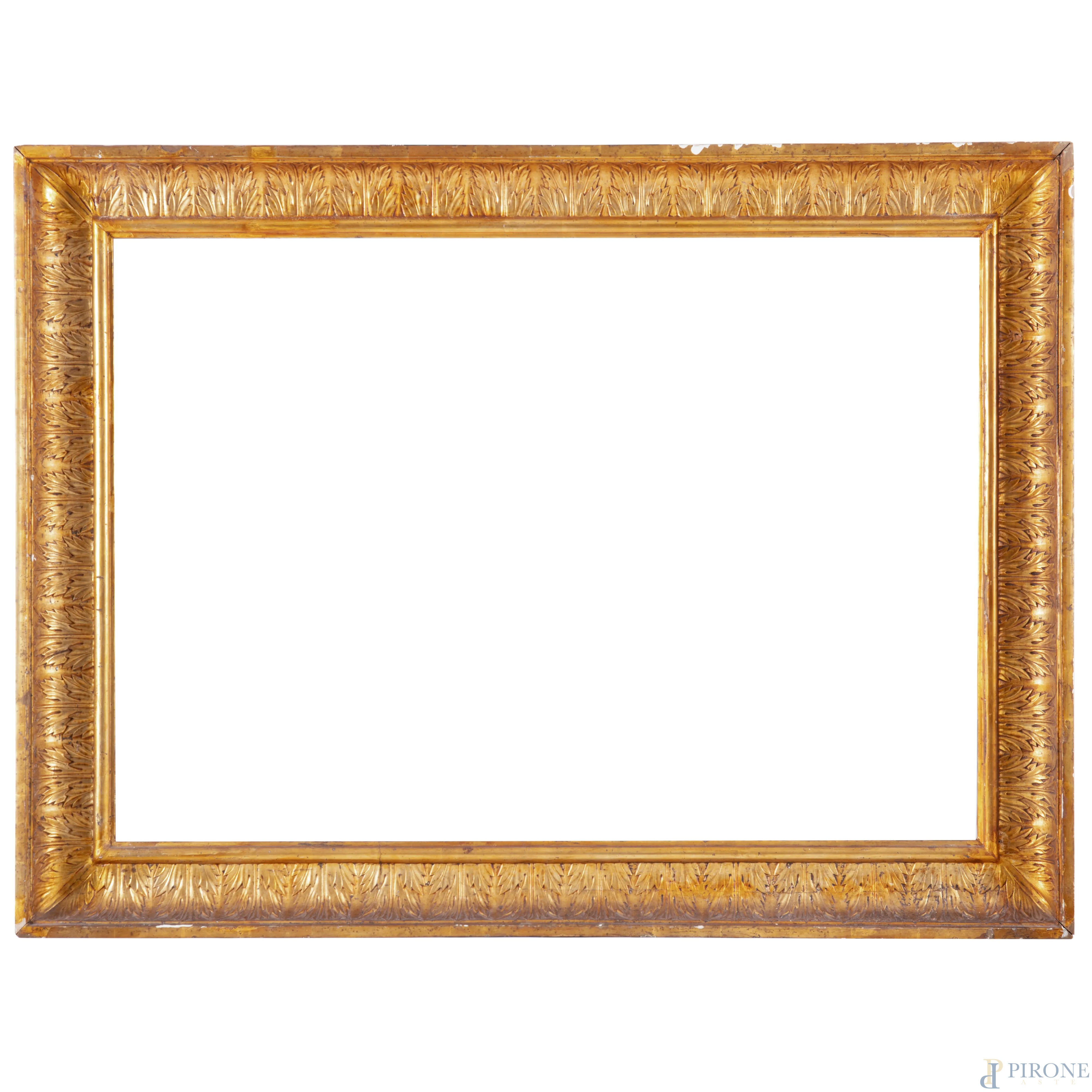Cornice impero in legno intagliato e dorato, ingombro cm 80x107 luce cm 63x90, (segni di usura, graffi, scalfiture,cadute della doratura)