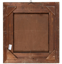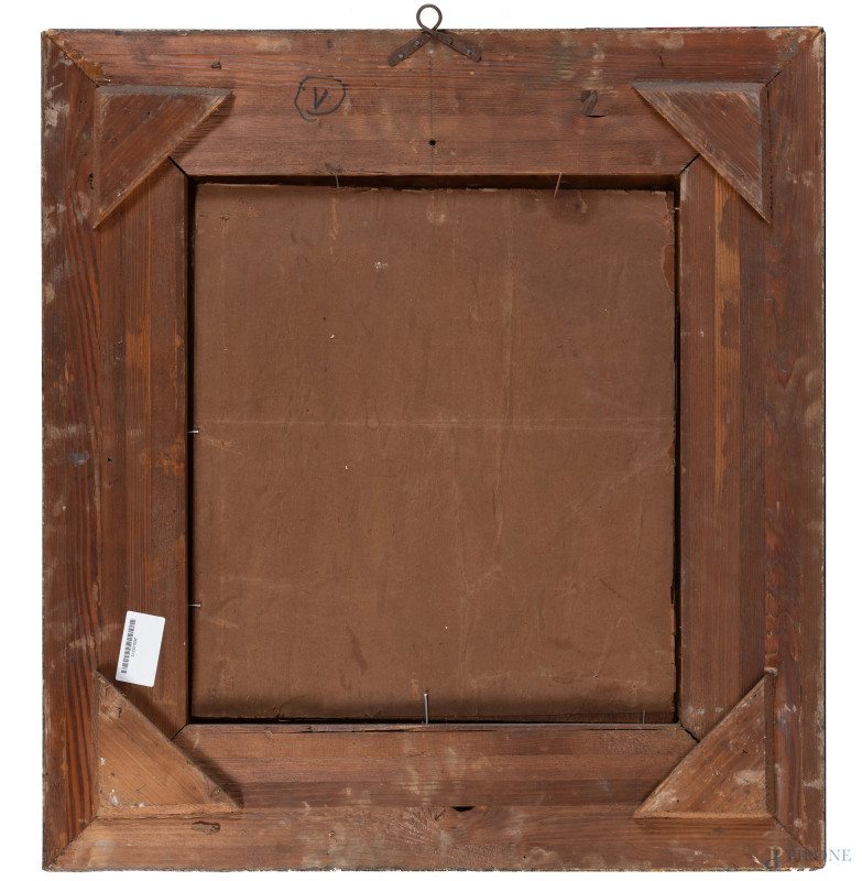 Emilio Rubei (1869-1935), Ritratto di uomo con cappello rosso, olio su carta applicato su tavola, cm 44,5x39, firmato in basso a destra, entro cornice