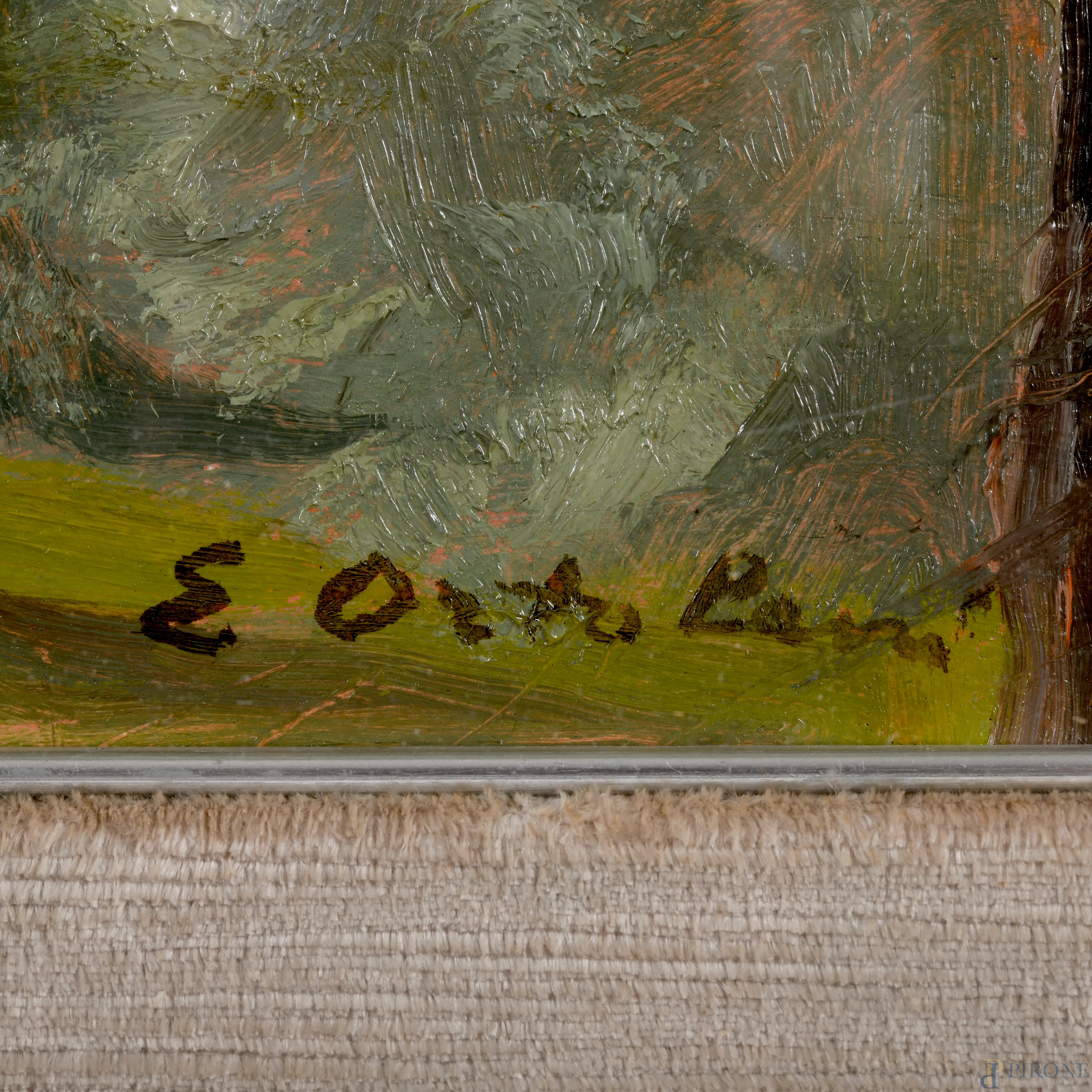 Enrico Ortolani ( 1883 – 1972), Soratte, olio su compensato, cm 50x60, firmato in basso, entro cornice