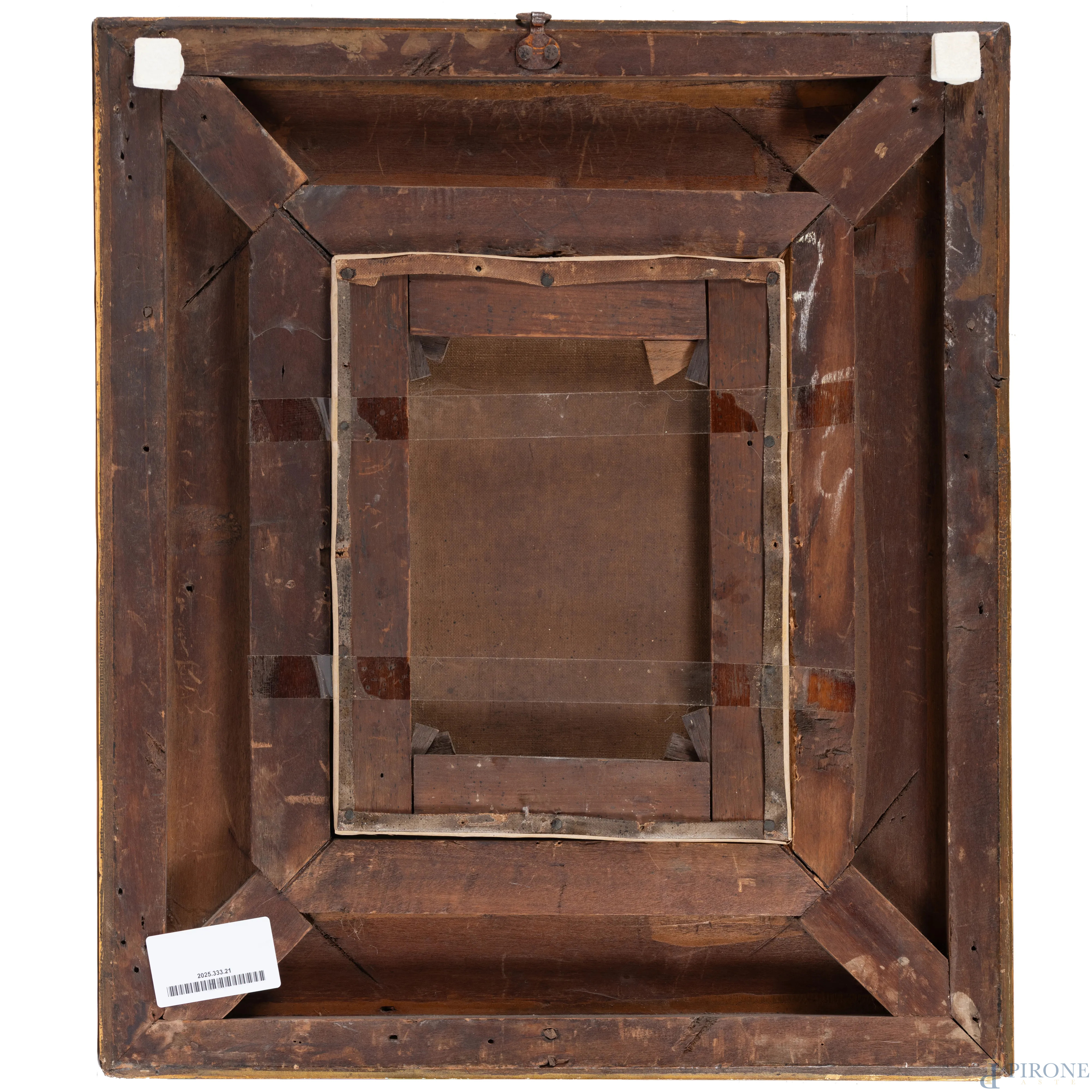Figura maschile con asino, XIX secolo, olio su tela, cm 25,5x20,5, entro cornice, (craquelure e lievi segni di piegature)