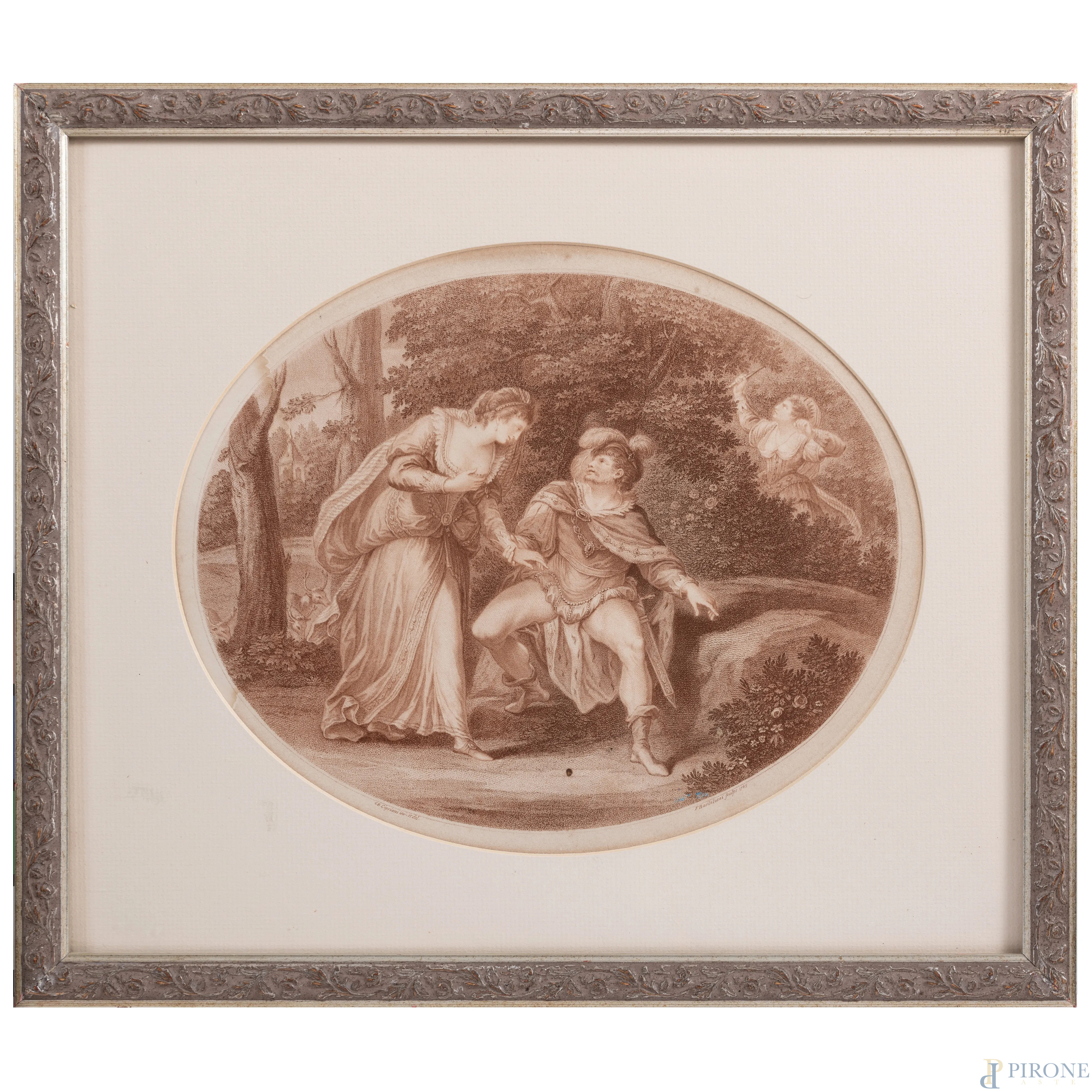 Francesco Bartolozzi,(1728 - 1815), Acquaforte da G.B. Cipriani, bulino e maniera punteggiata a color seppia, cm 39,5x46 compreso passepartout, entro cornice, (lievi segni di usura e tracce di umidità)