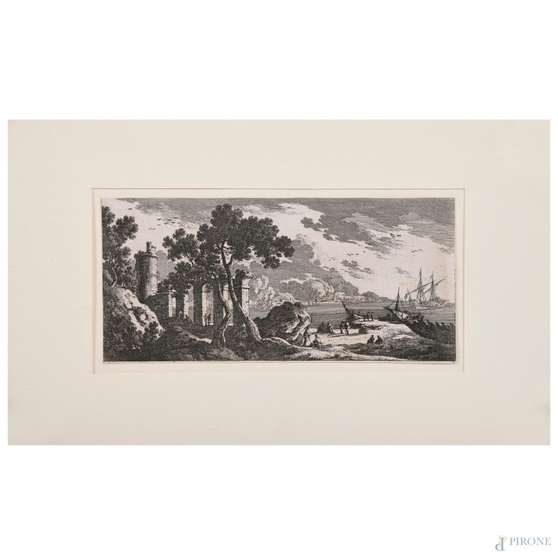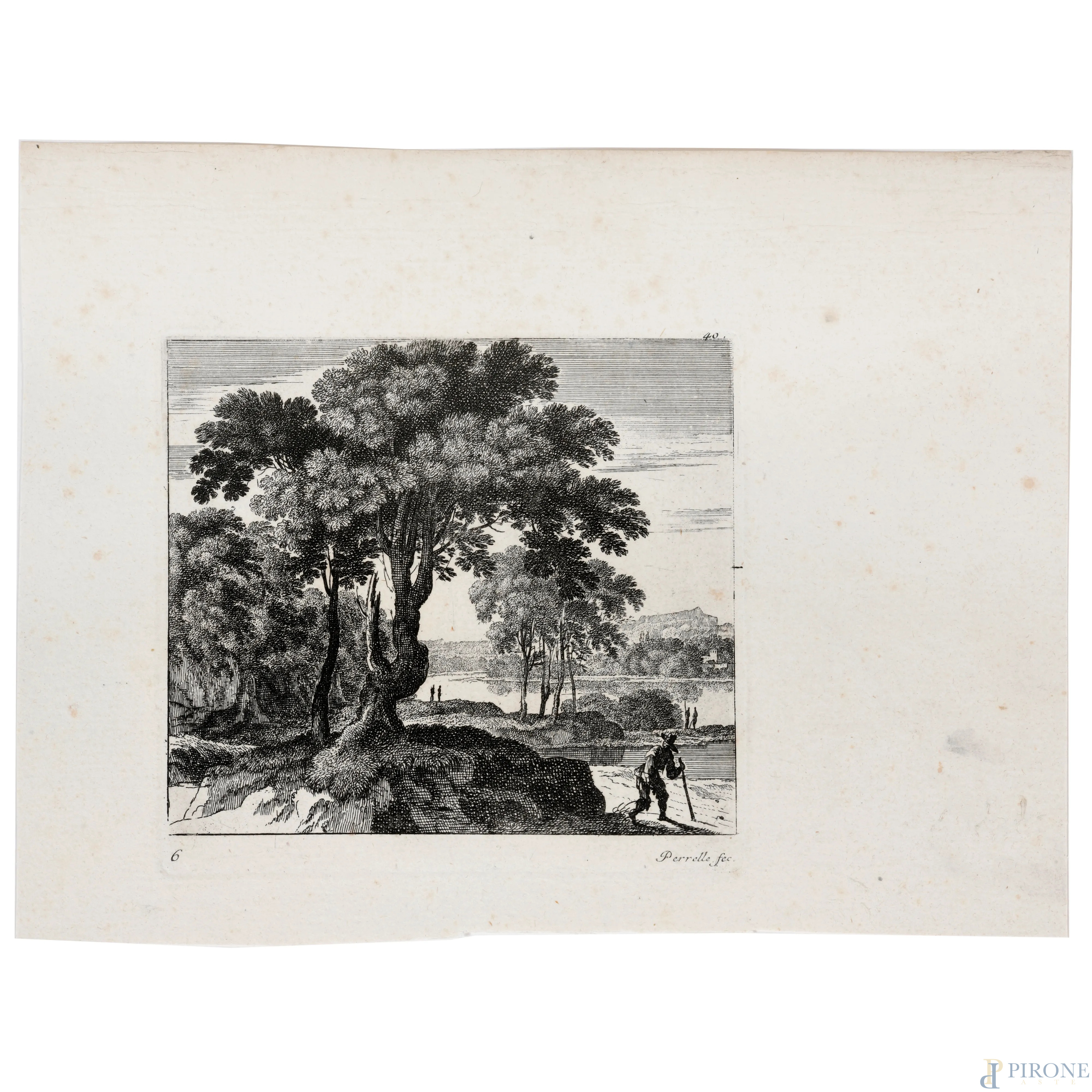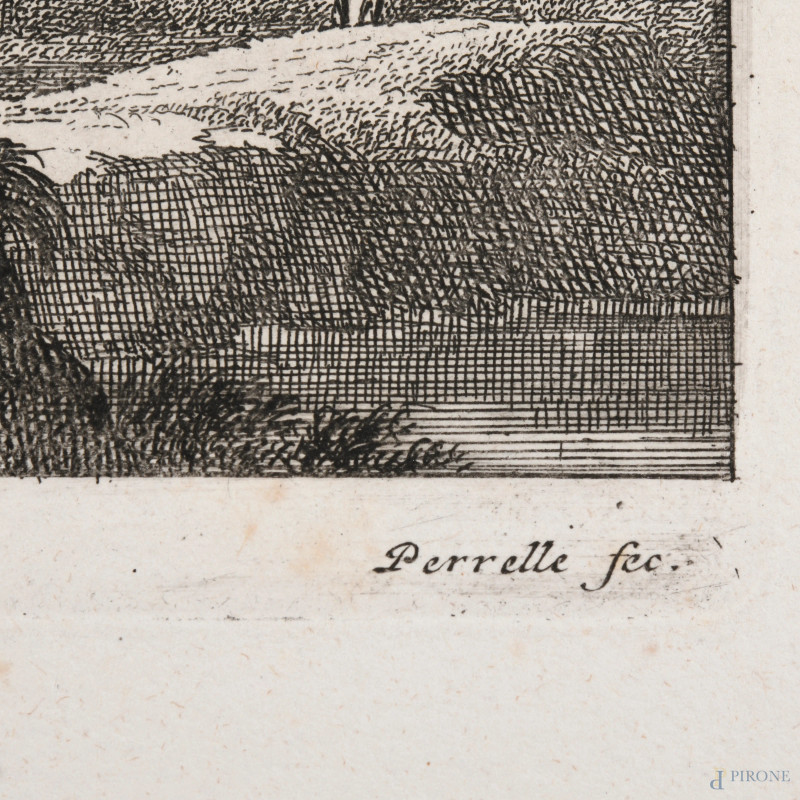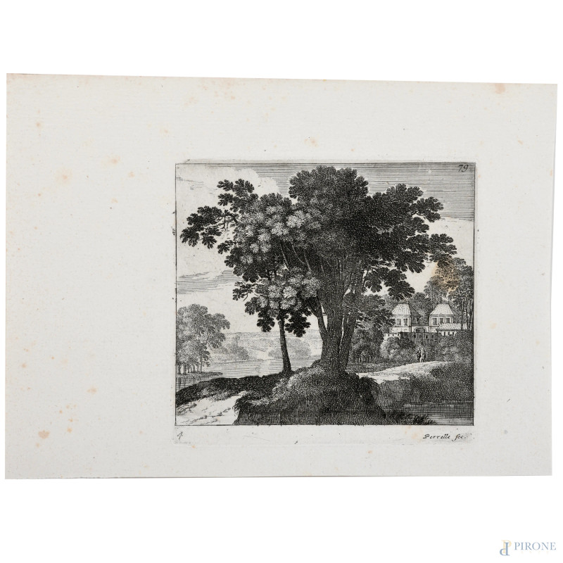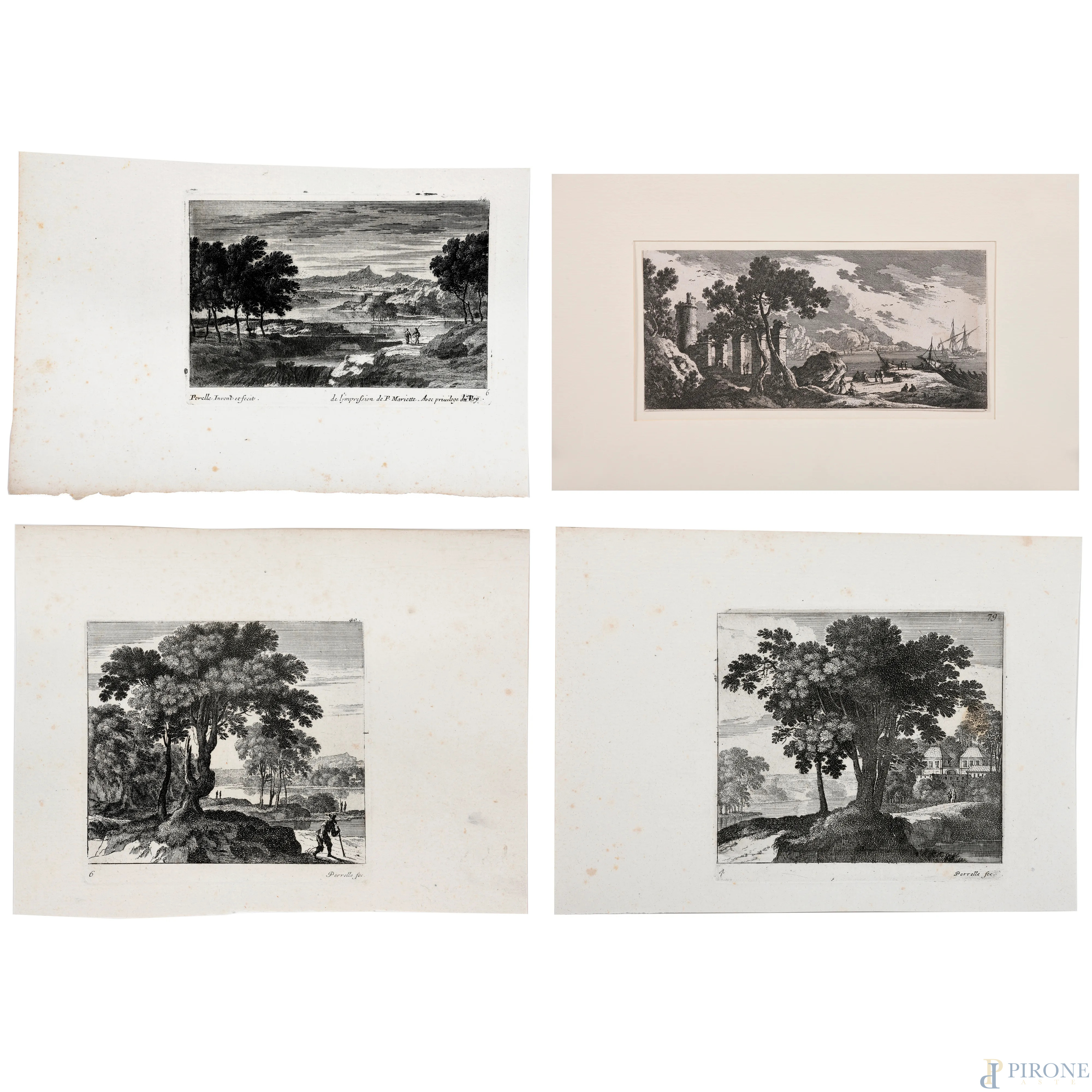 Gabriel Perelle, (1604 – 1677) Lotto di quattro acqueforti dalla serie "I paesaggi", misure massime foglio cm 16,5x24, (segni di usura, tracce di umidità, foxing)
